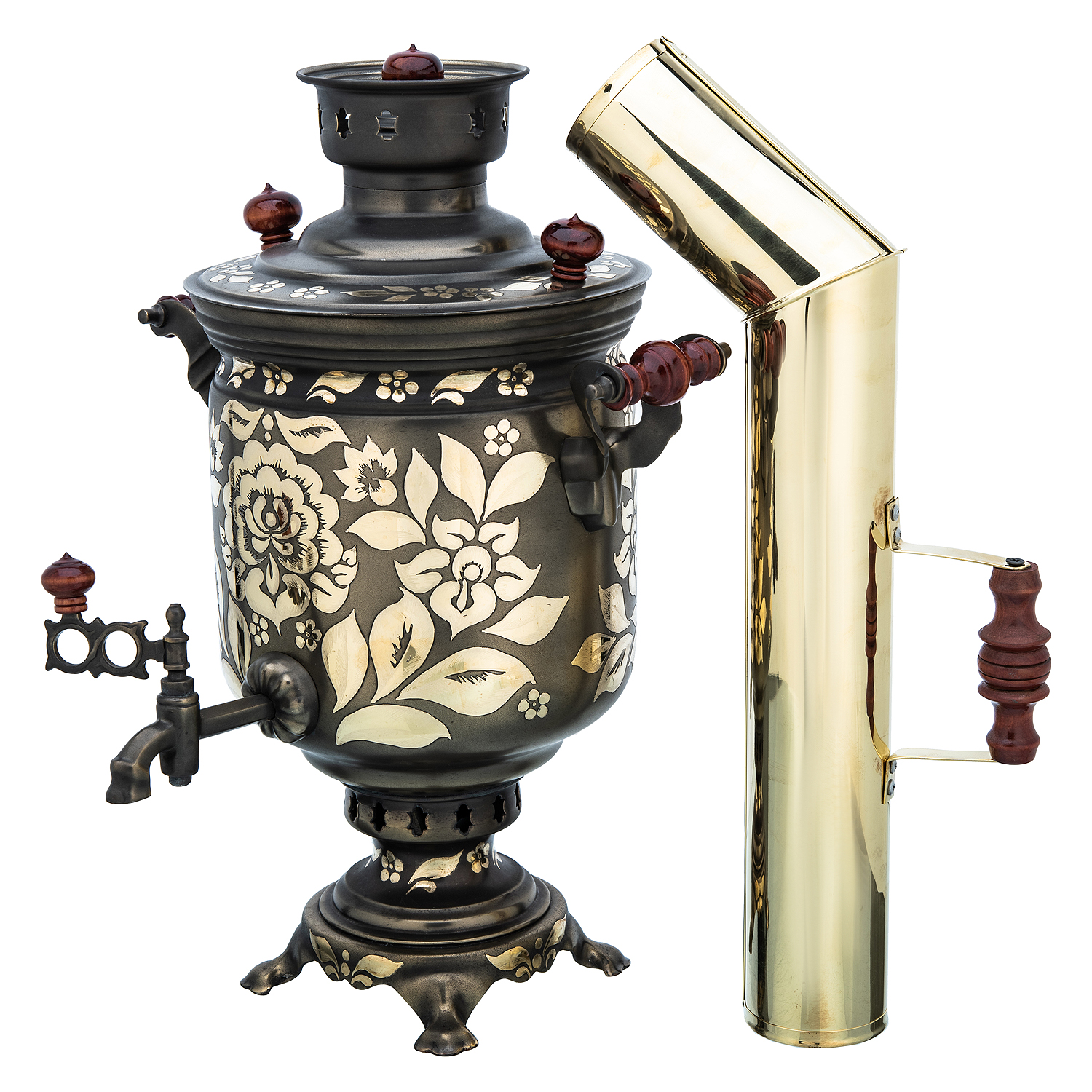 Самовар латунный комбинированный 5 л "Цветы"