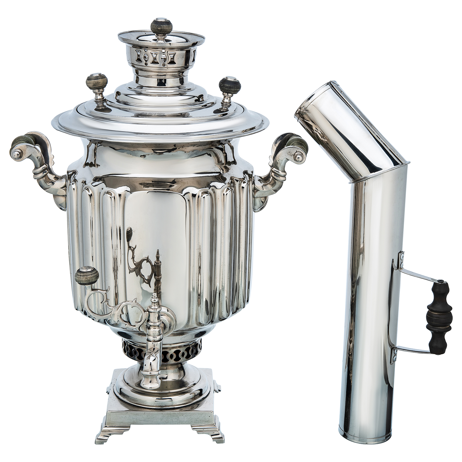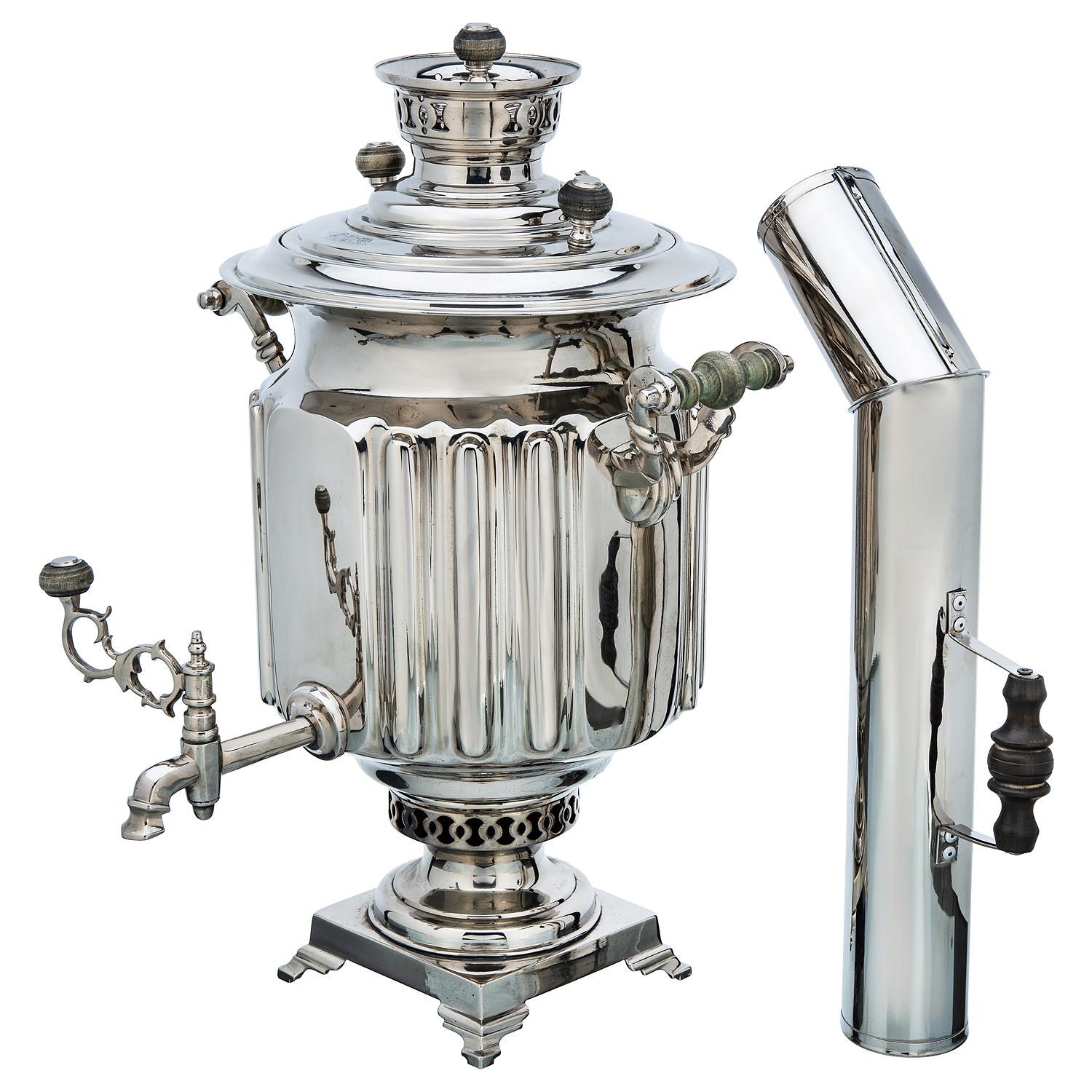 Русские подарки и сувениры → Самовары → Самовары жаровые на дровах → Самовар жаровой латунный никелированный 8 л