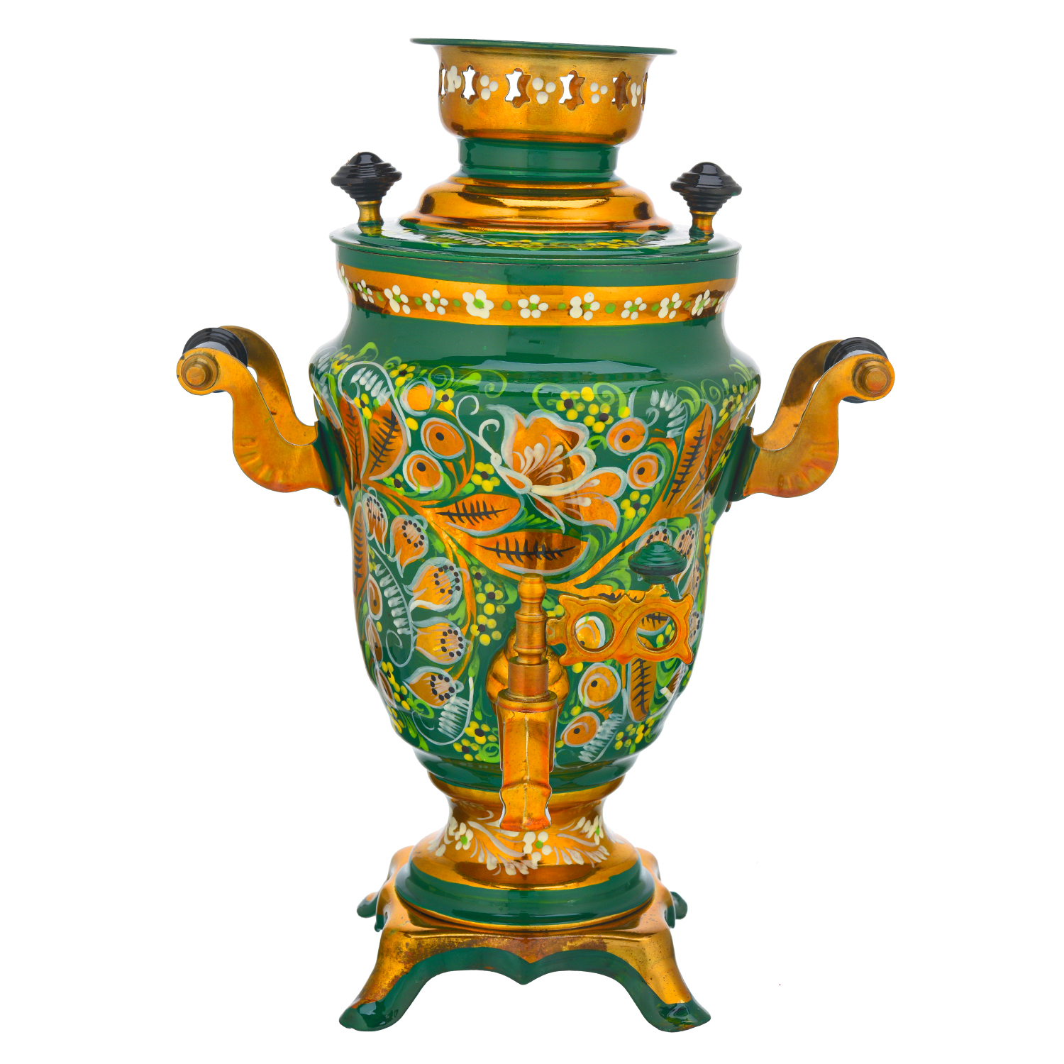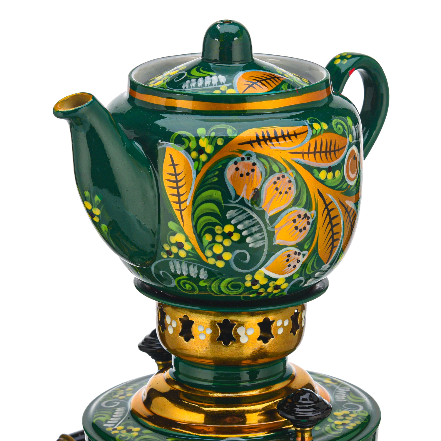 Самовар электрический 1,5 л "Ландыш". Хохлома.Материалы: латунь, фарфор, краски, лак.