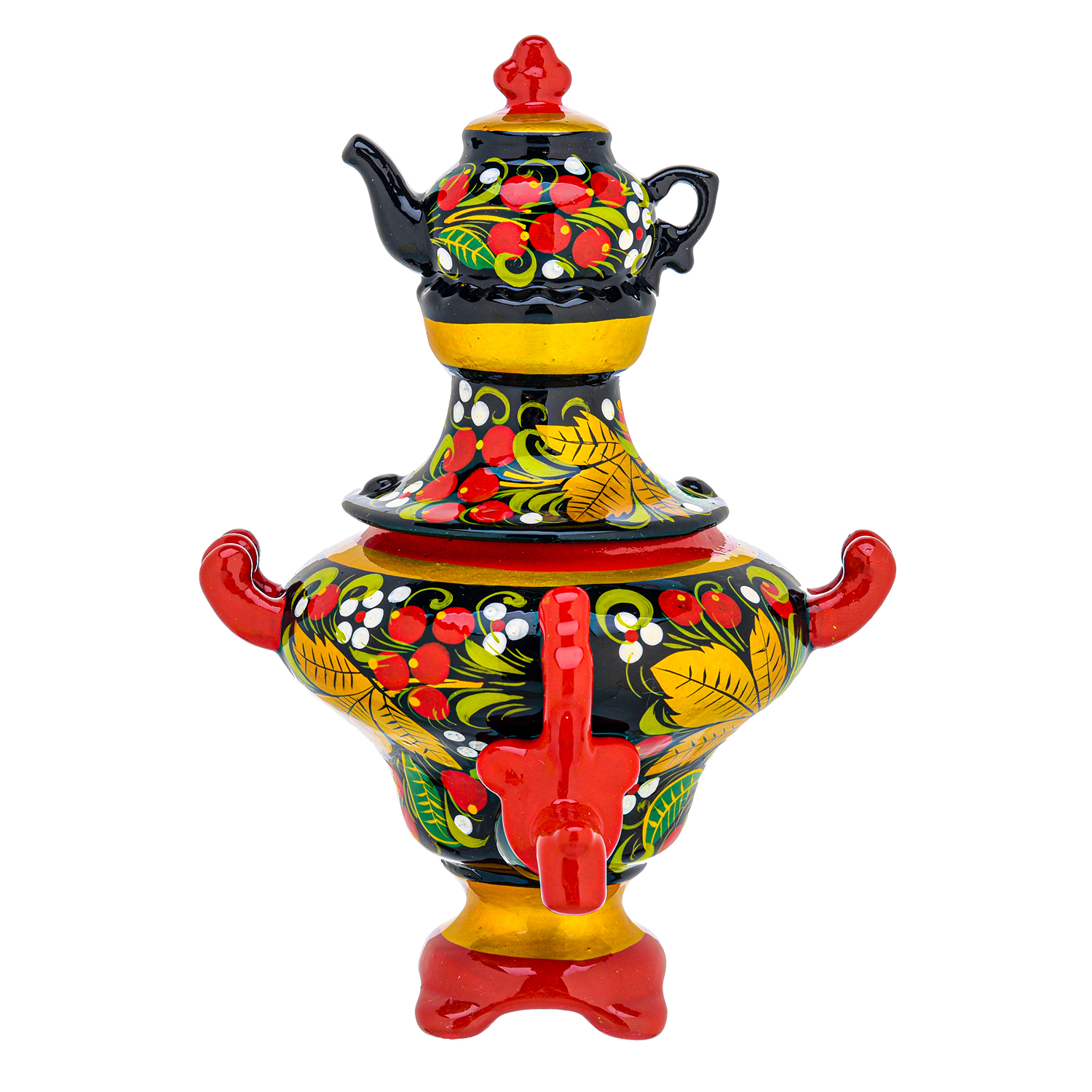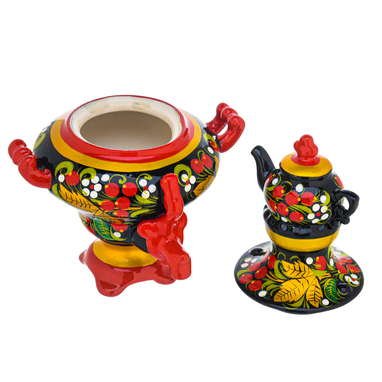 Сувенирный самовар-шкатулка "Рябина". Хохлома.Материалы: керамика, краски, лак.