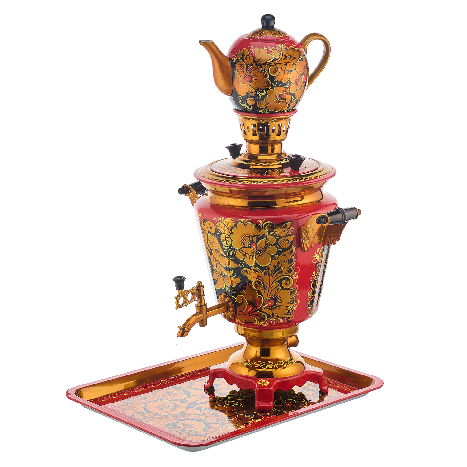 Русские подарки и сувениры → Хохлома → Самовары Хохлома → Самовар электрический 4 л "Кудрина". Хохлома