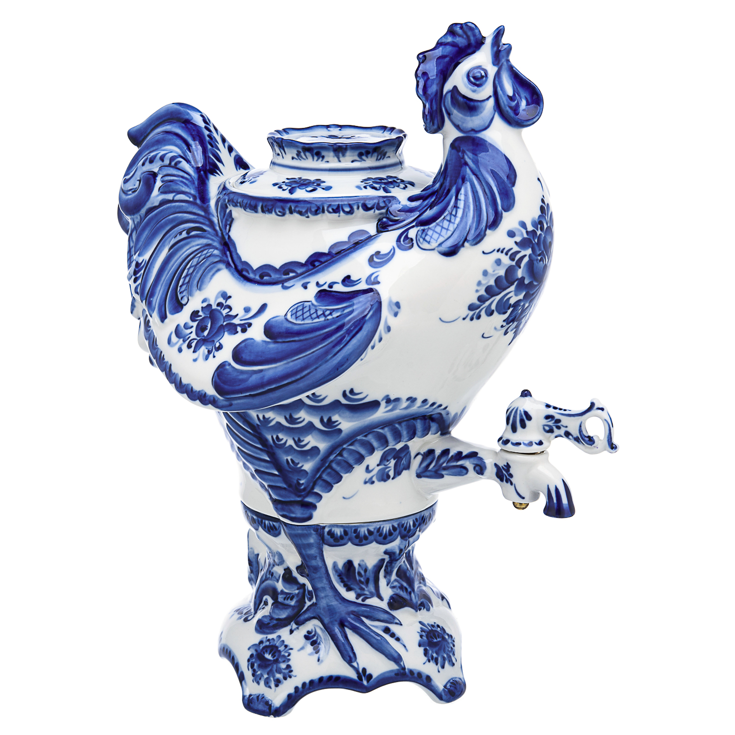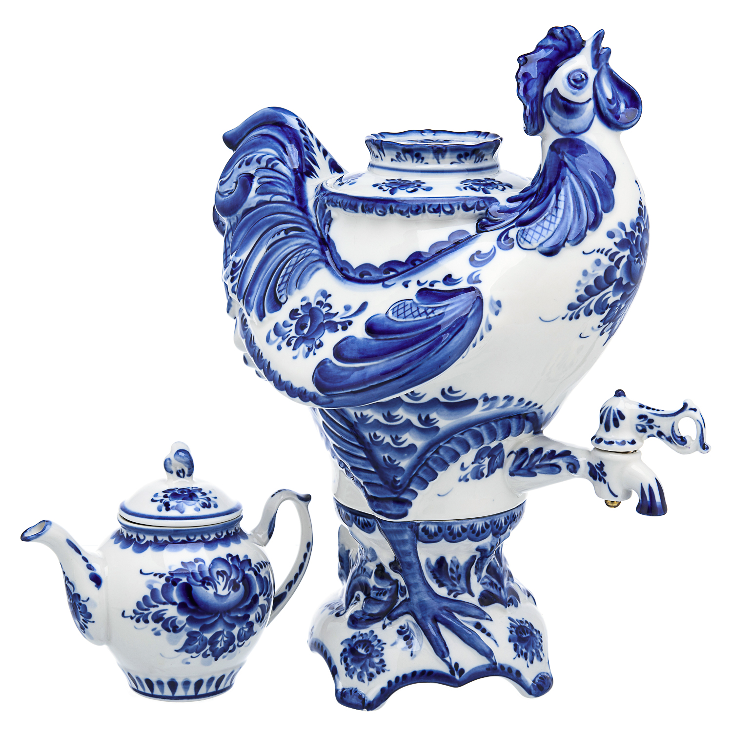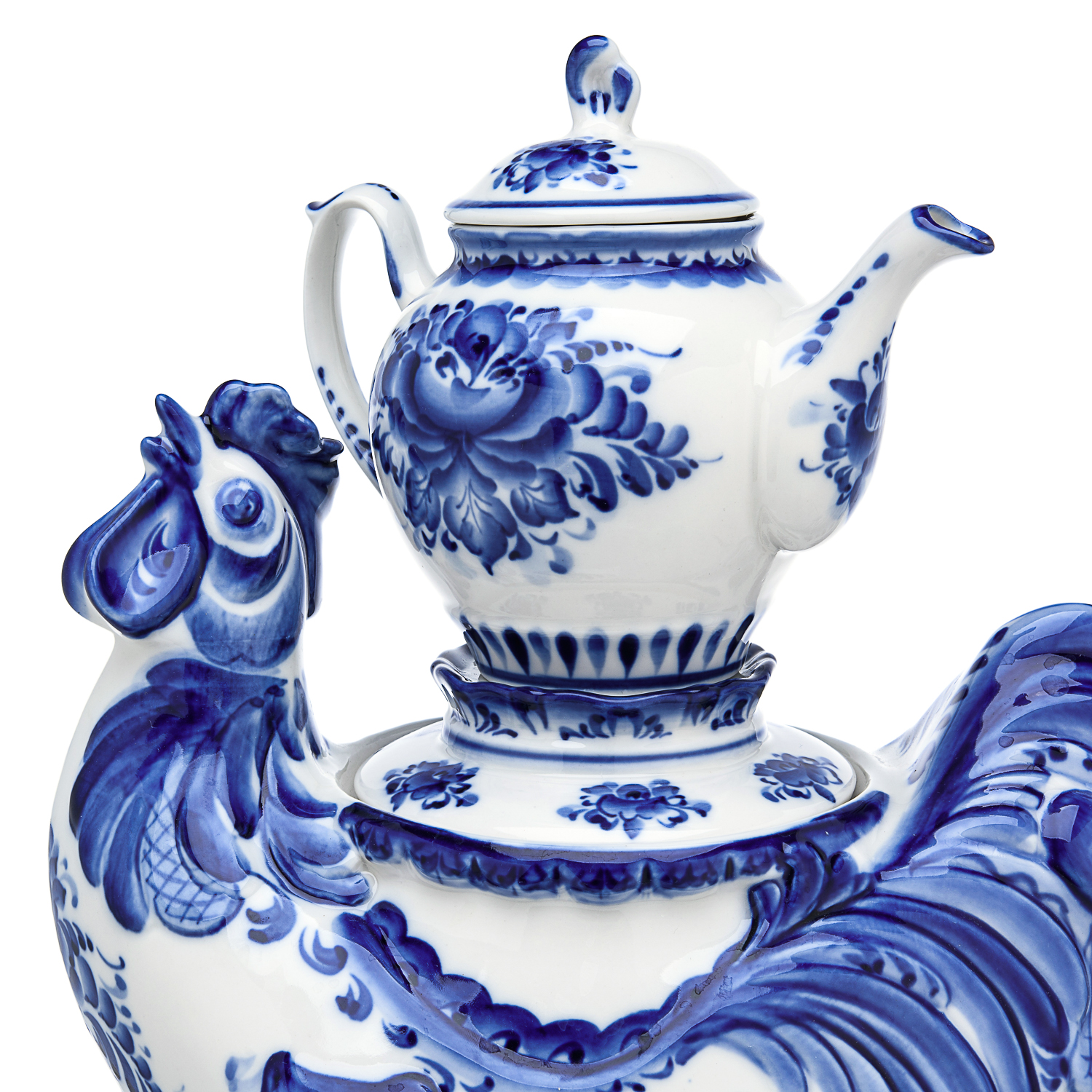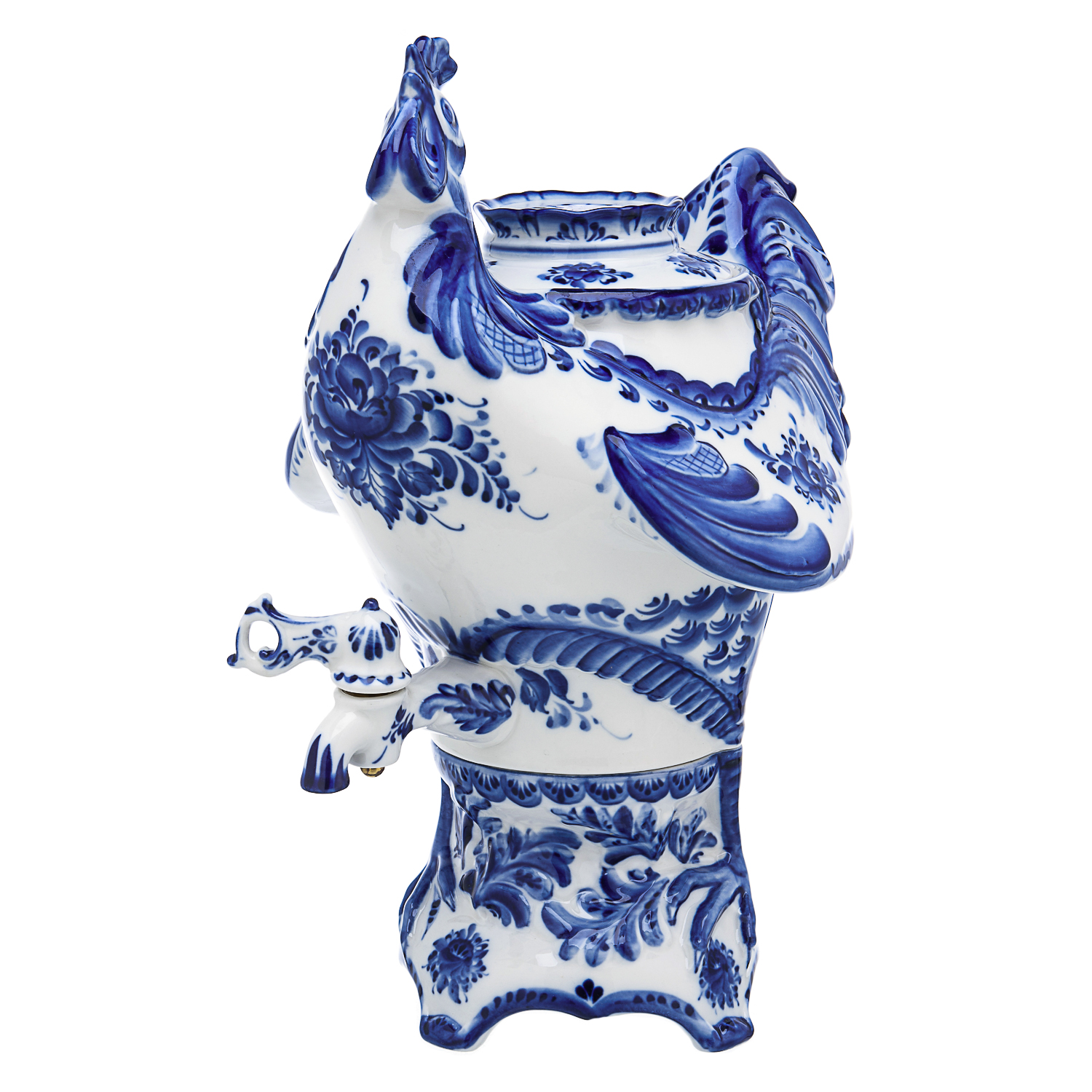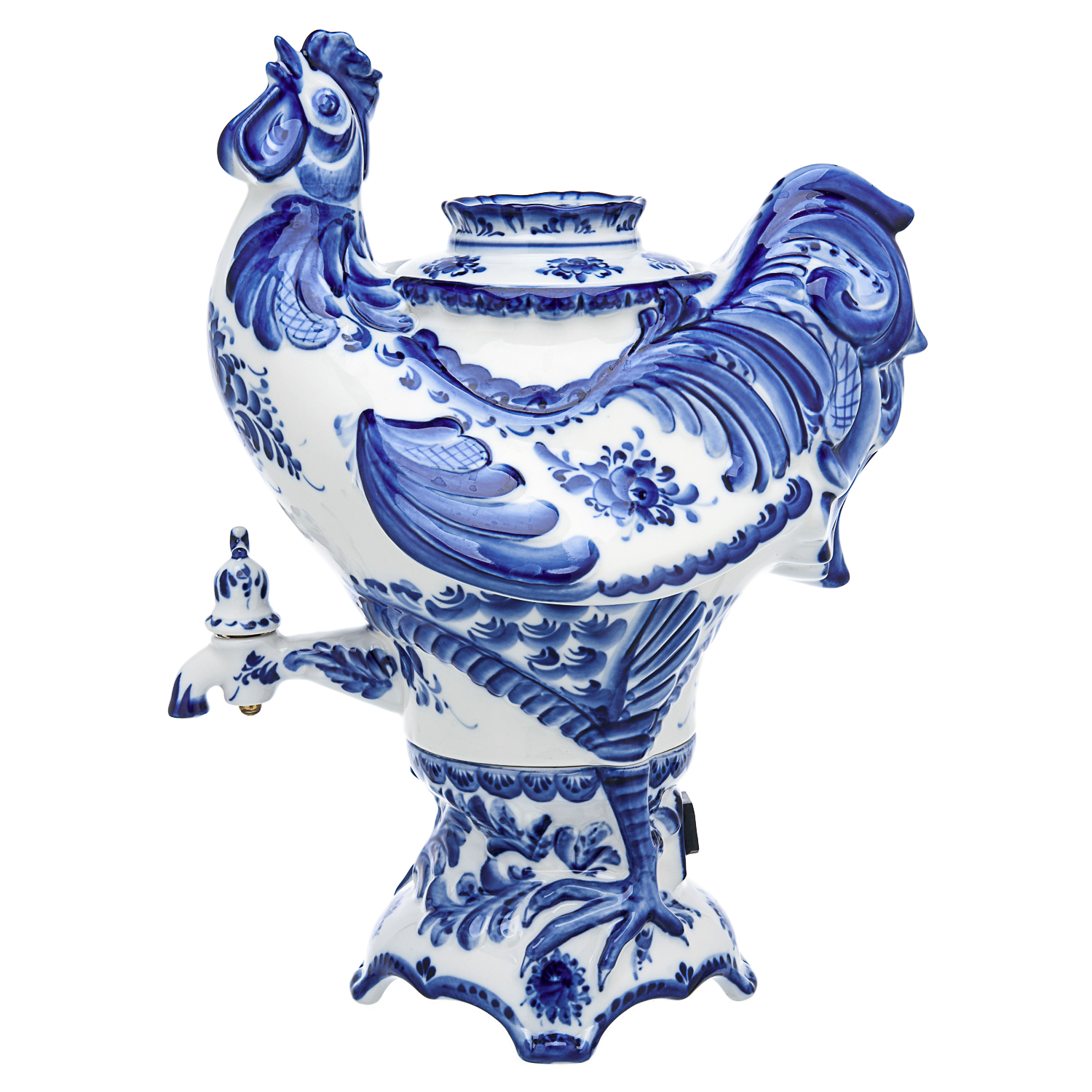 Русские подарки и сувениры → Самовары → Самовар фарфоровый электрический 3,5 л "Петух голосистый". Гжель