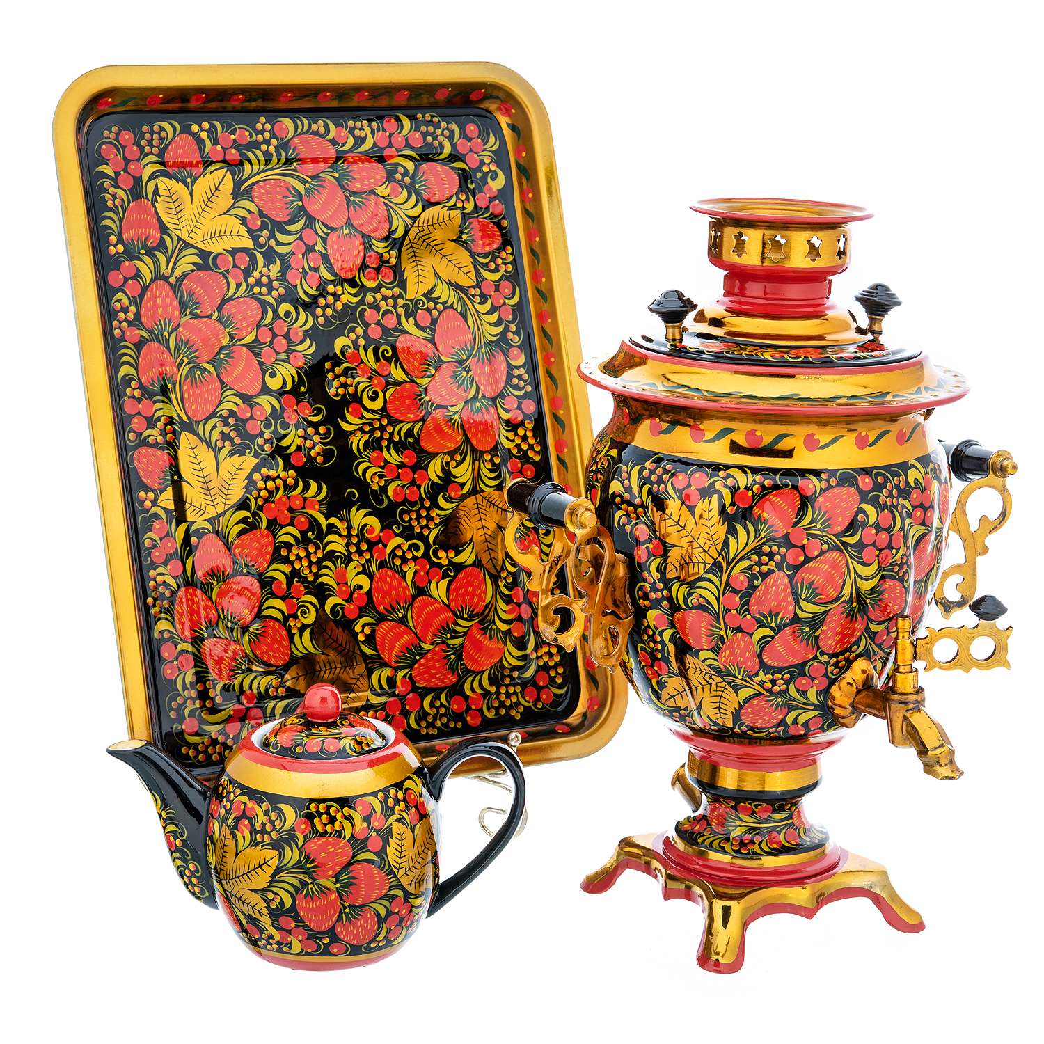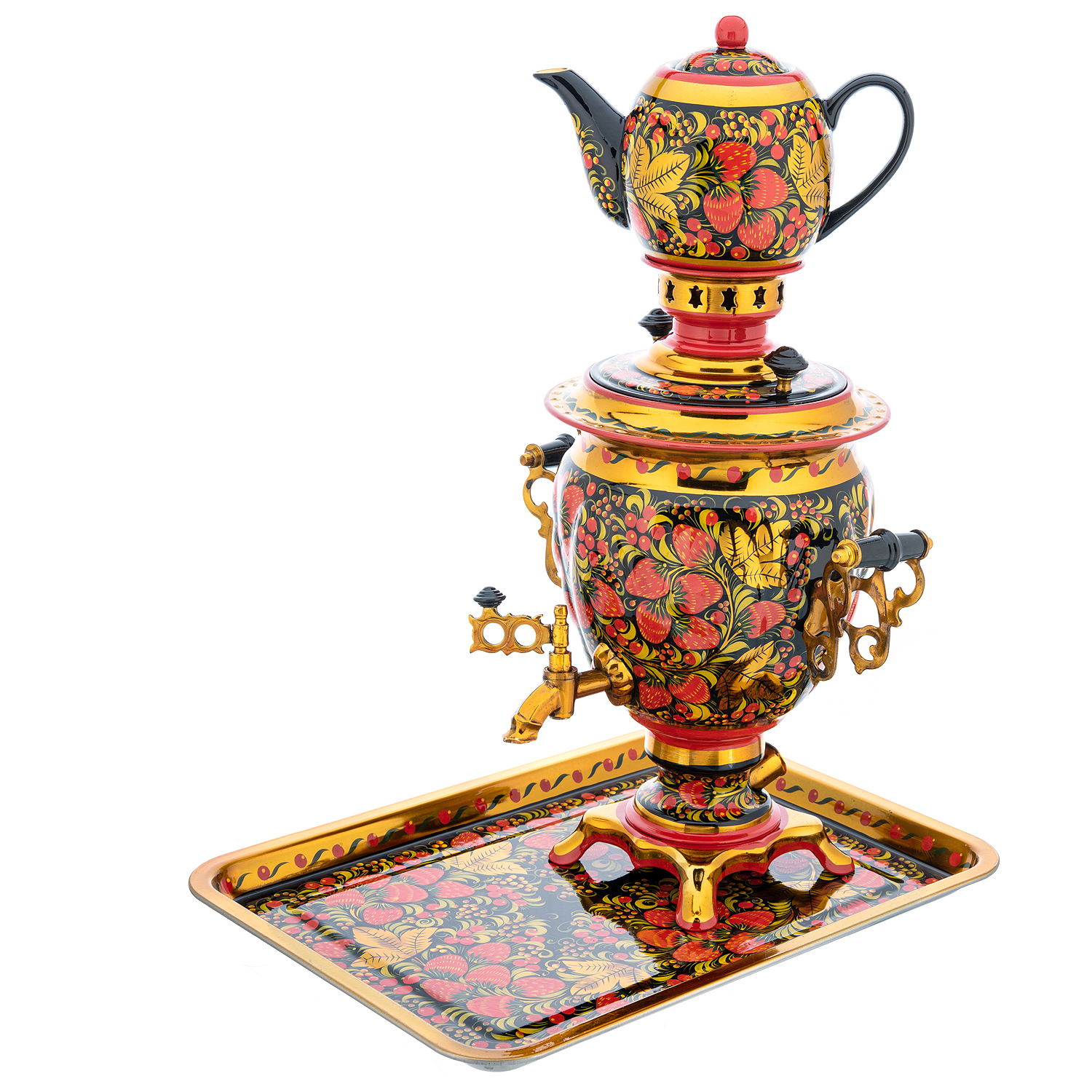 Самовар электрический 3 л "Клубника". Хохлома