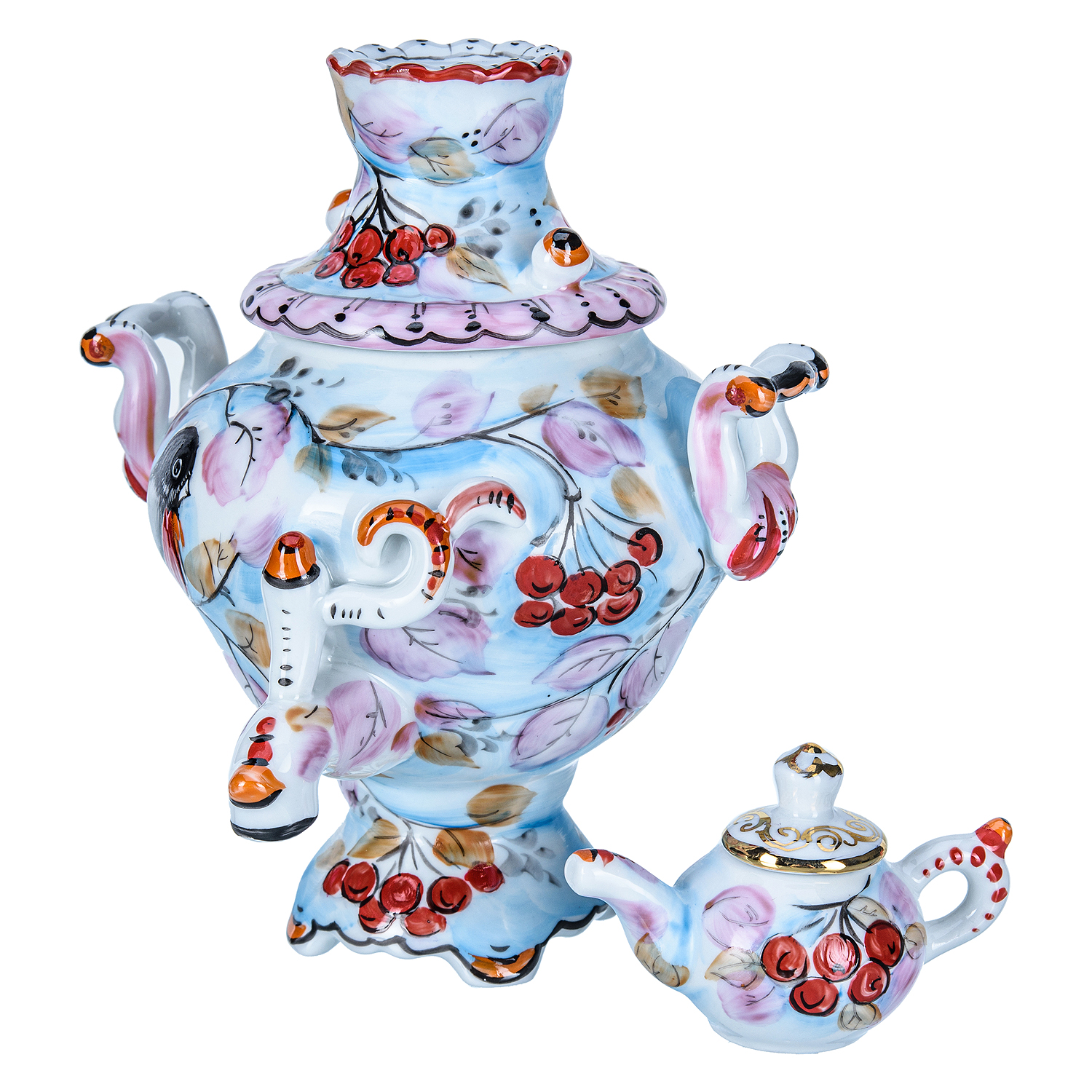 Самовар сувенирный "Зима. Снегири". Гжель в цвете