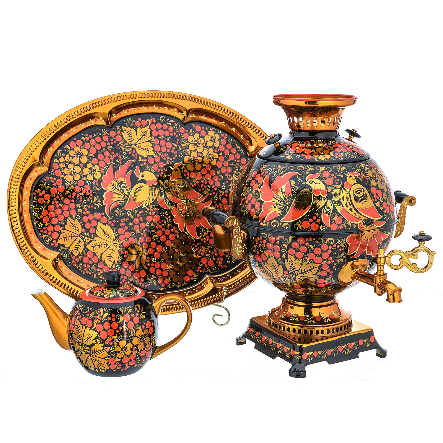 Самовар электрический 5 л "Птицы". Хохлома