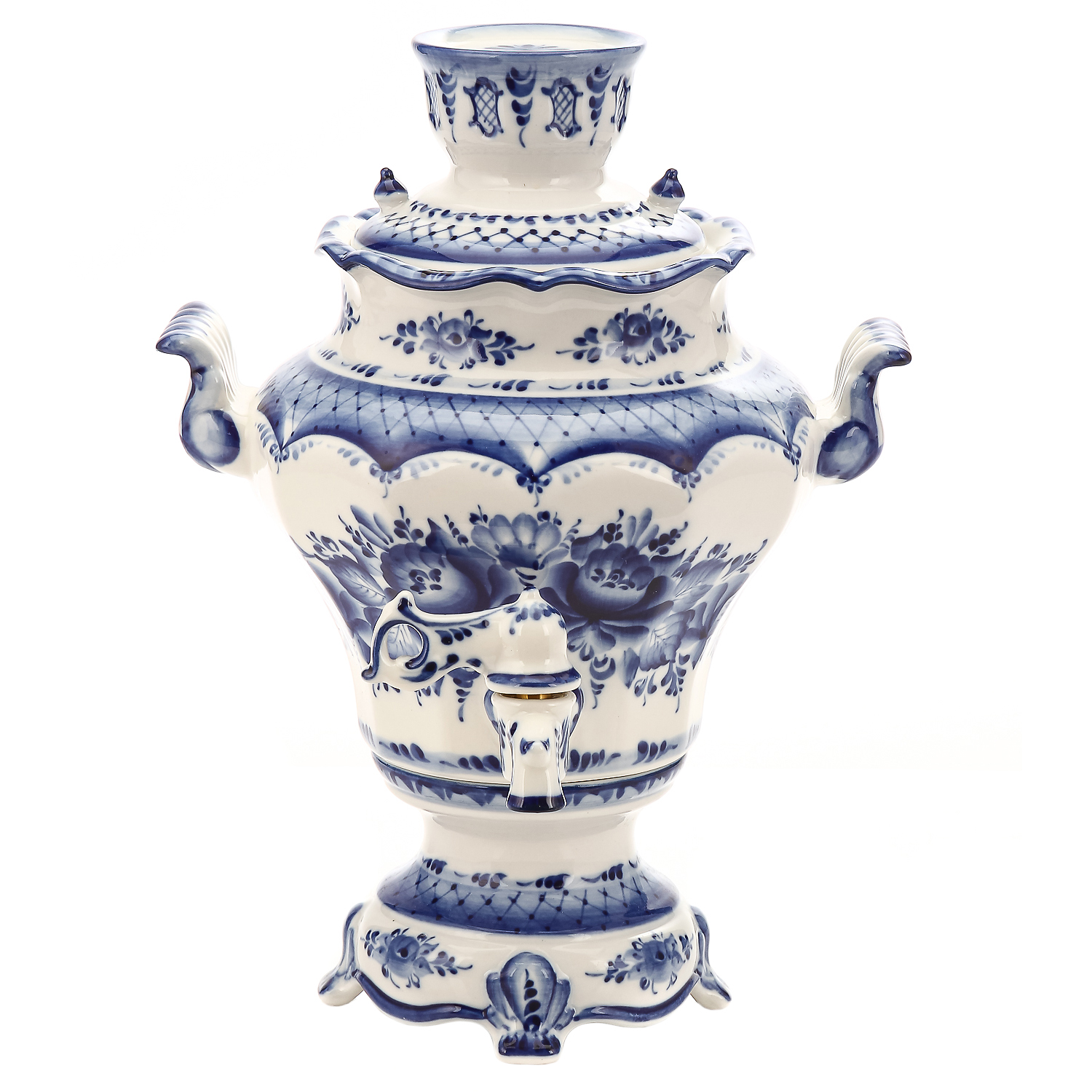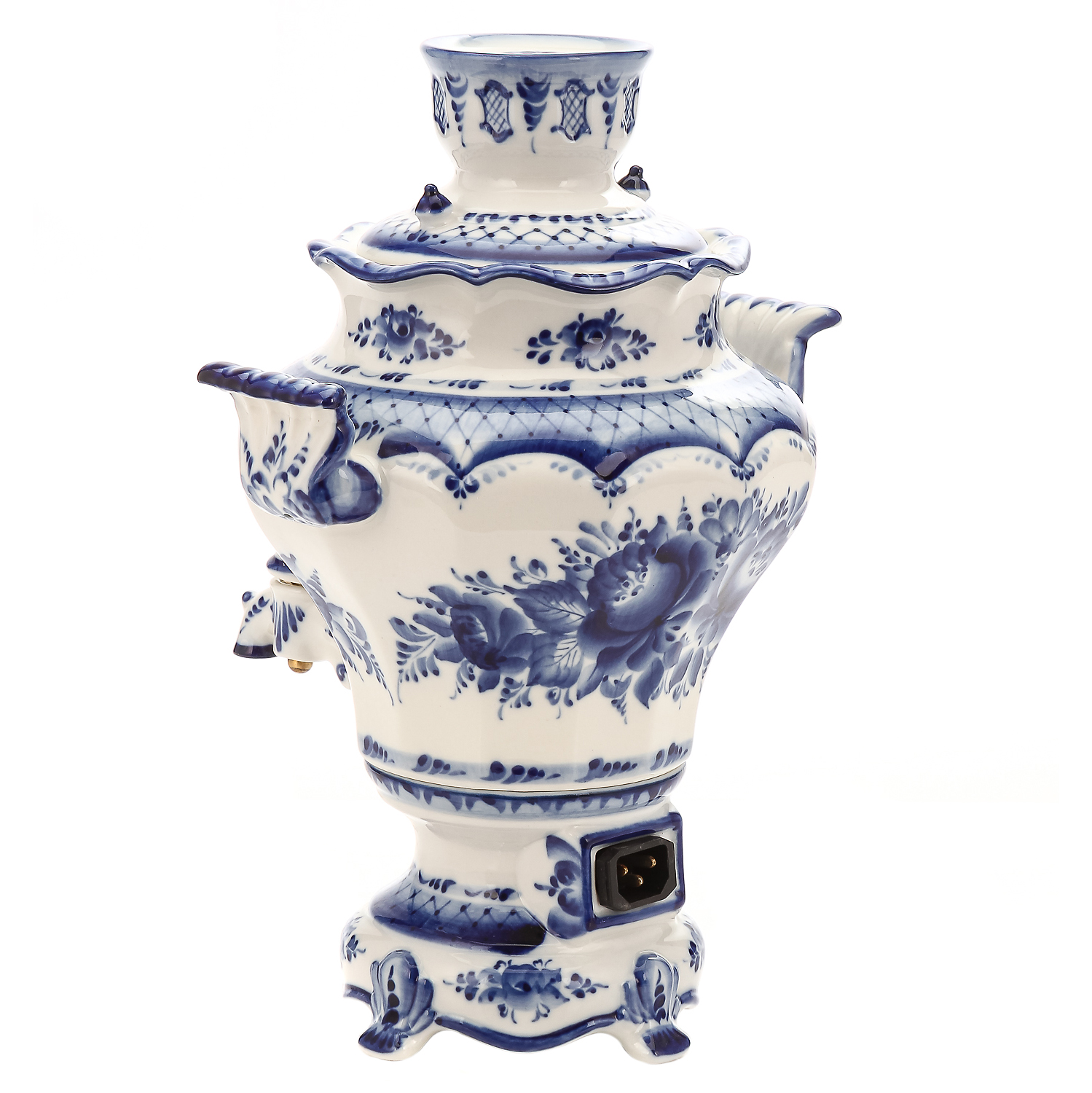 Самовар фарфоровый электрический 2л "Летняя фантазия" с сервизом 6 персон. Гжель