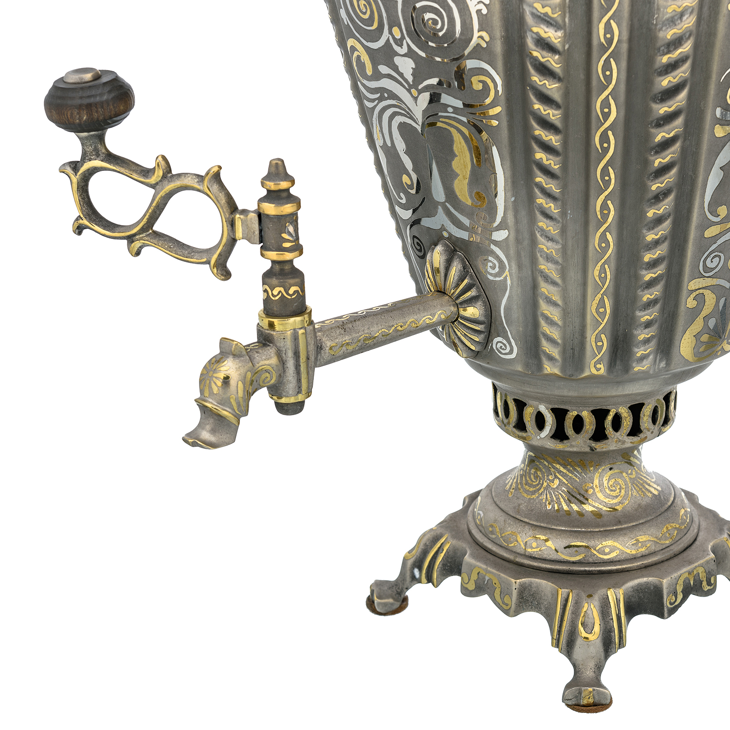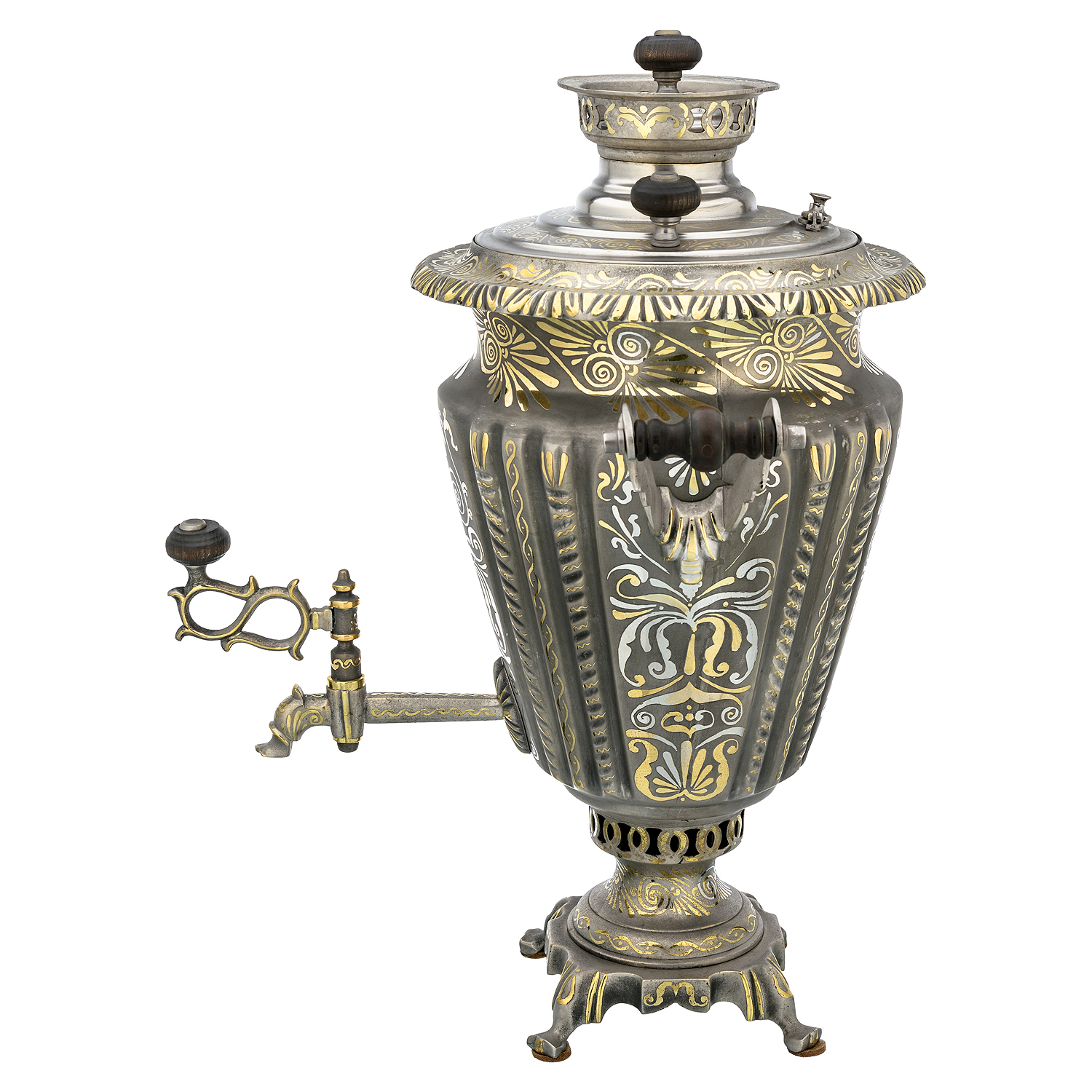 Самовар жаровой латунный 7л "Золотой орнамент". Форма "Рюмка".