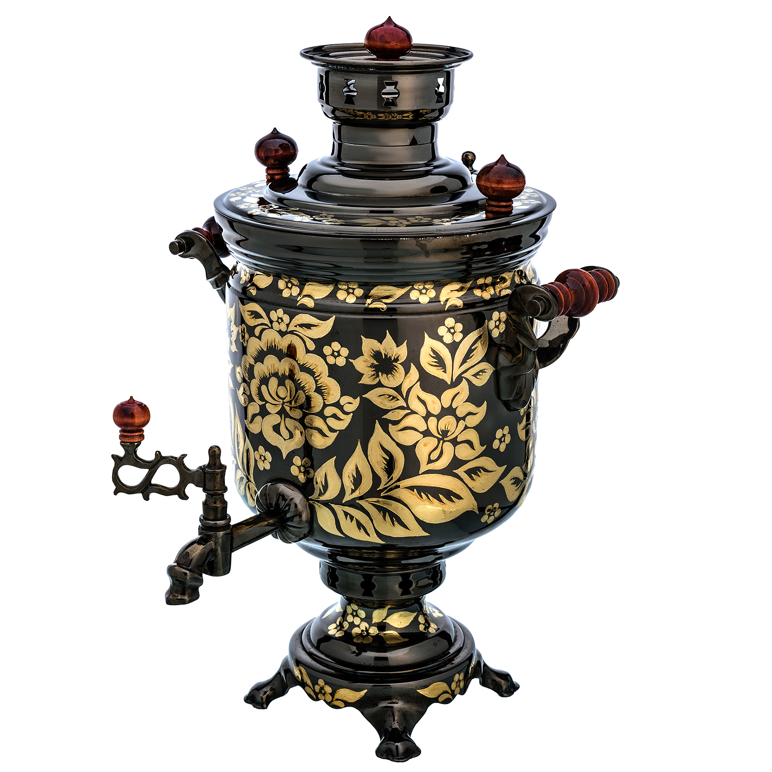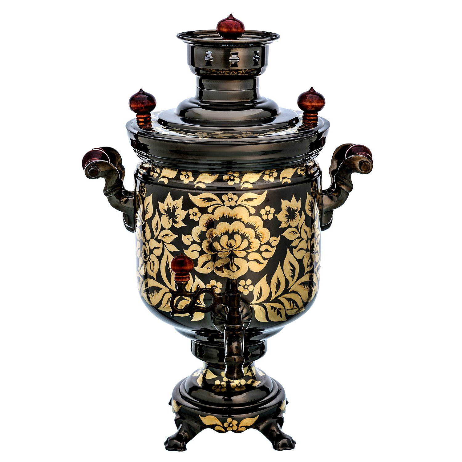 Самовар комбинированный латунный 5 л "Цветы". Форма Банка