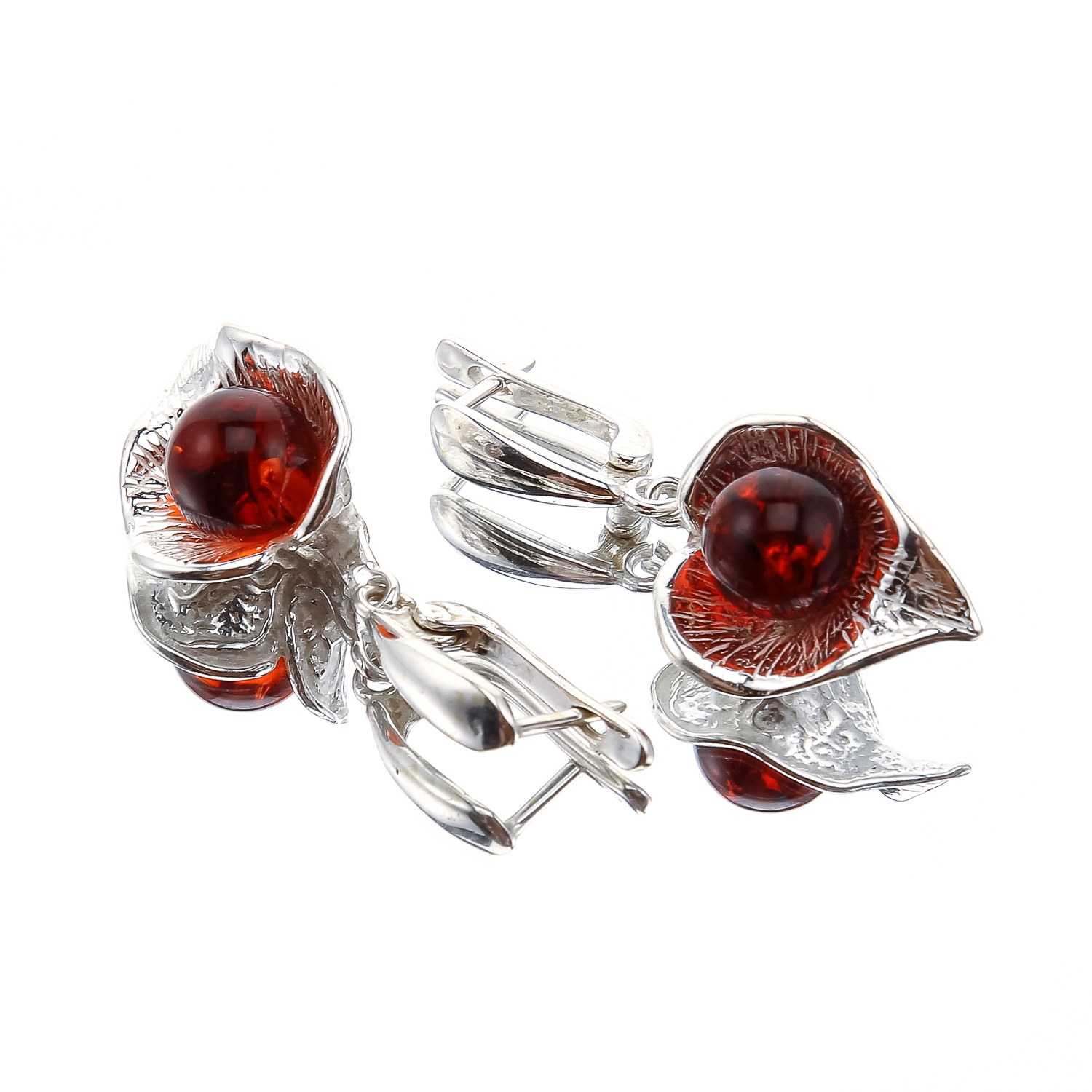 Серьги с янтарными вставками