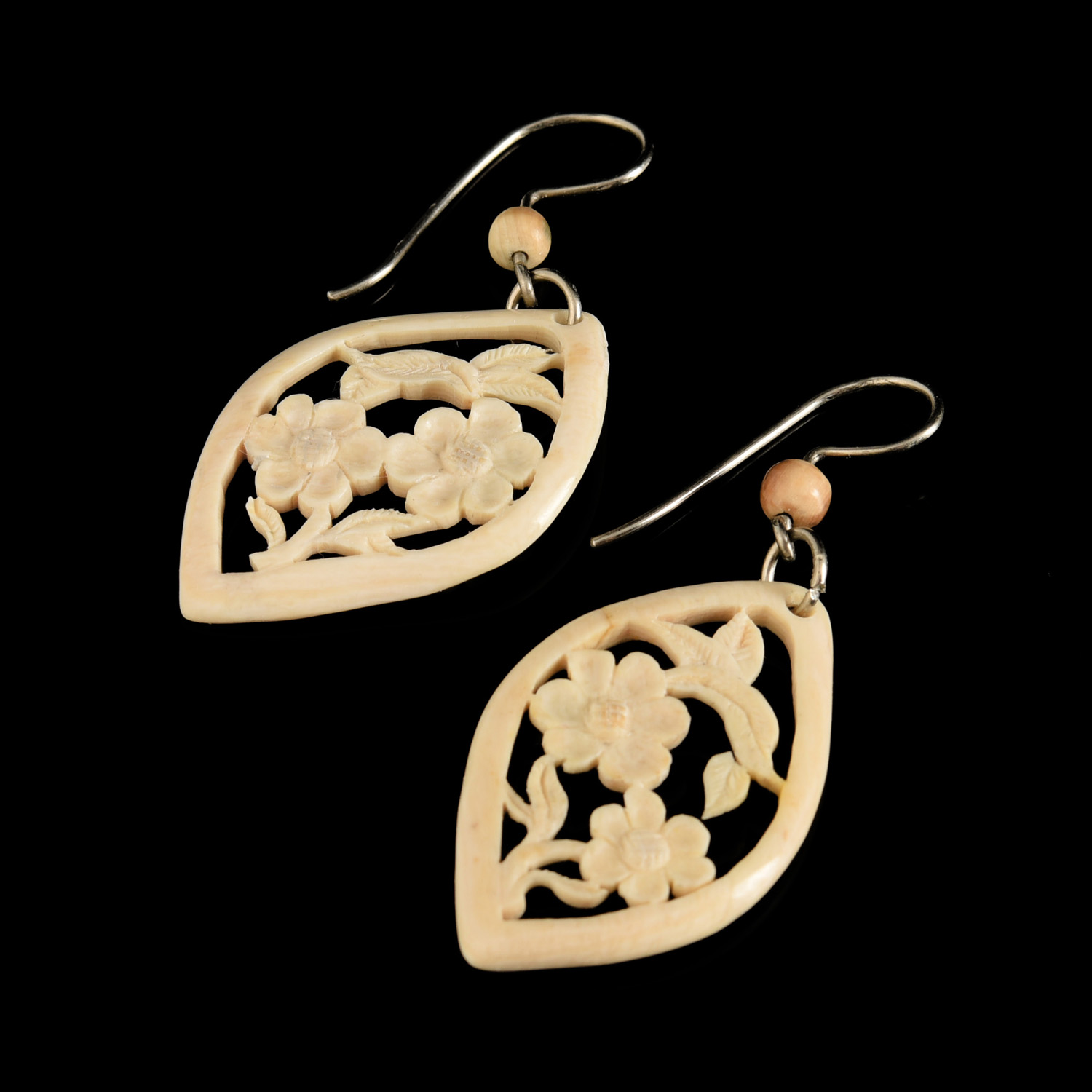 Серьги из бивня мамонта "Весна".Размер: 20х45 мм
