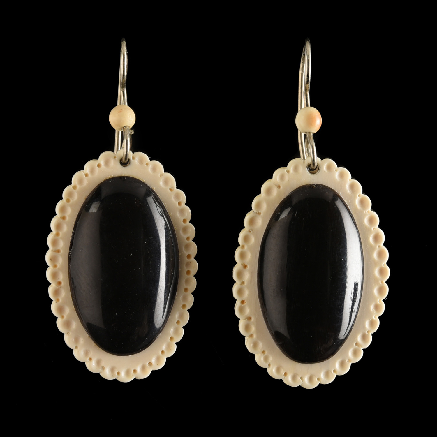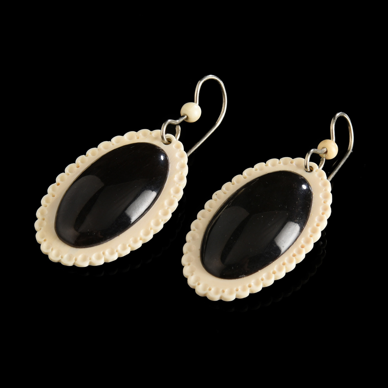 Серьги из бивня мамонта "Ночь".Размер: 45х25 мм