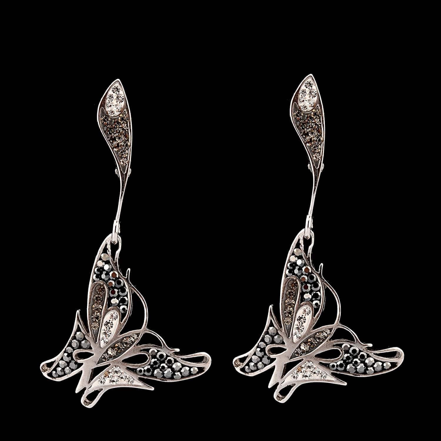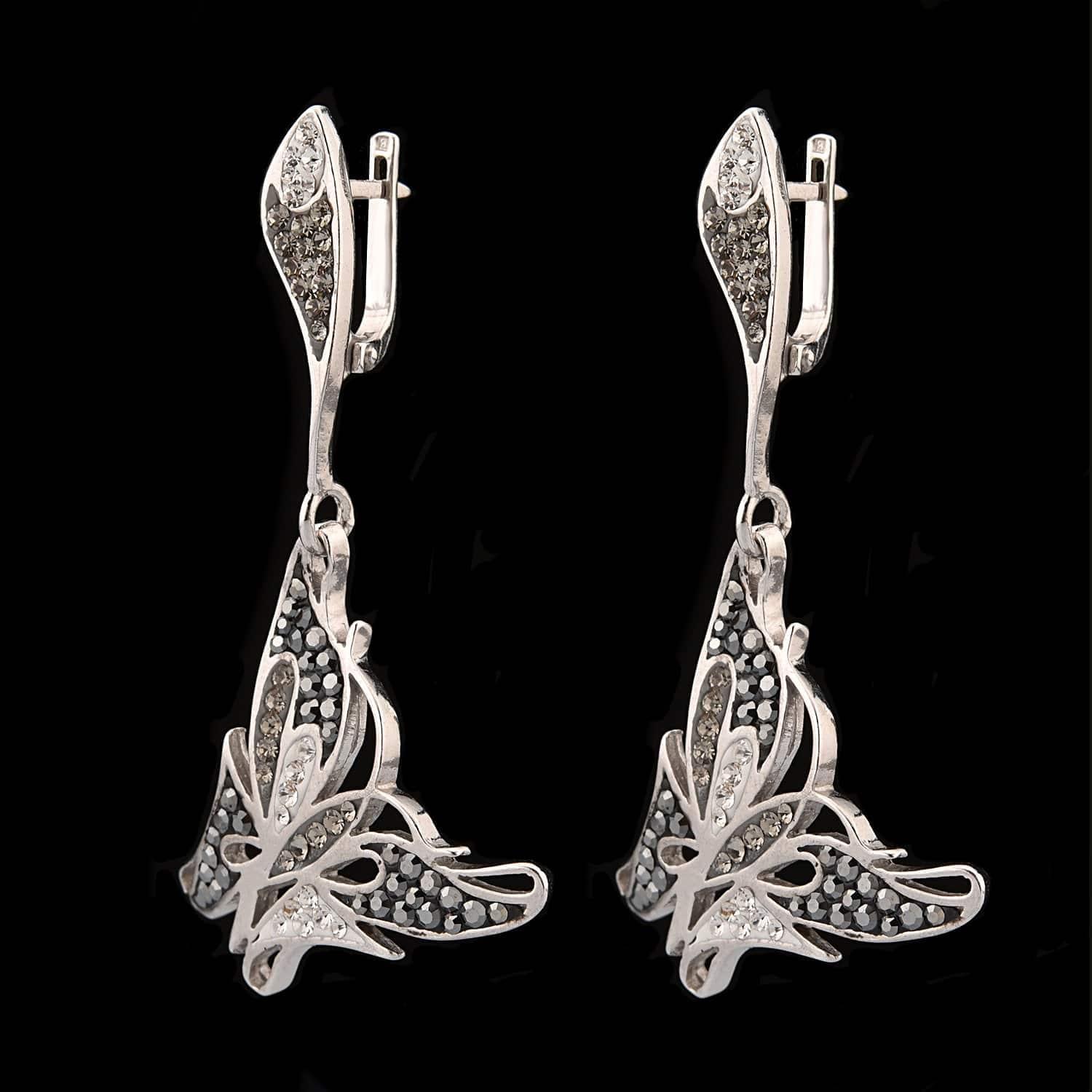 Динамичные подвески-бабочки усыпаны кристаллами Сваровски и подвешены к основанию в форме капли. Они облегают мочки ушей и защелкиваются на английский замок. Мы рады предложить Вам долгожданную коллекцию сережек из серебра, которые можно носить каждый день. Серьги усиливают энергетику обладательницы, ее природный магнетизм и очарование...