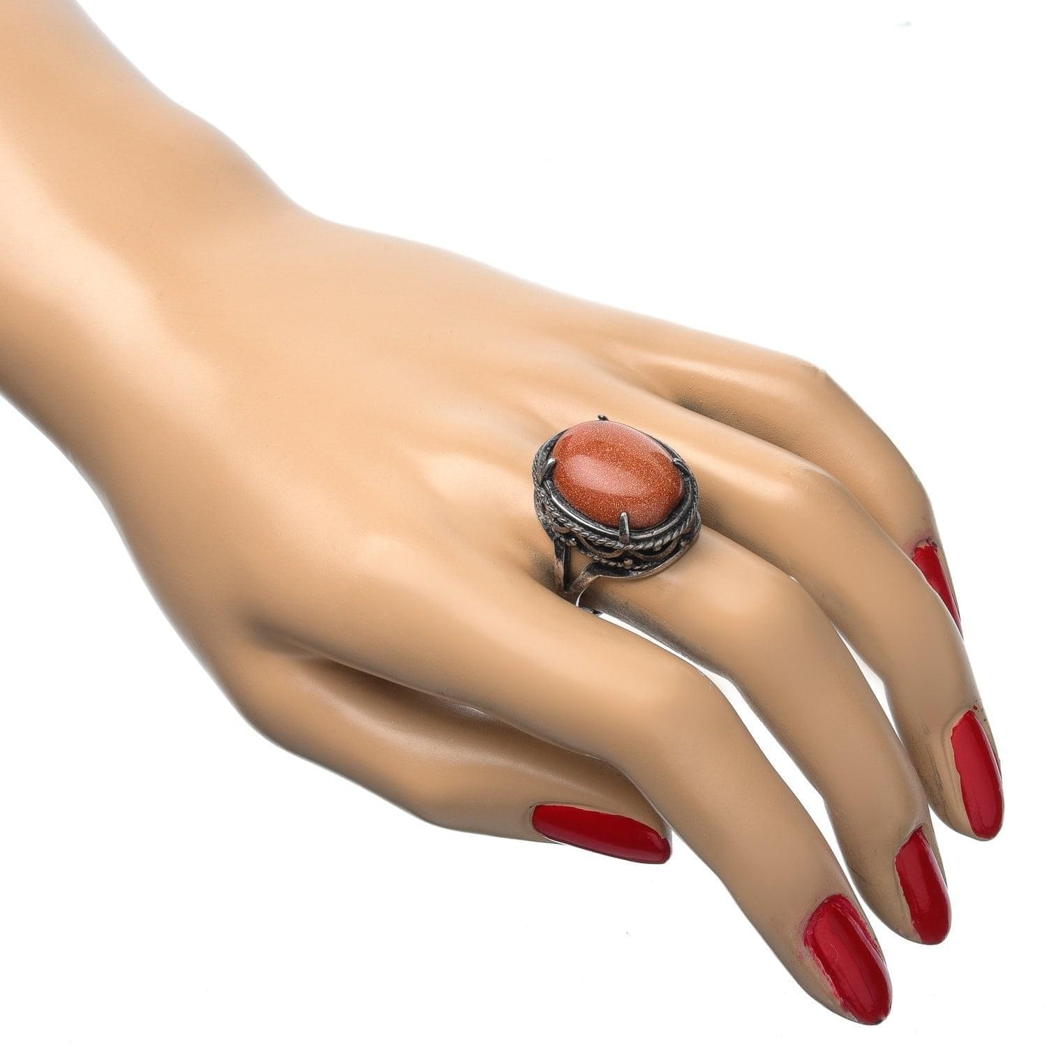 Два украшения по дизайну напоминает древнерусские перстень и серьги. Акцент в украшениях сделан на крупном камне-самоцвете коричнево-оранжевого оттенка с мельчайшим золотистым шиммером натурального происхождения. Этот оттенок с шиммером отлично сочетается с соответствующими атласными тенями, румянами и губной помадой...