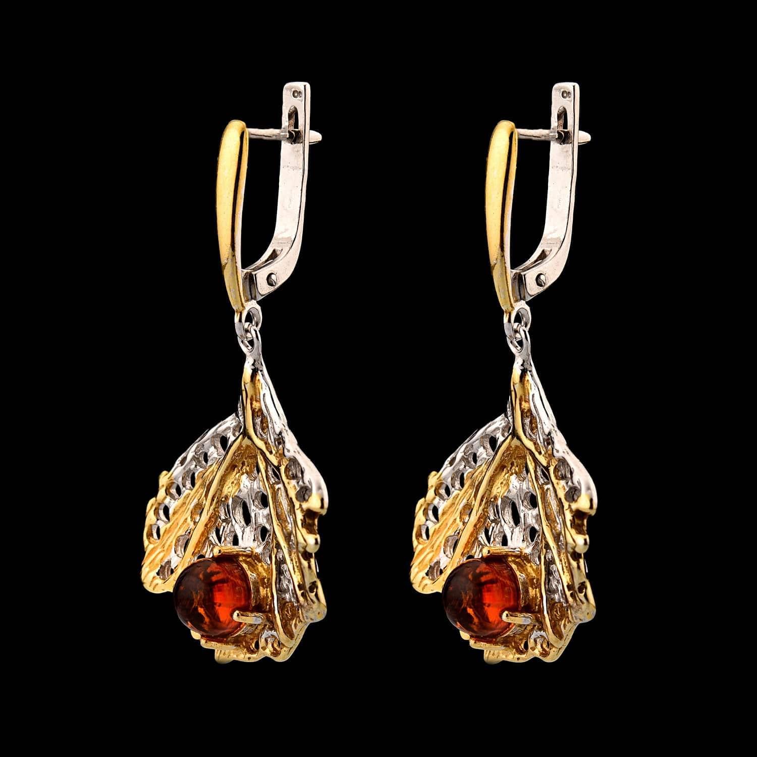 Серьги с янтарными вставками 8,77 гр. Серебро 925*