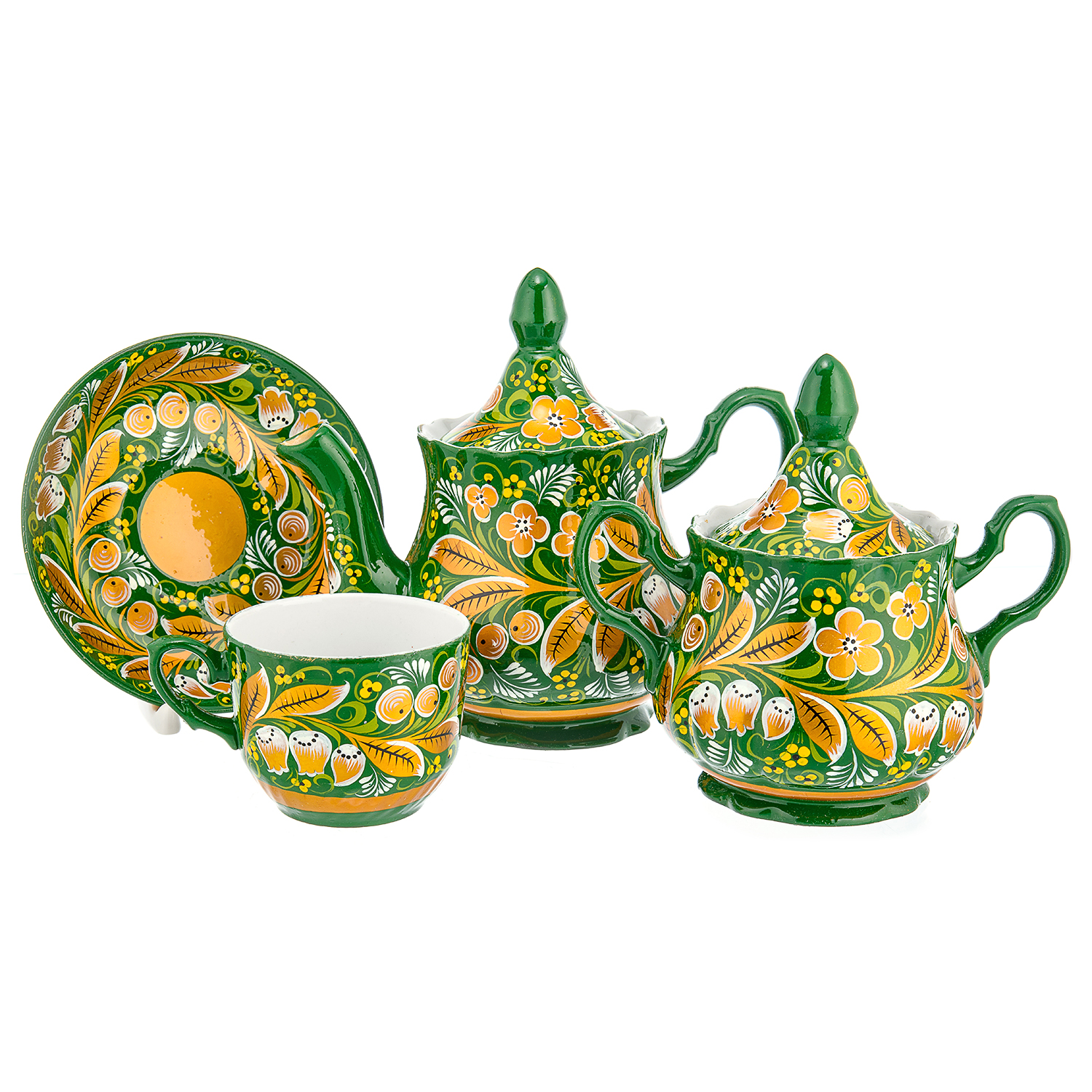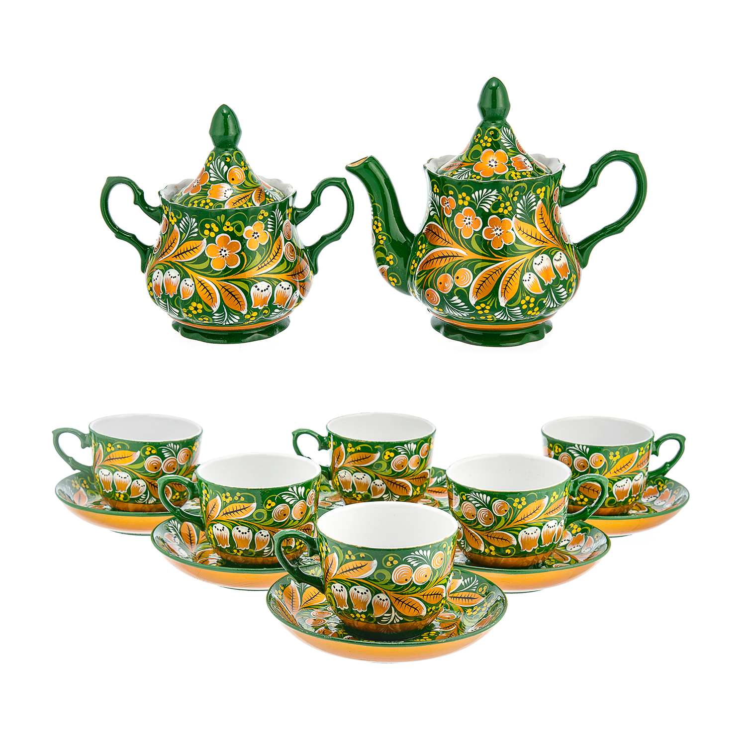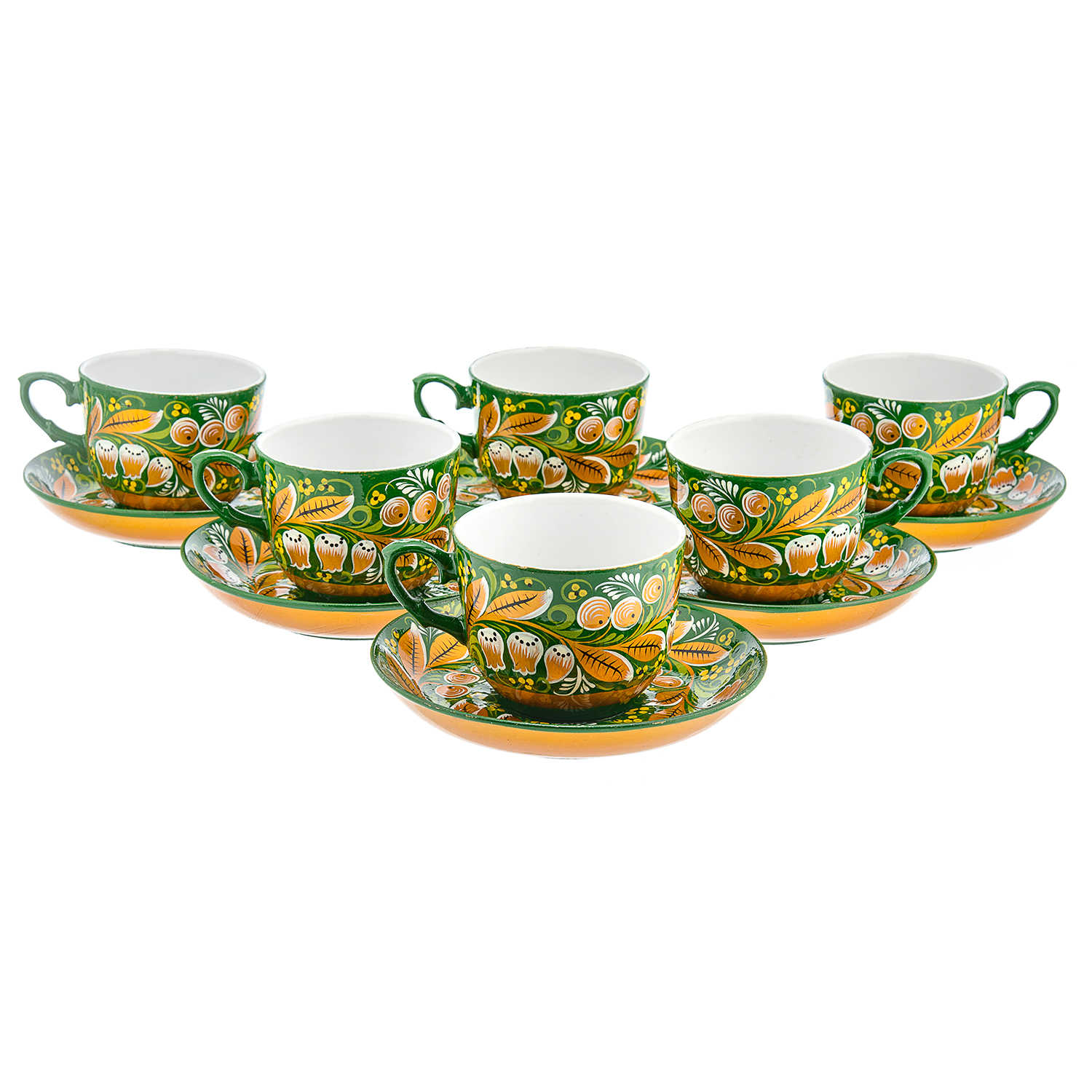 Чайный сервиз на 6 персон "Ландыши. Чаепитие". Хохлома