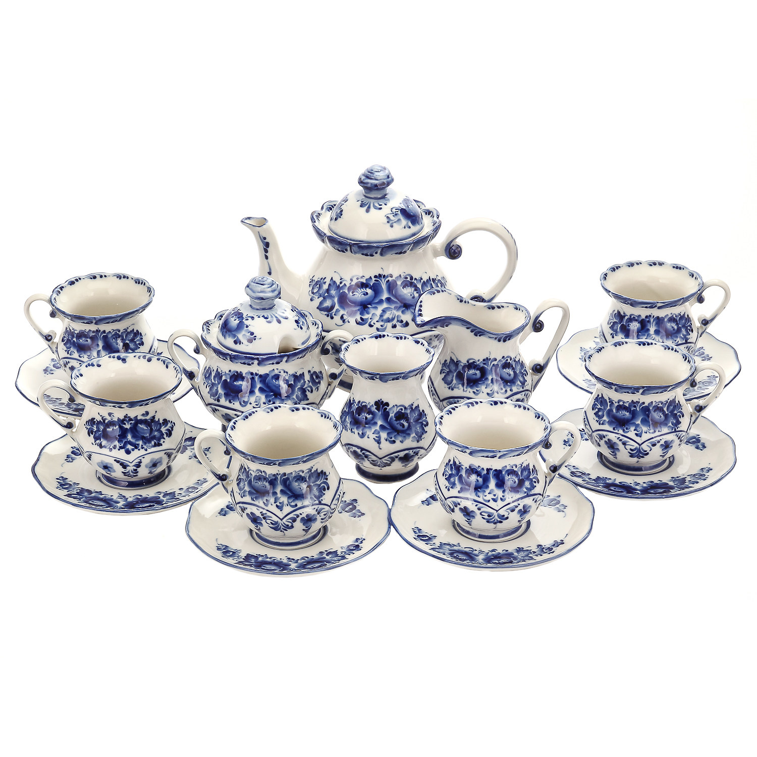 Чайный сервиз на 6 персон "Летняя фантазия". Гжель