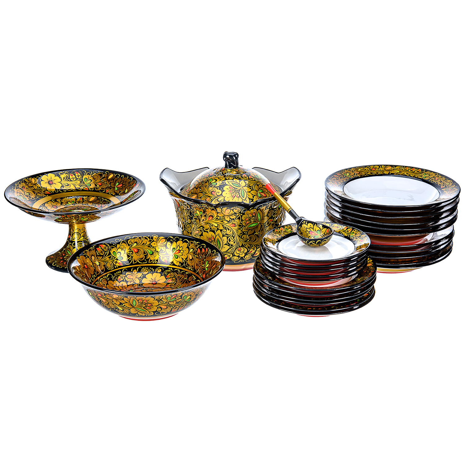 Столовый сервиз на 6 персон "Предания старины". Хохлома