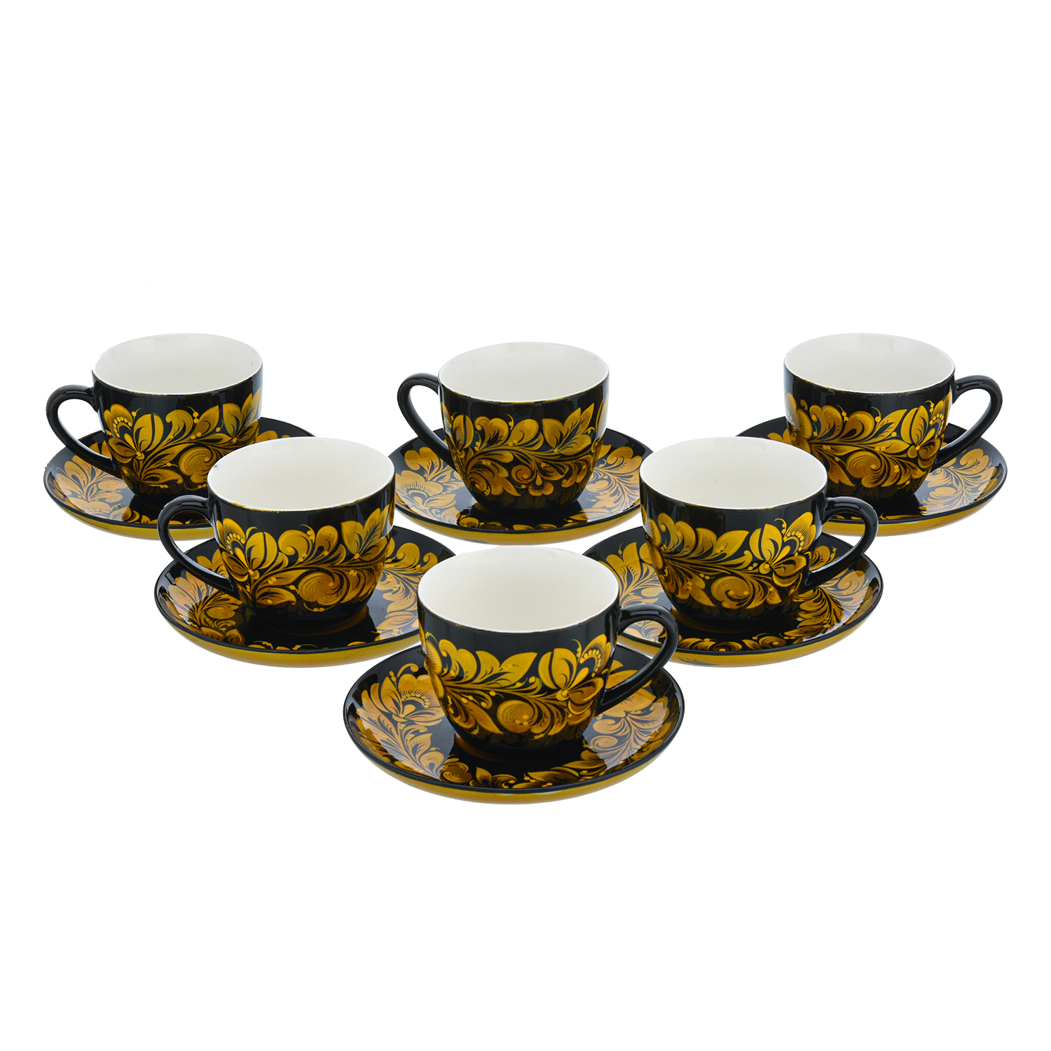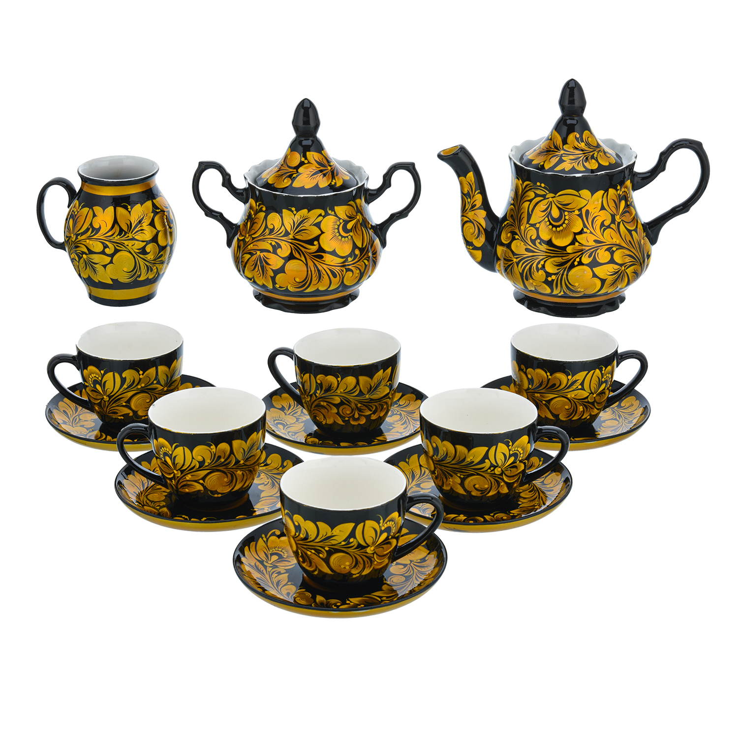 Чайный сервиз на 6 персон "Кудрина". Хохлома