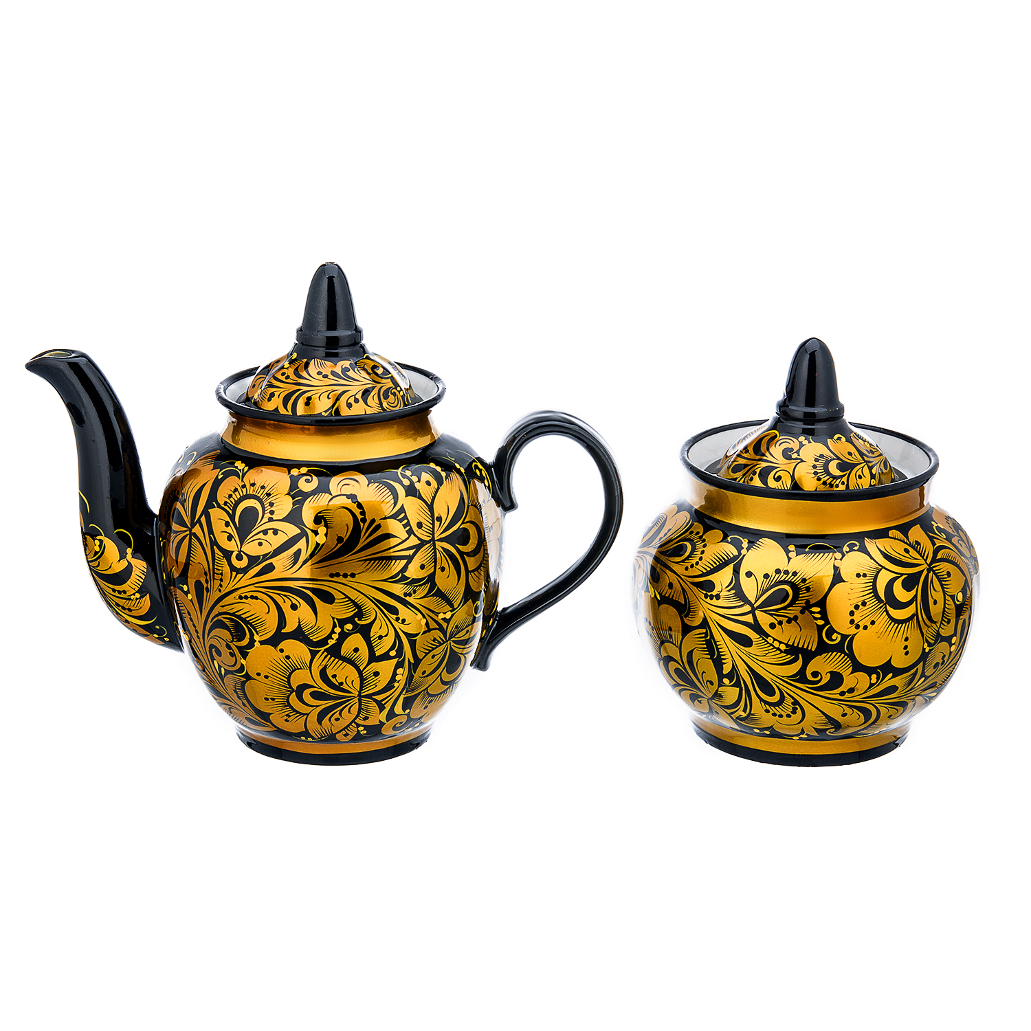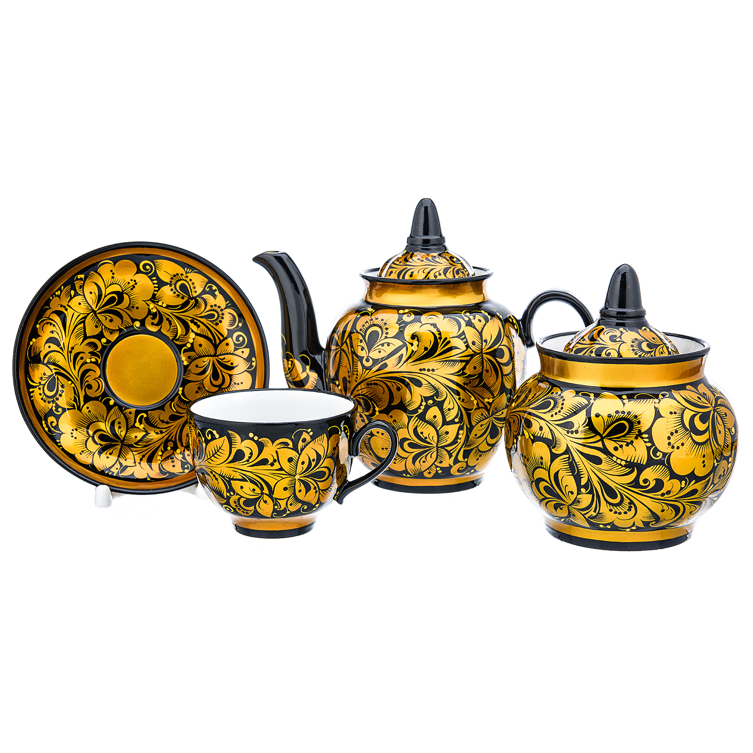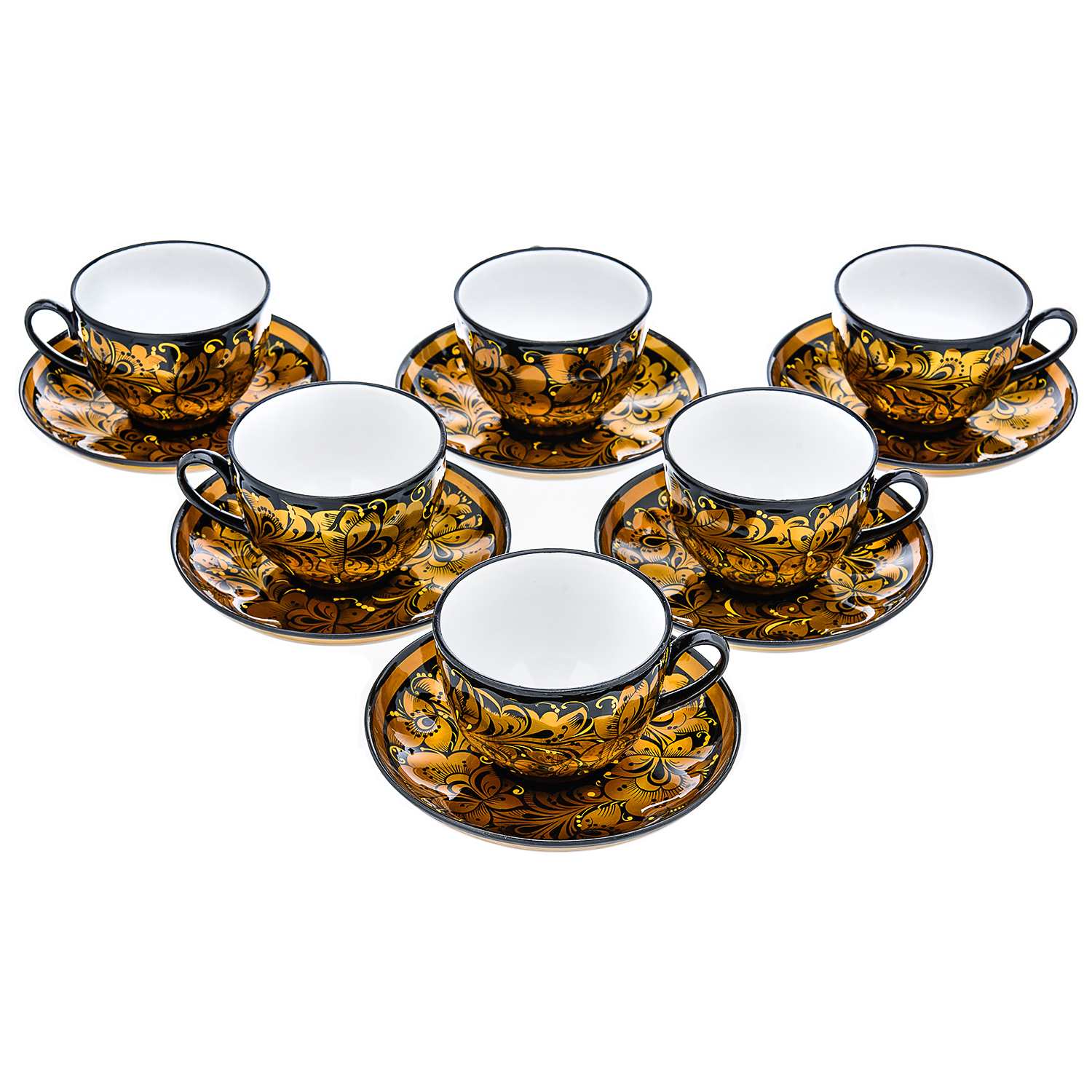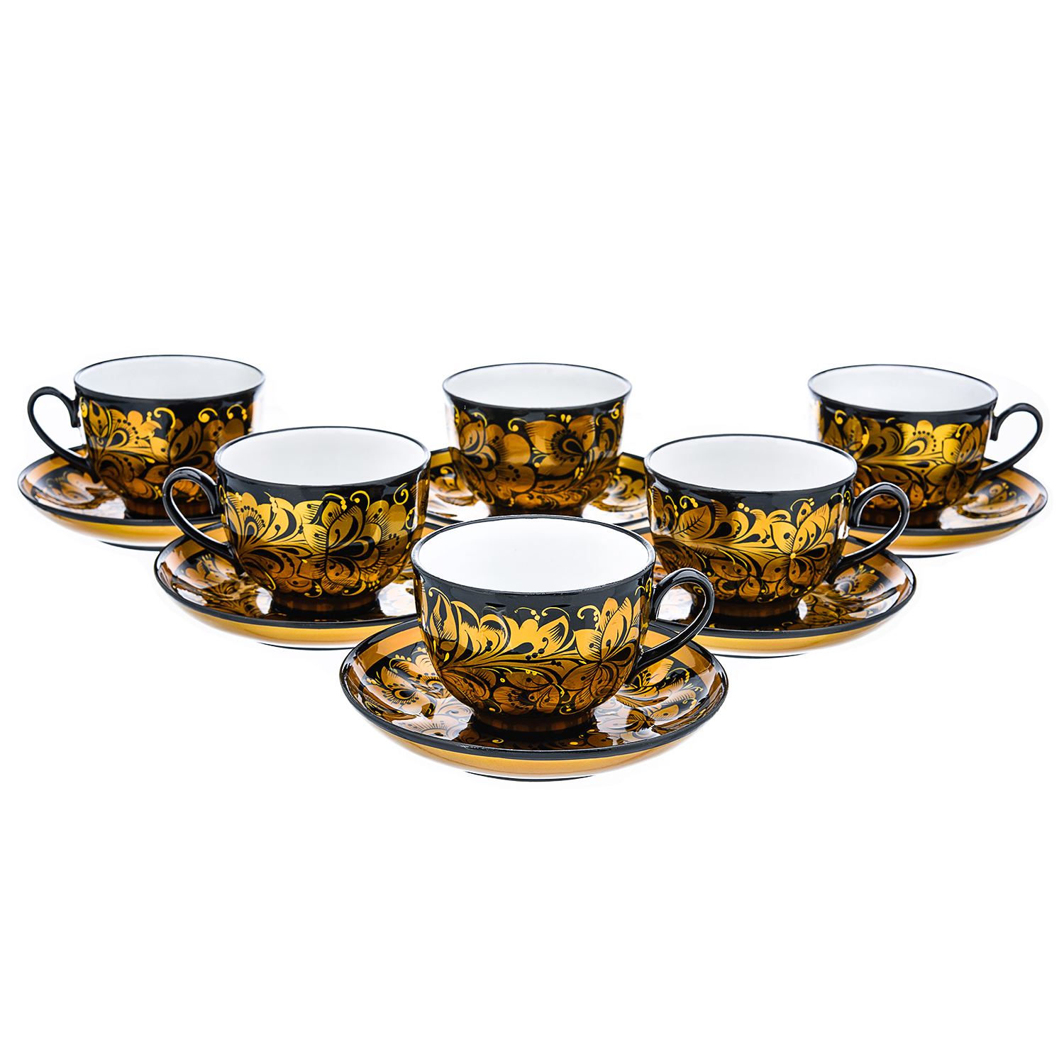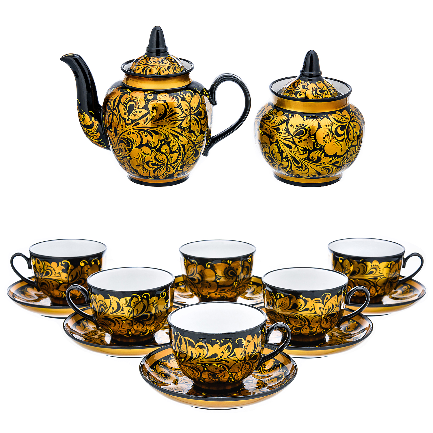 Чайный сервиз на 6 персон "Кудрина". Хохлома