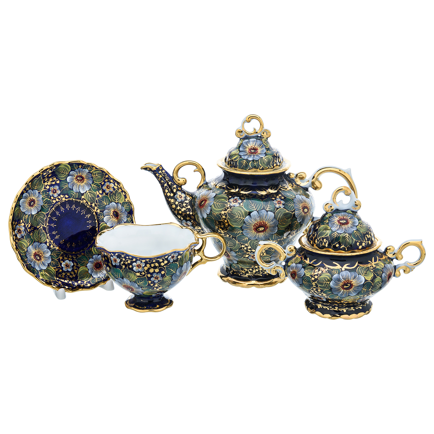Чайный сервиз на 6 персон "Дворцовый. Ромашки". Гжель