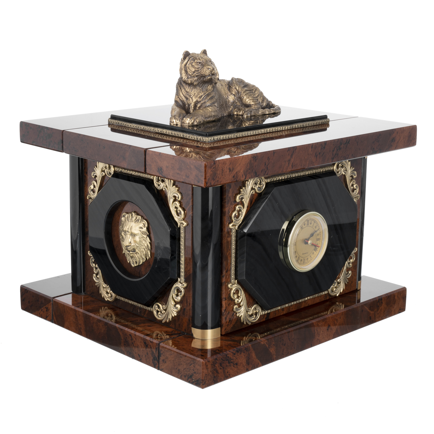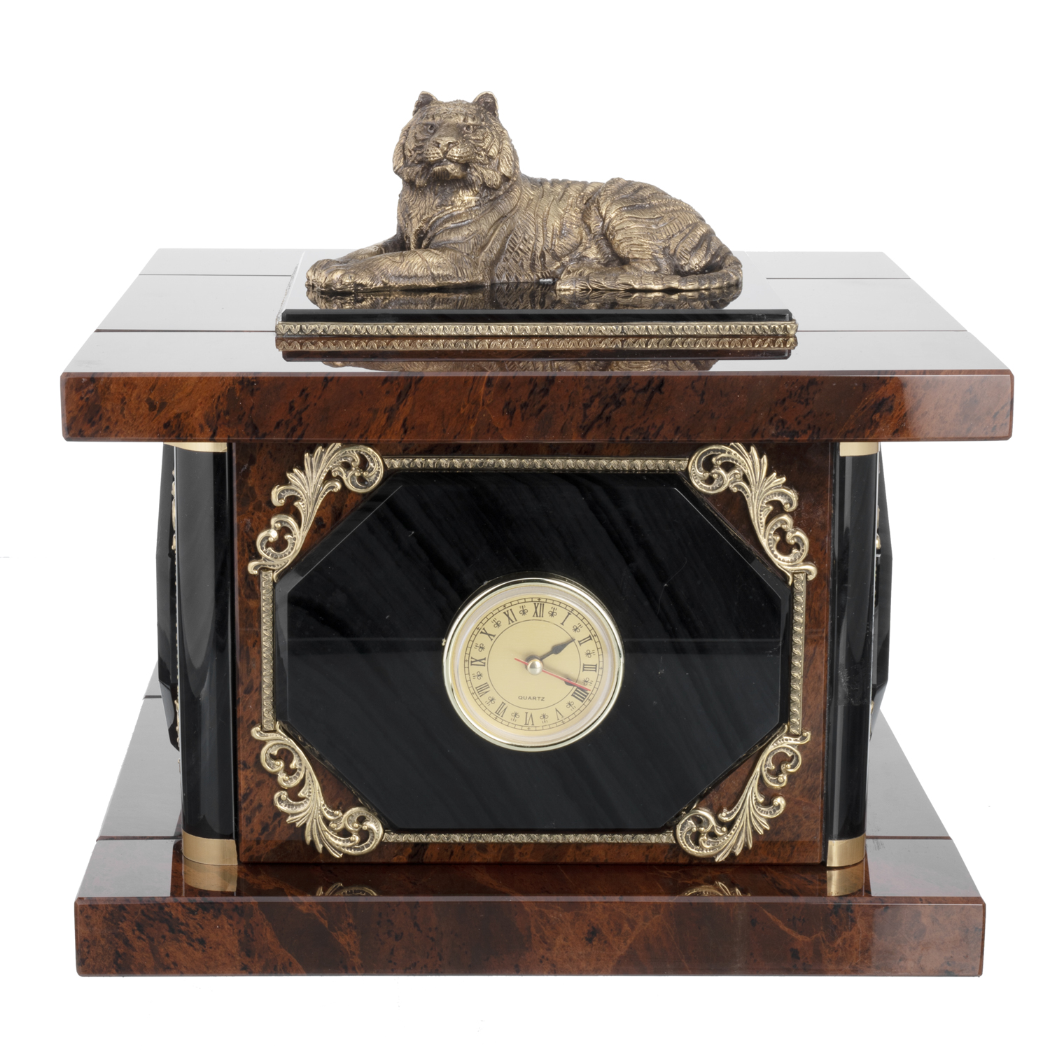Сейф-часы из натурального камня "Тигр".Материалы: обсидиан, бронза, стекло.