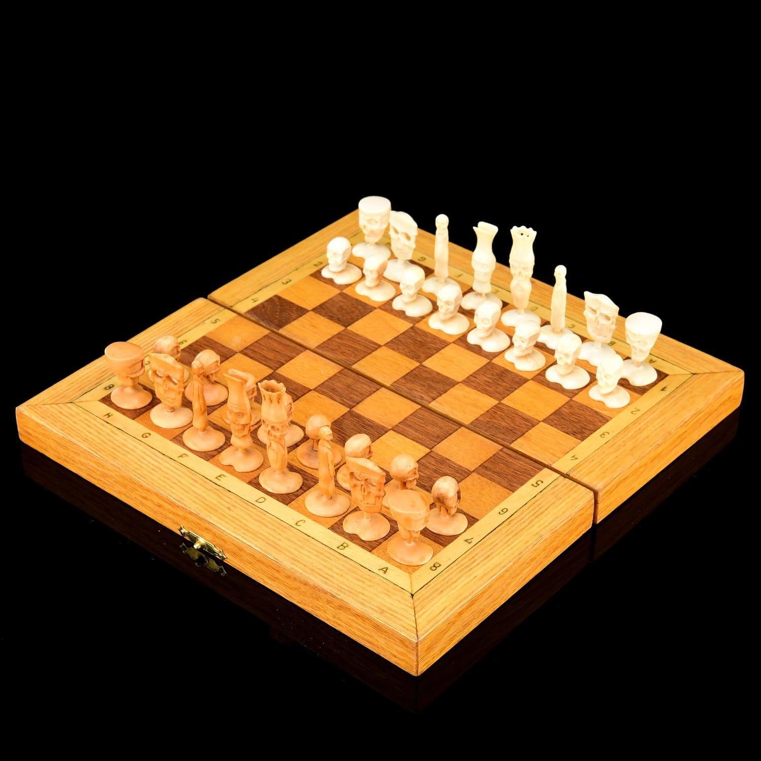 Шахматы деревянные "Жизнь после смерти" с фигурами из бивня мамонта 20,5х20,5 см