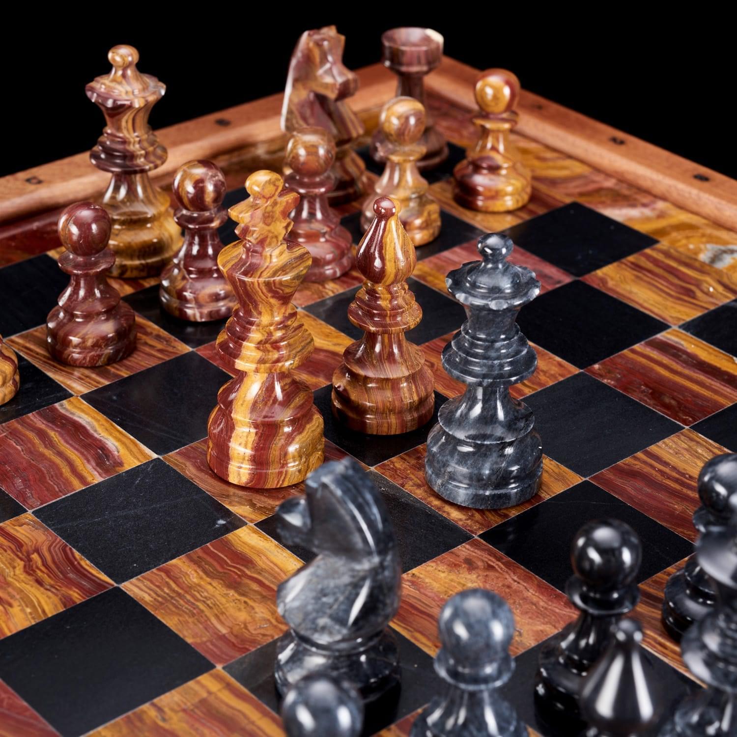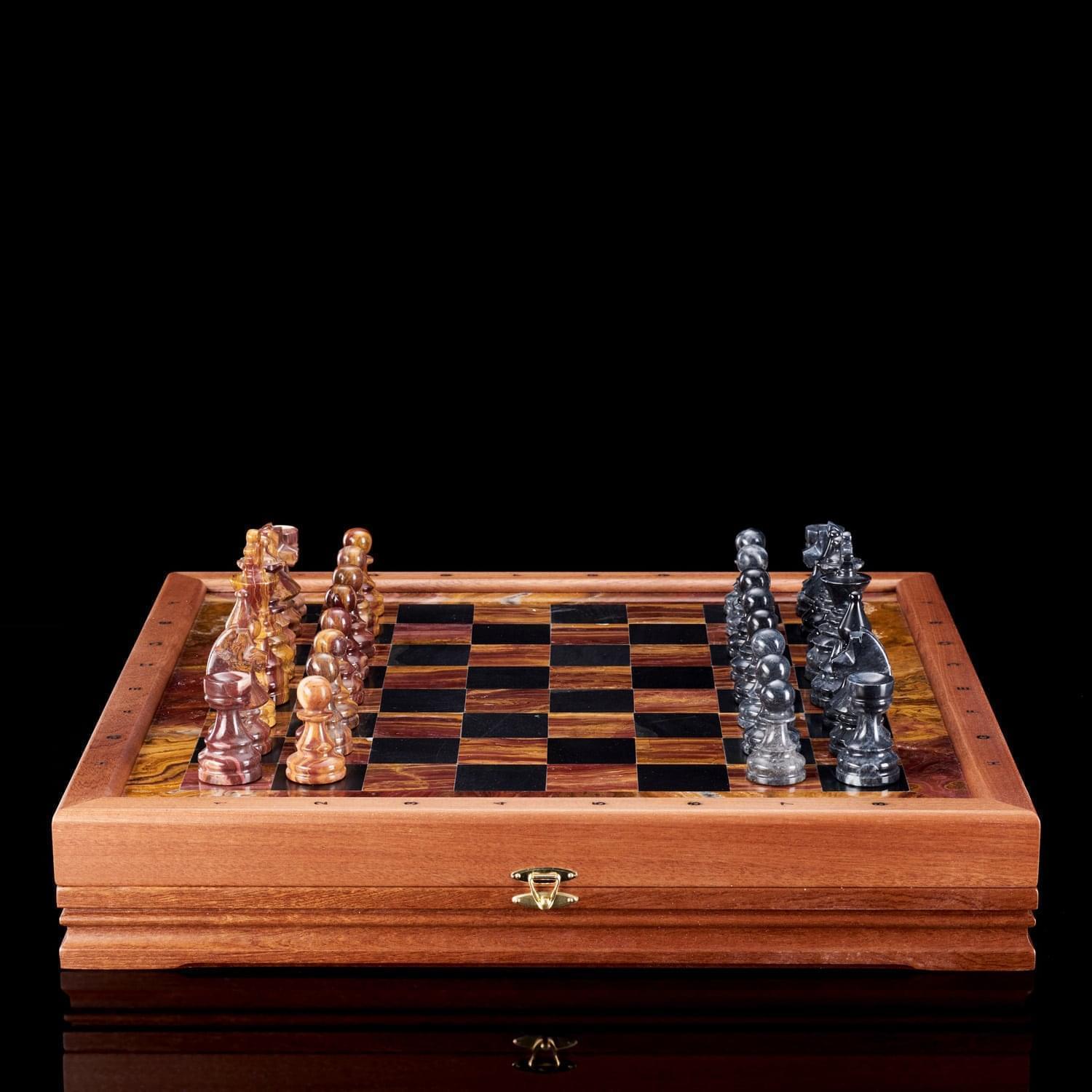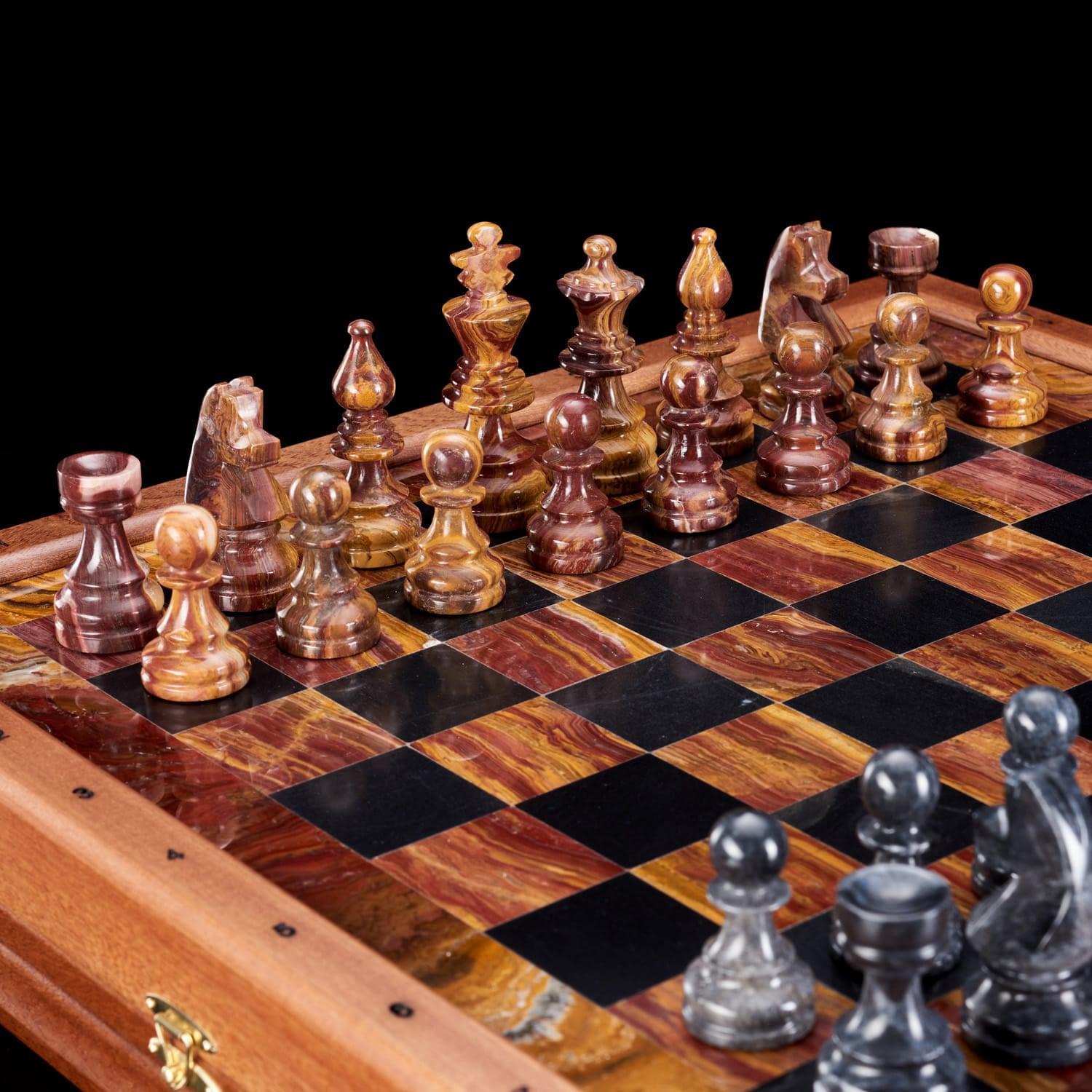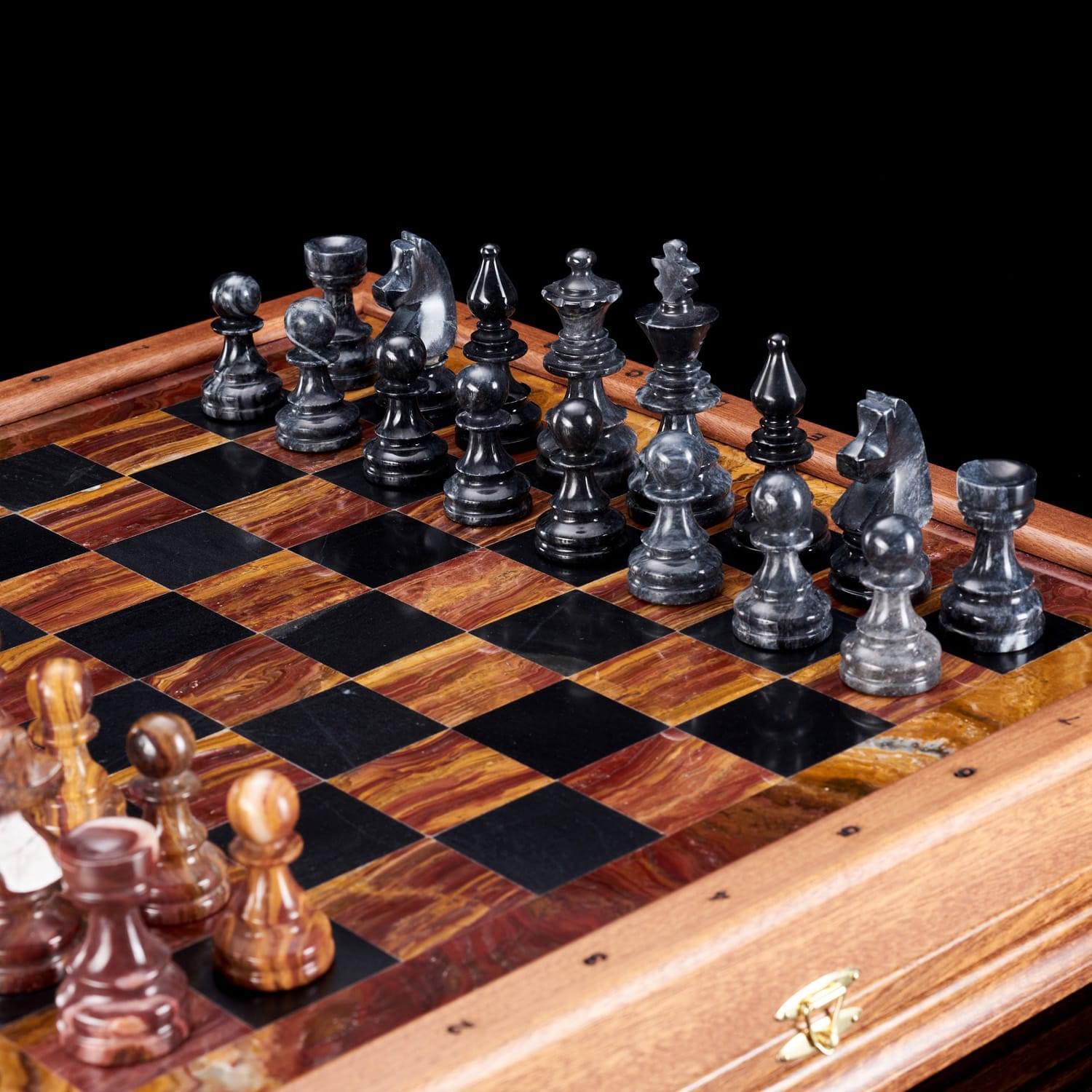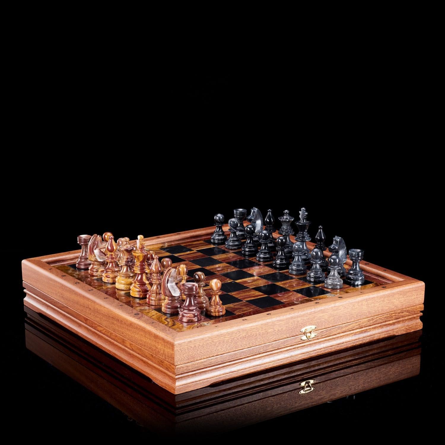 Шахматы деревянные с полем и фигурами из мрамора "Американские" 43х43 см