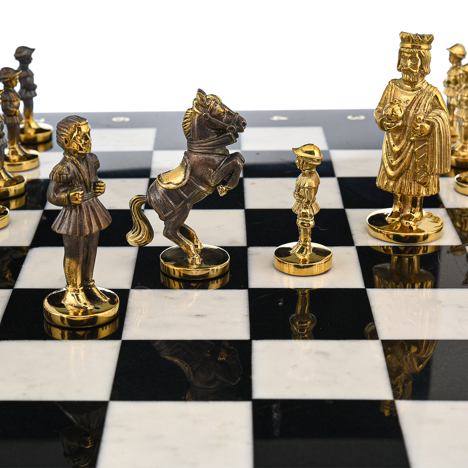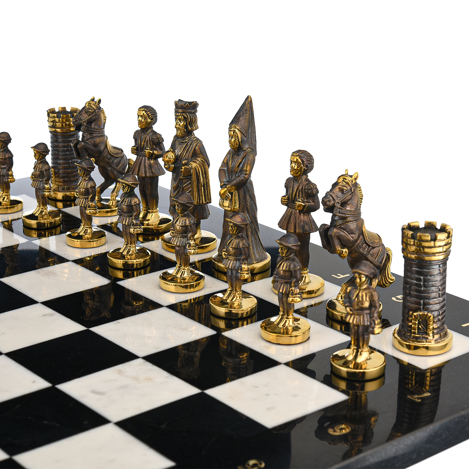 Шахматы из натурального камня "Камелот".Материалы: змеевик, мрамор, бронза. .