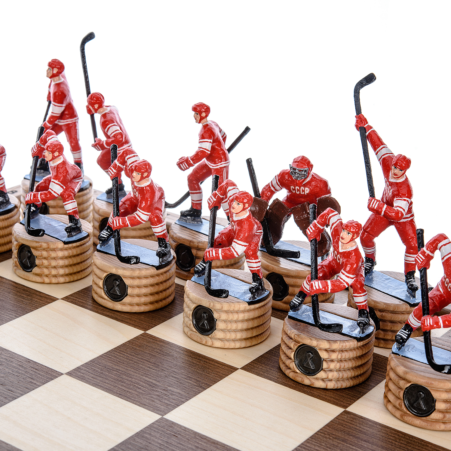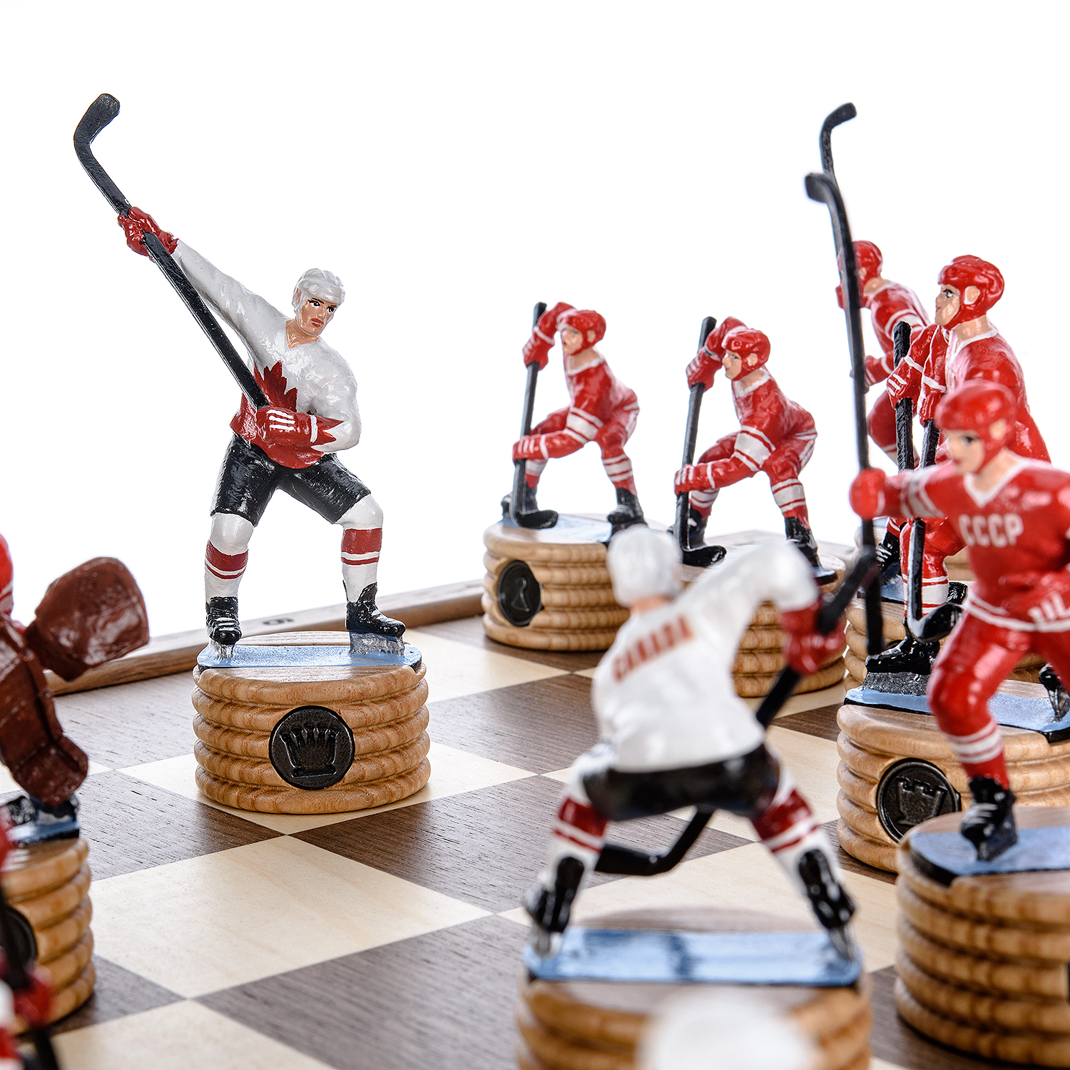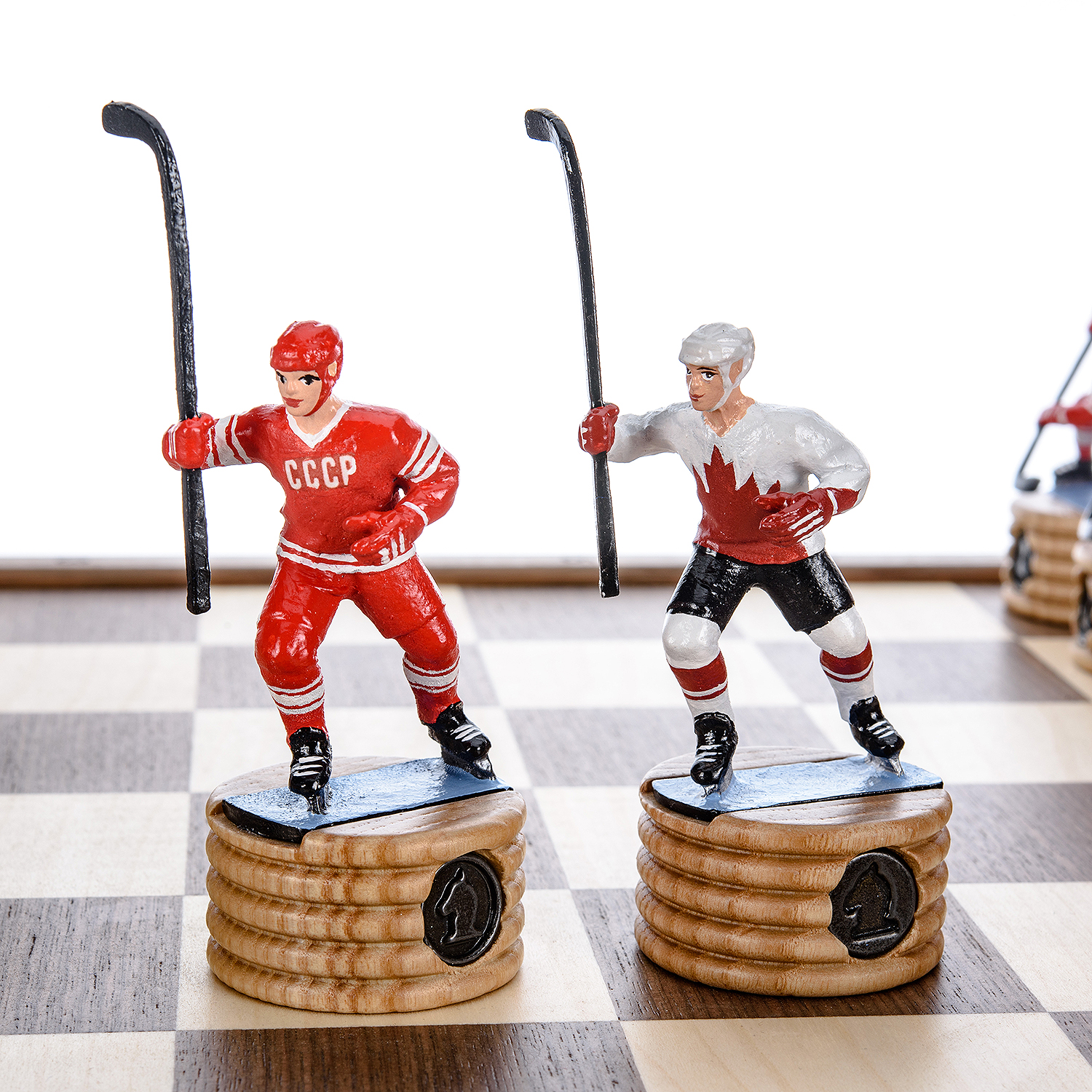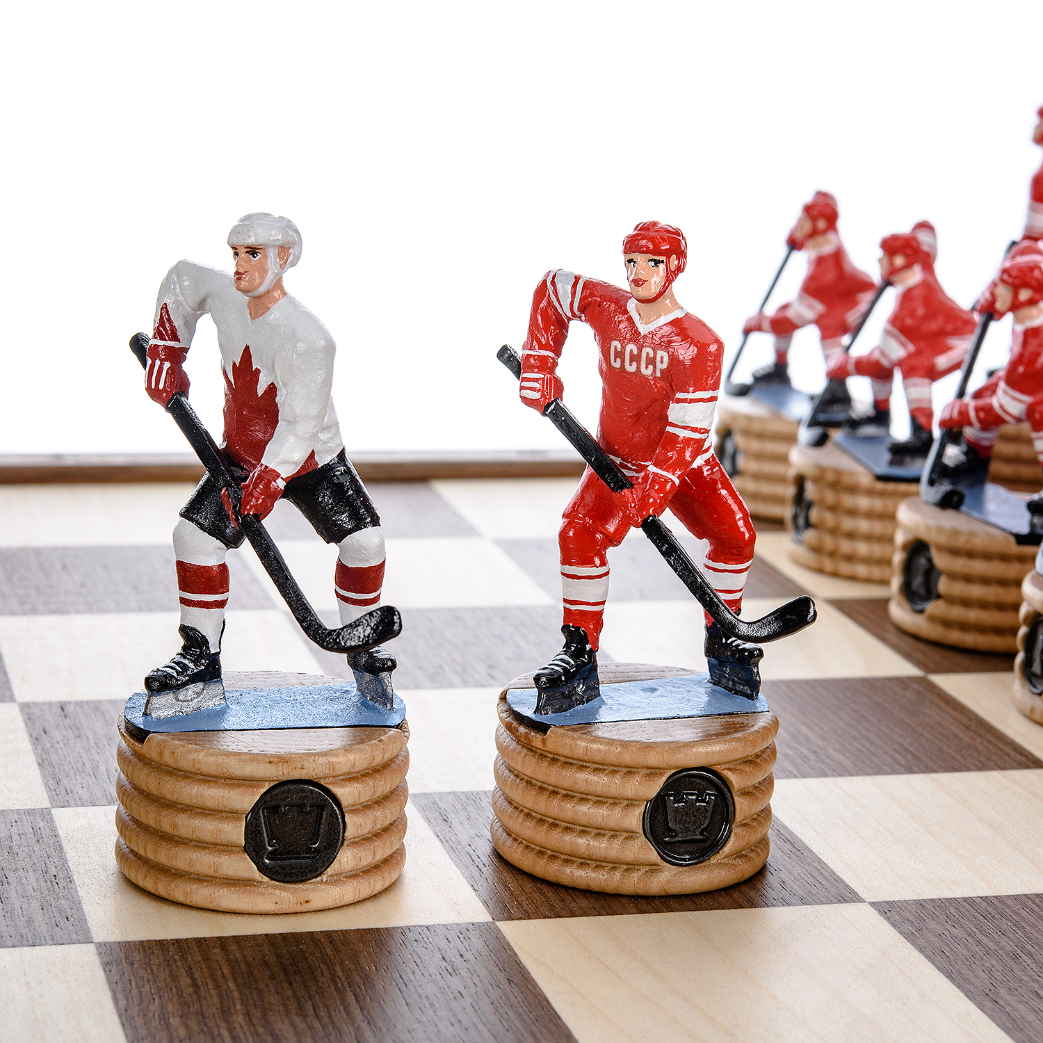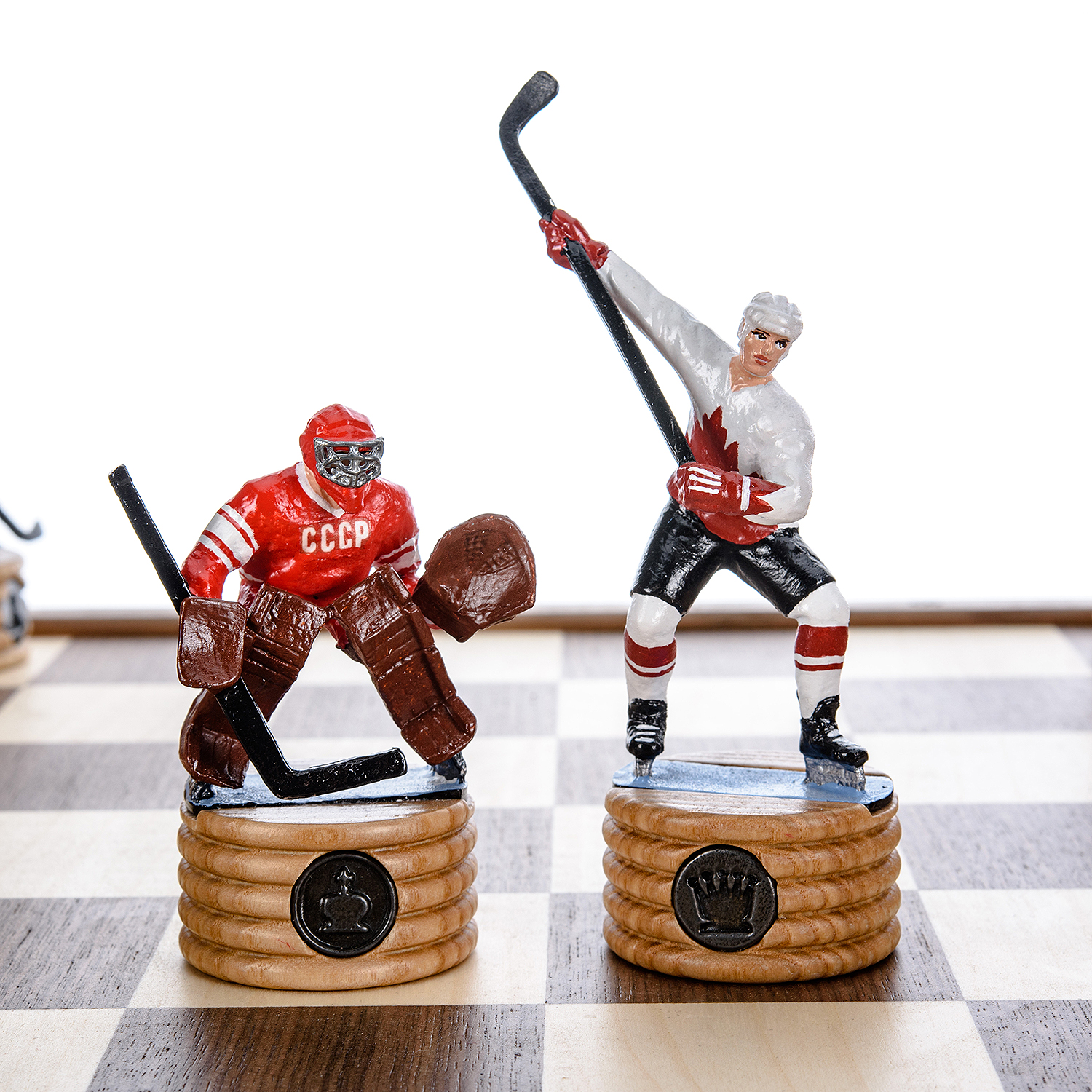 Шахматы деревянные с металлическими фигурами "Хоккей. СССР-Канада" 50х50 см