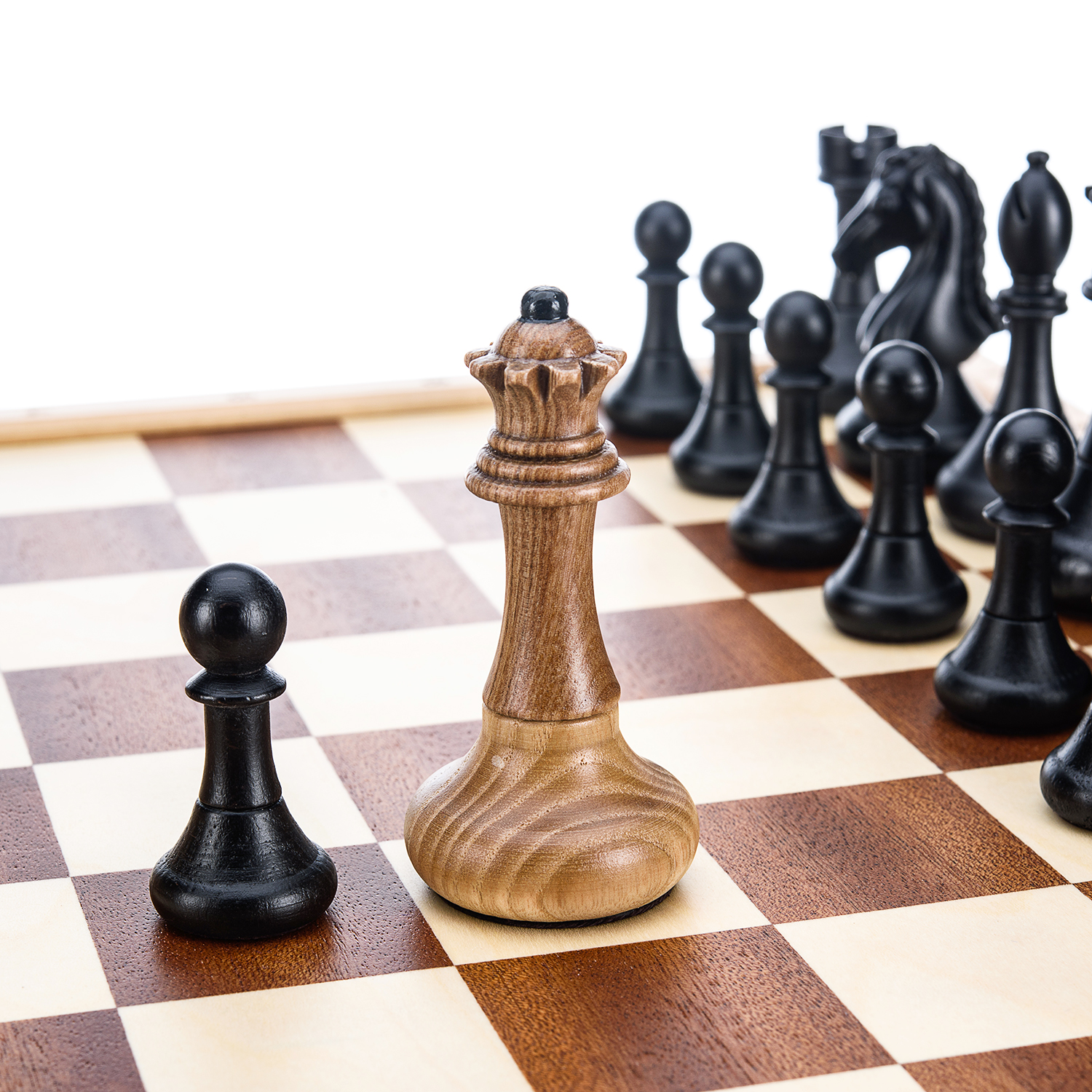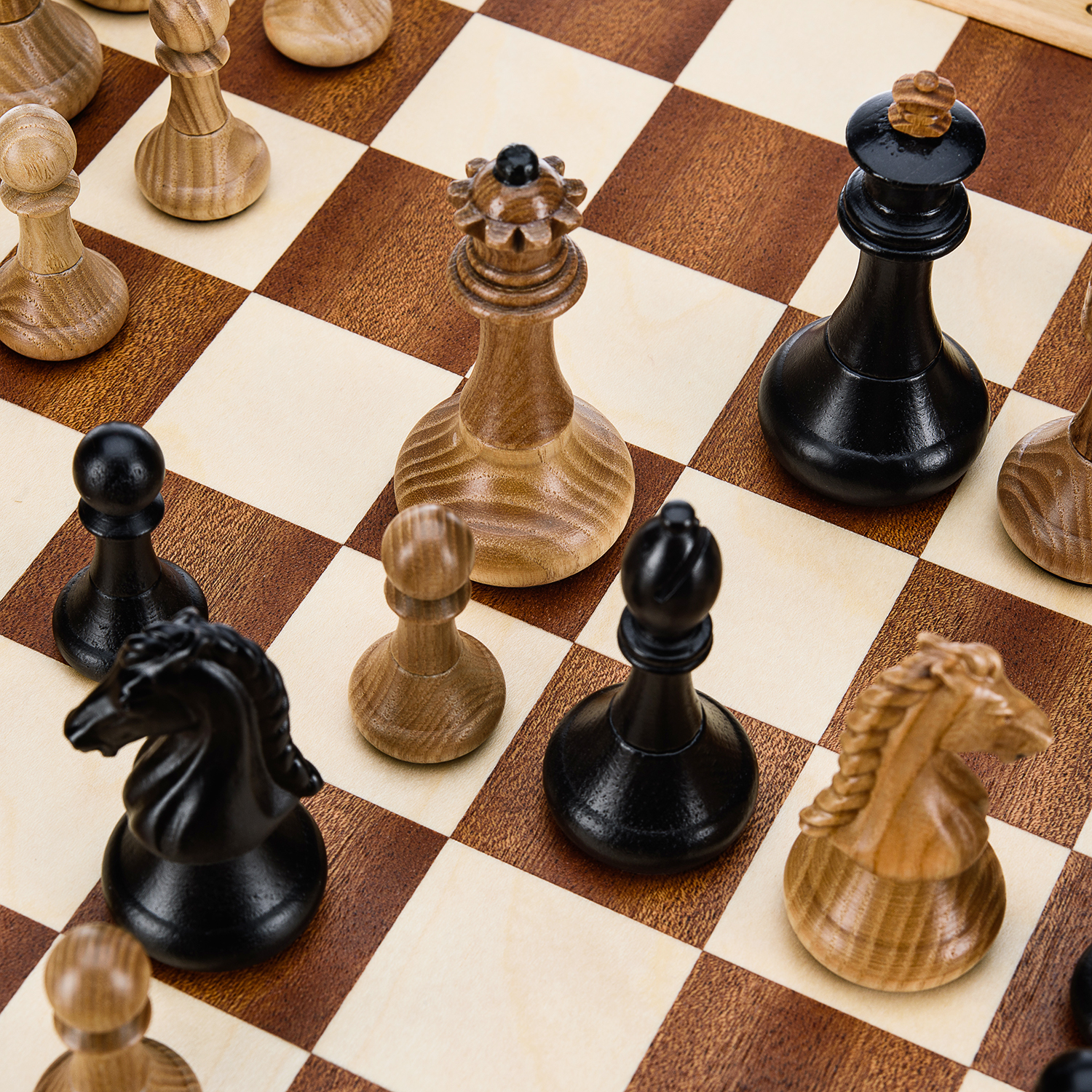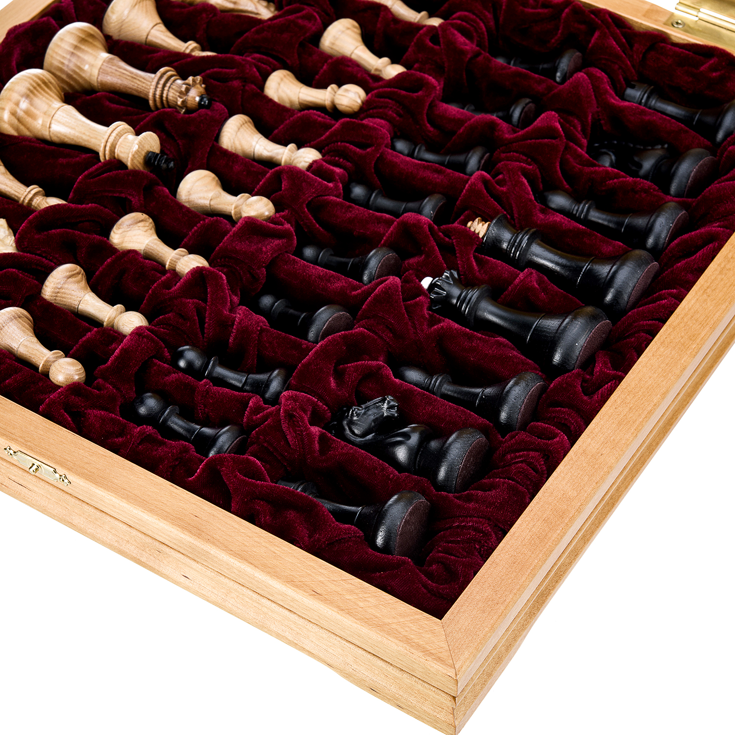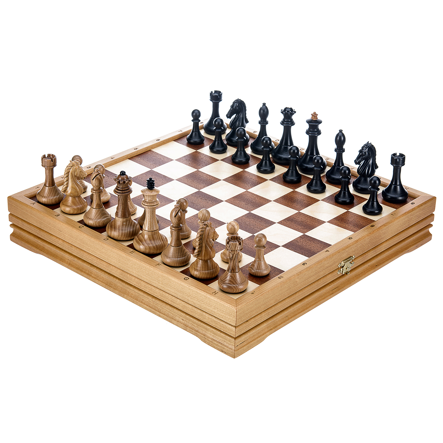 Шахматный ларец с деревянными фигурами.Материалы: ясень, бук, береза.