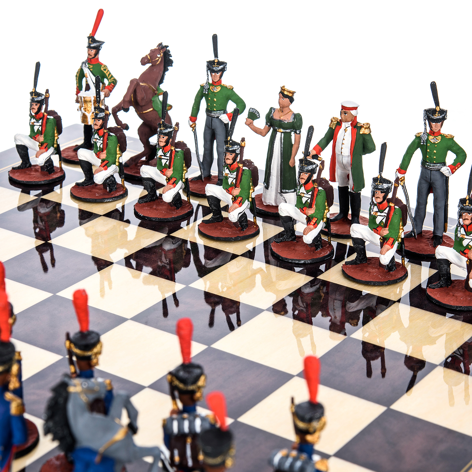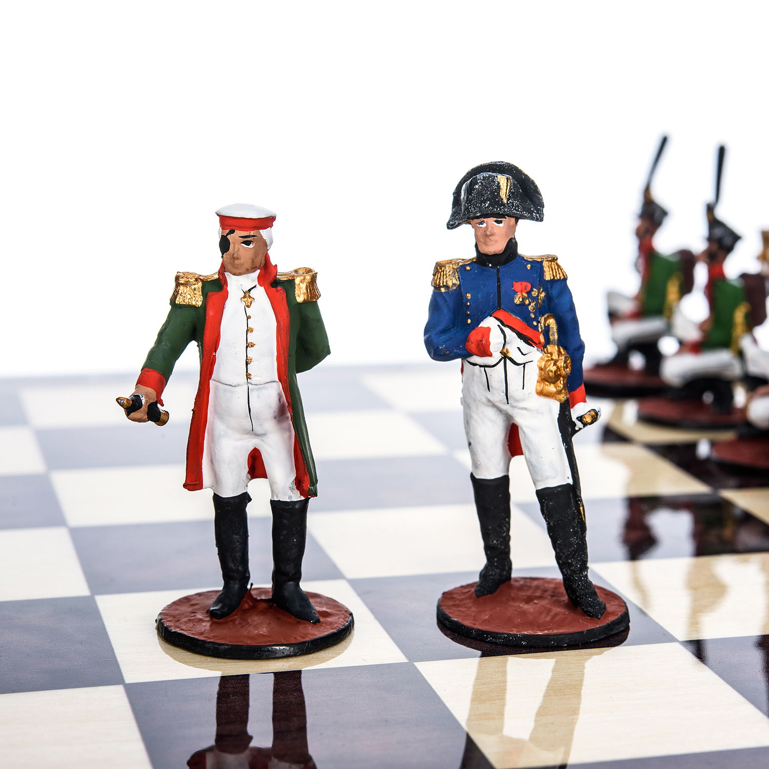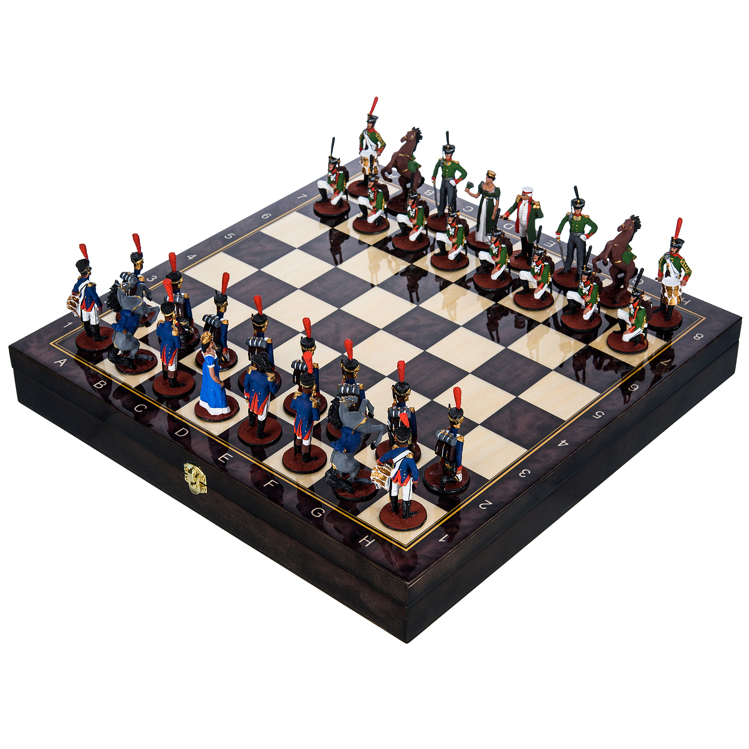 Шахматный ларец с оловянными фигурами "Бородино" 37х37 см