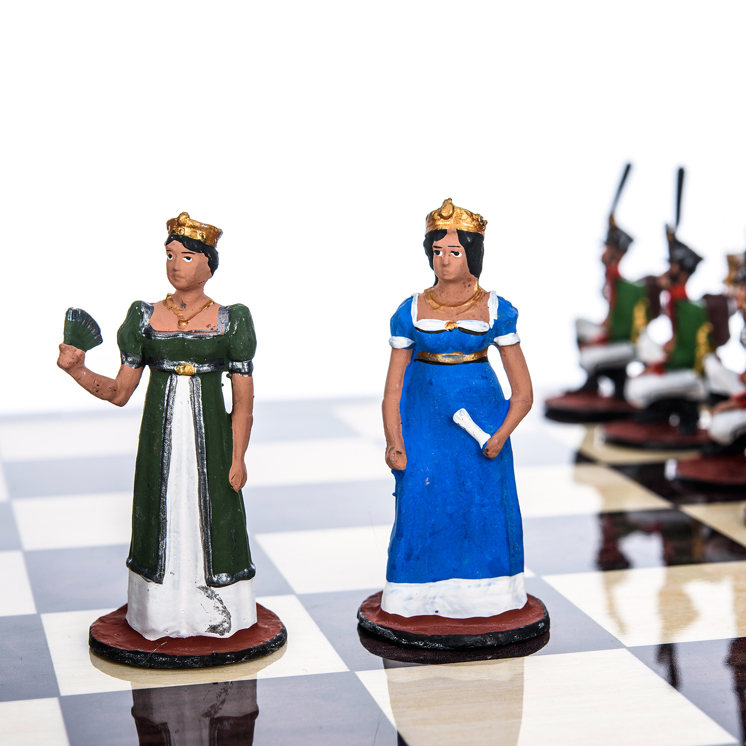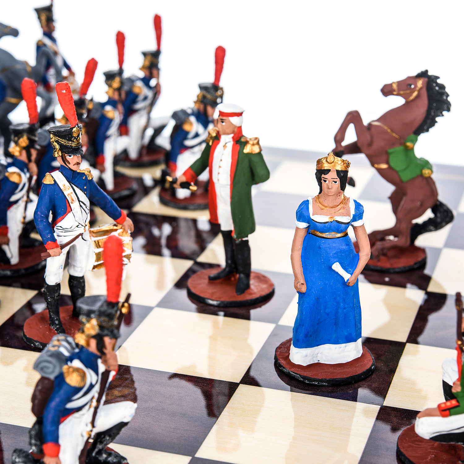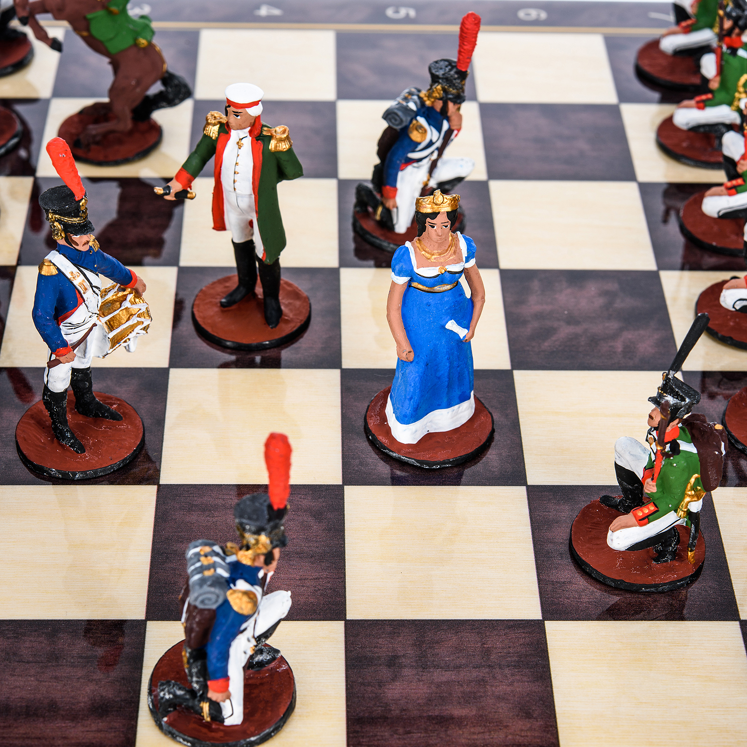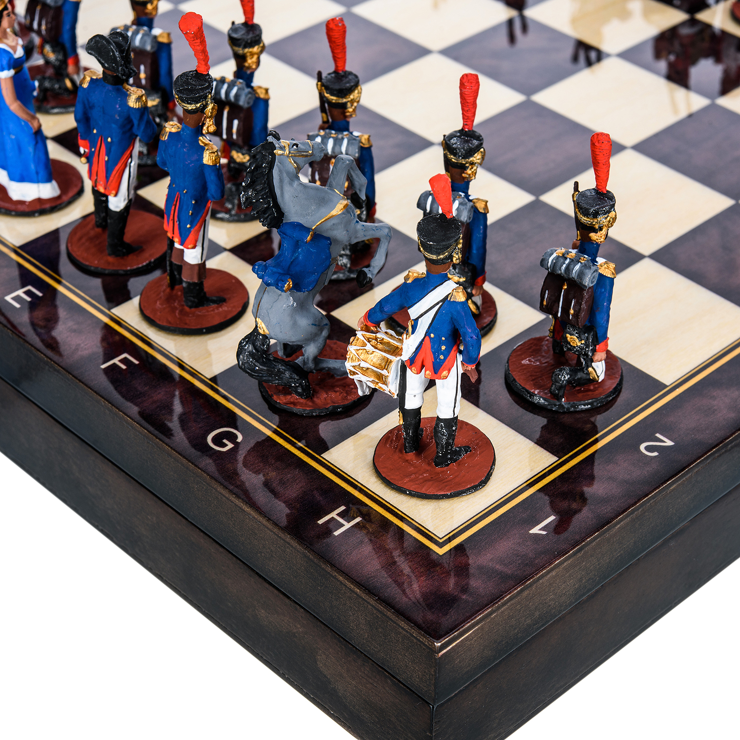 Шахматный ларец с оловянными фигурами "Бородино" 37х37 см