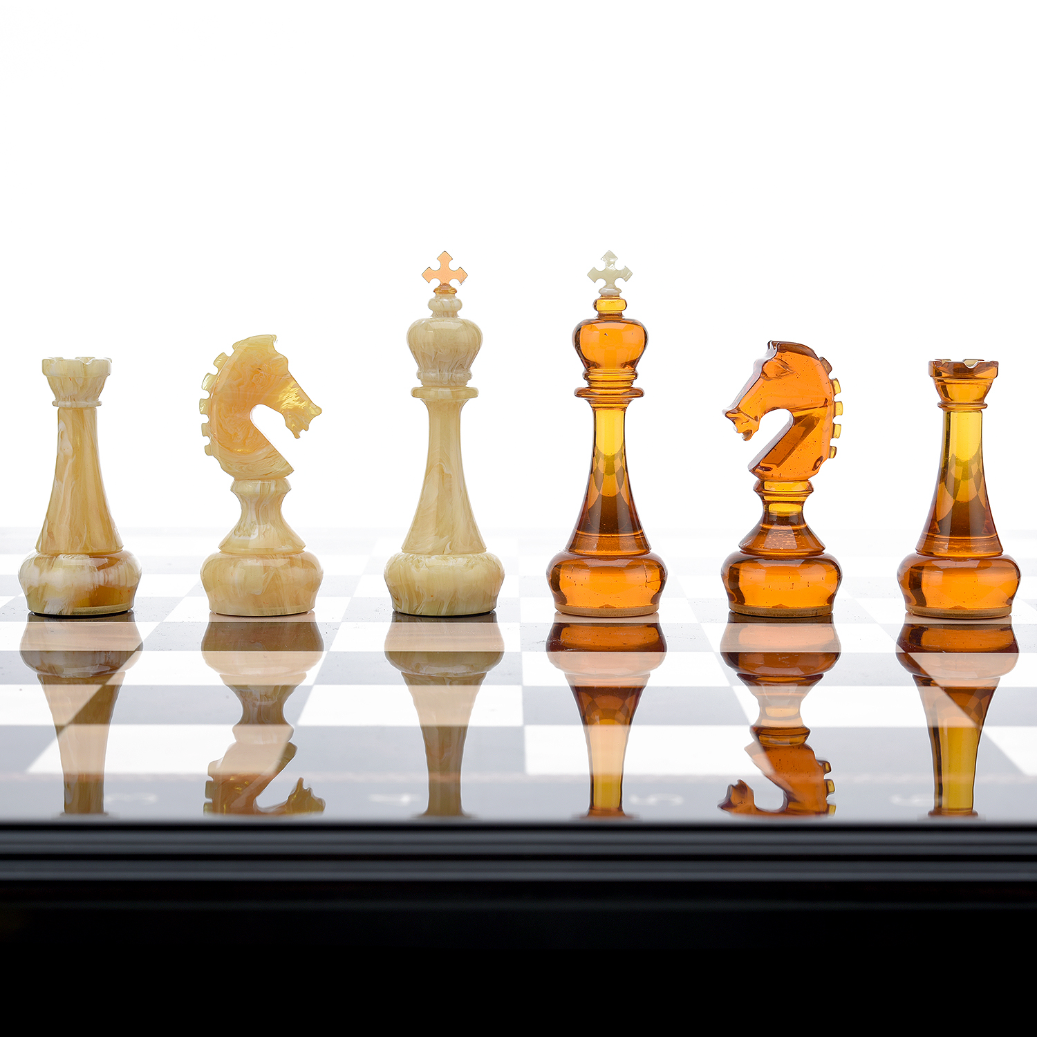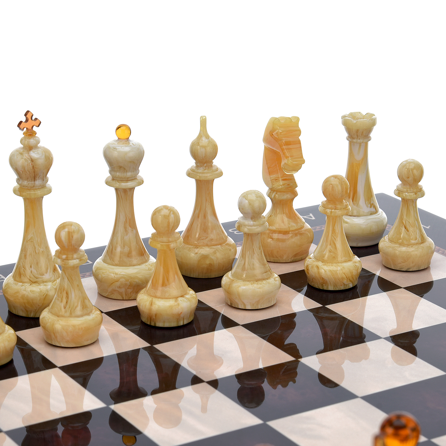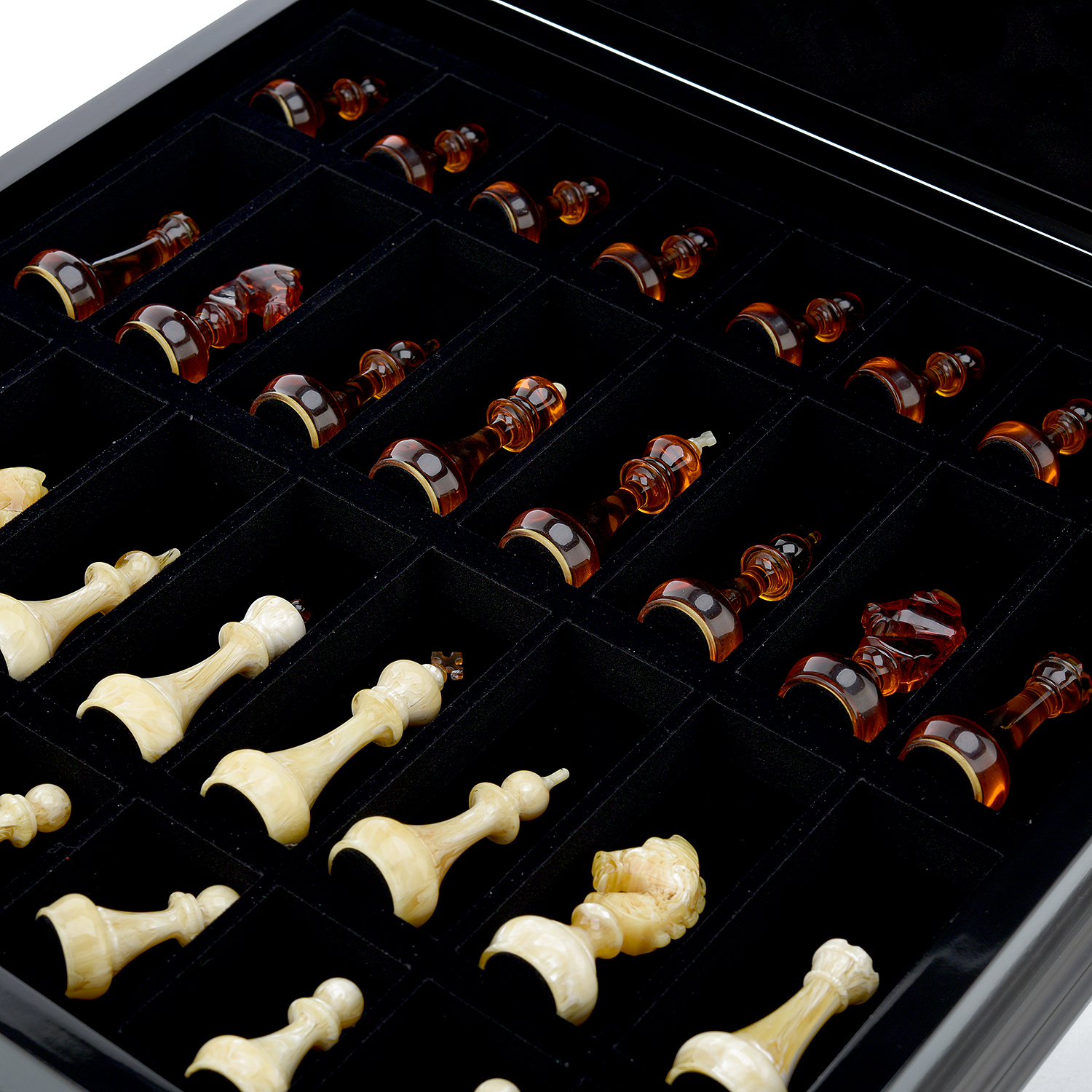 Наши эксклюзивные шахматы - это не просто потоковая продукция, а произведение искусства, в разработке которого мы учитываем не только внешнюю красоту, но и функциональность, а фигуры из драгоценного балтийского янтаря определенно добавляют дорогому шахматному набору элитарности, делая его неповторимым и элегантным.