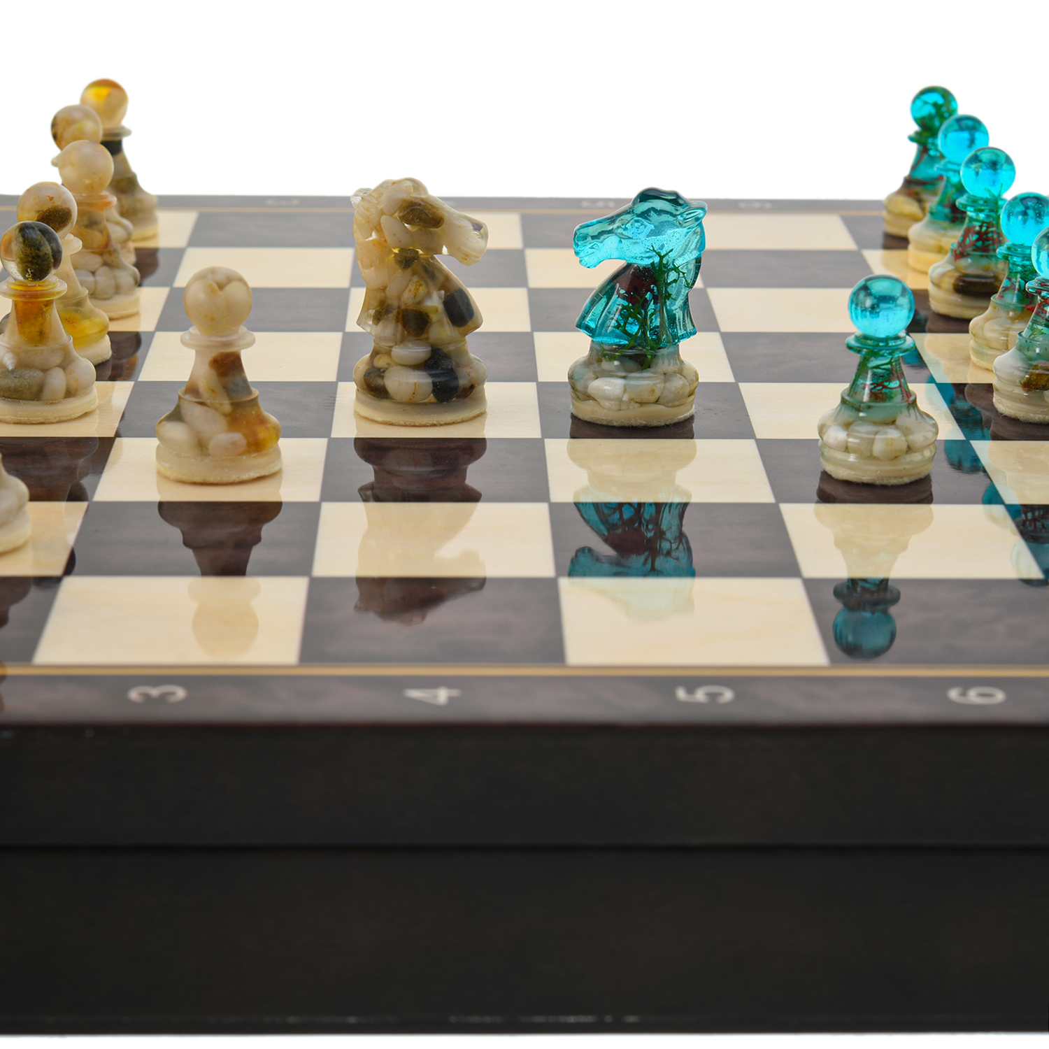 Шахматы "Морские".Материалы: дерево, полиэфирная смола.