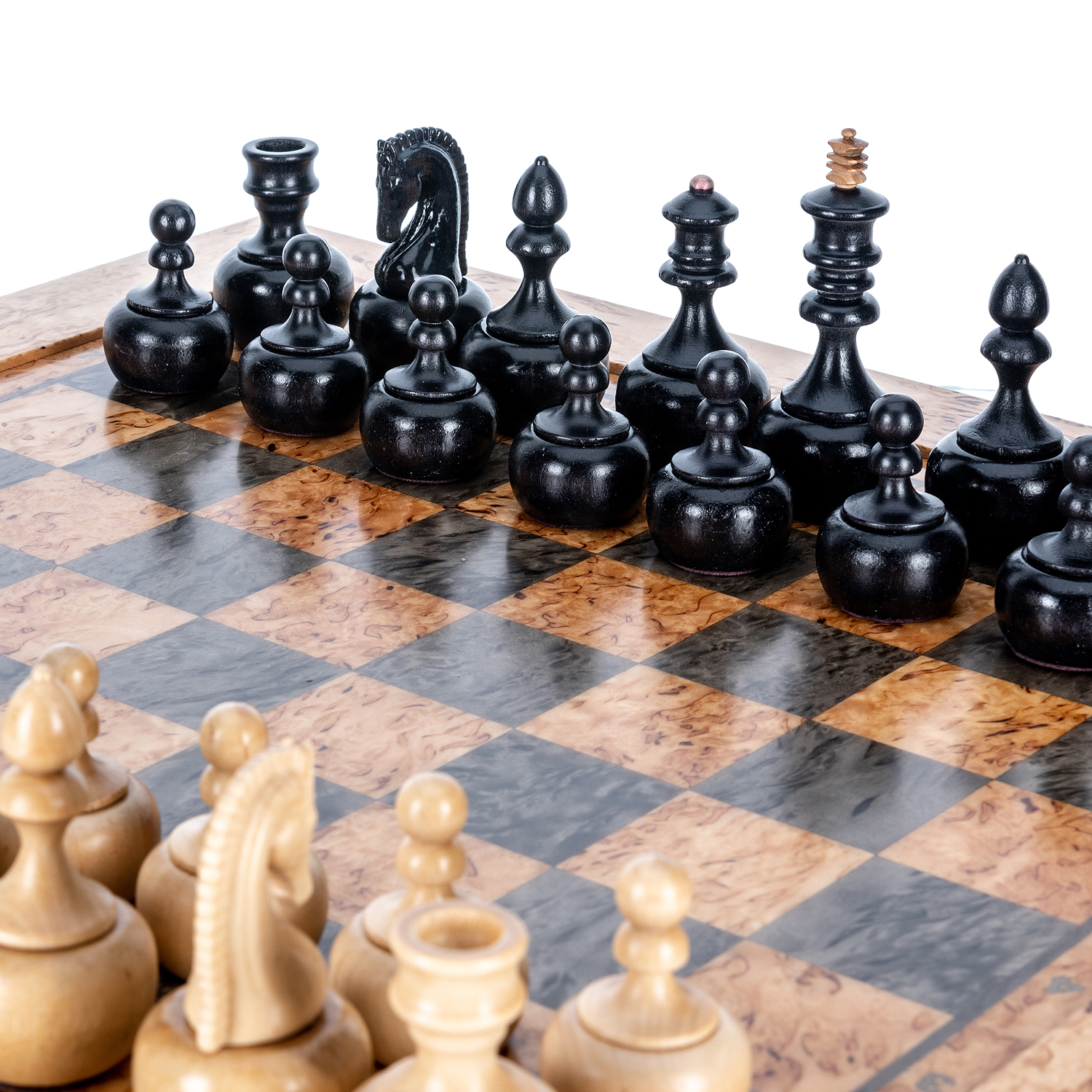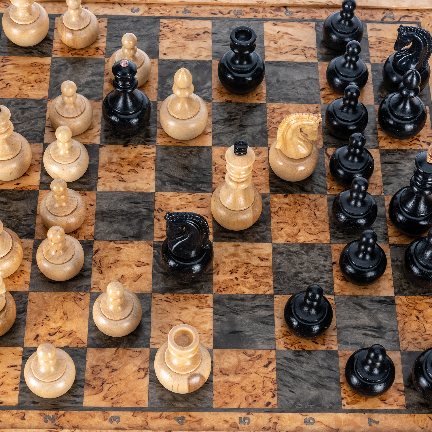 Шахматы из карельской березы с деревянными фигурами "Непобедимые" 45х45 см
