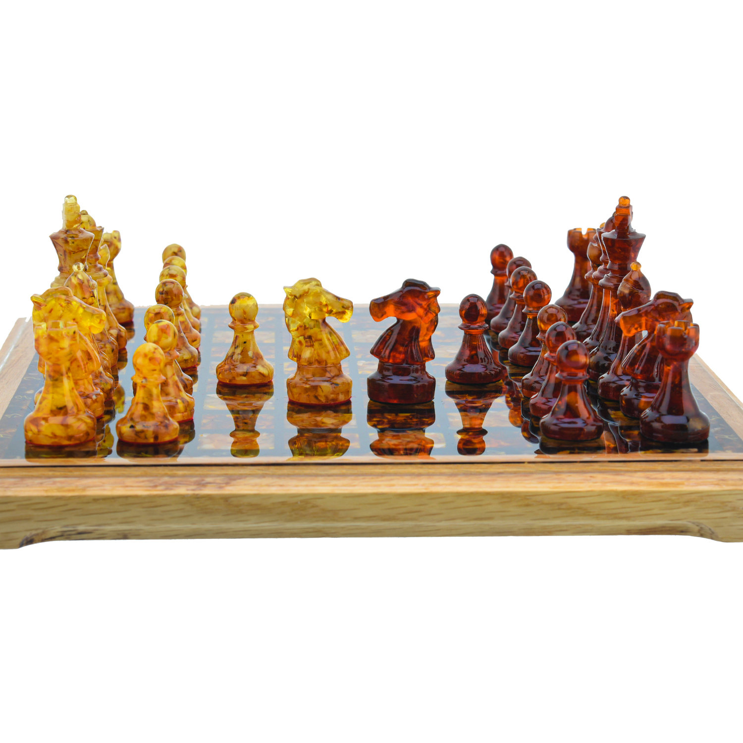Шахматы с янтарными фигурами 28х28 см