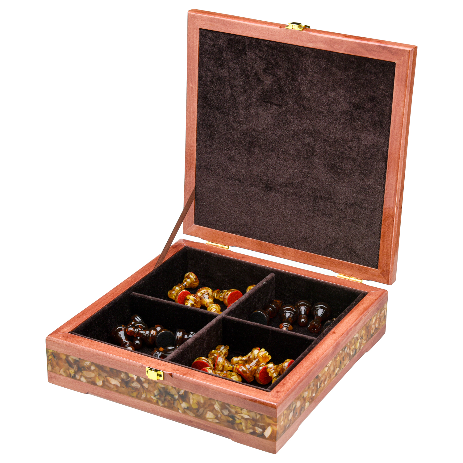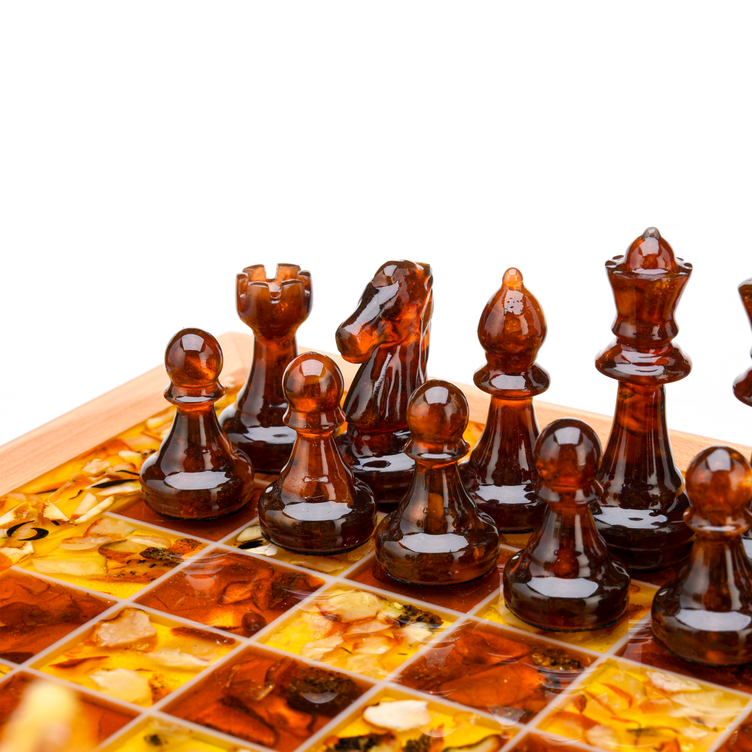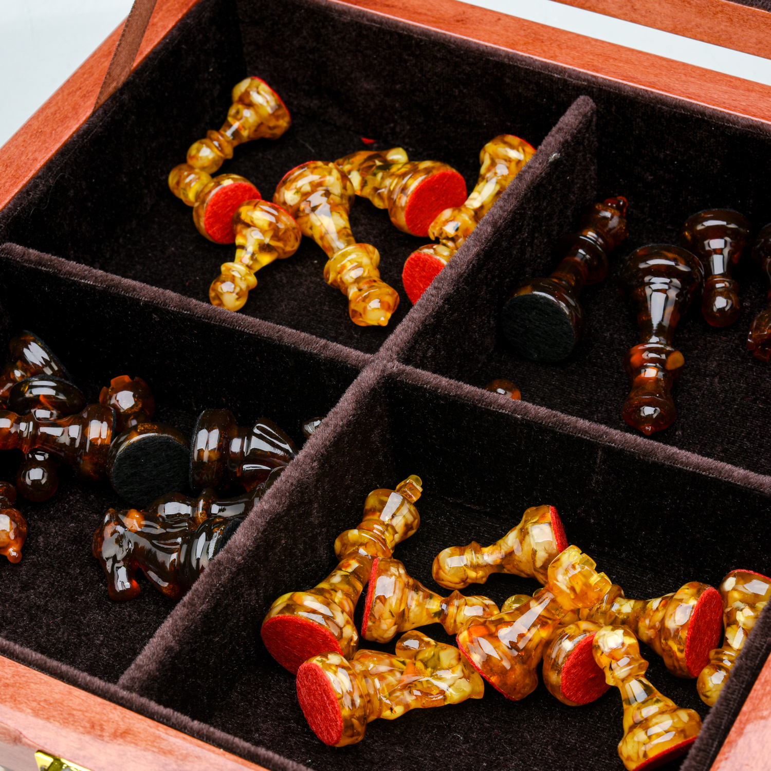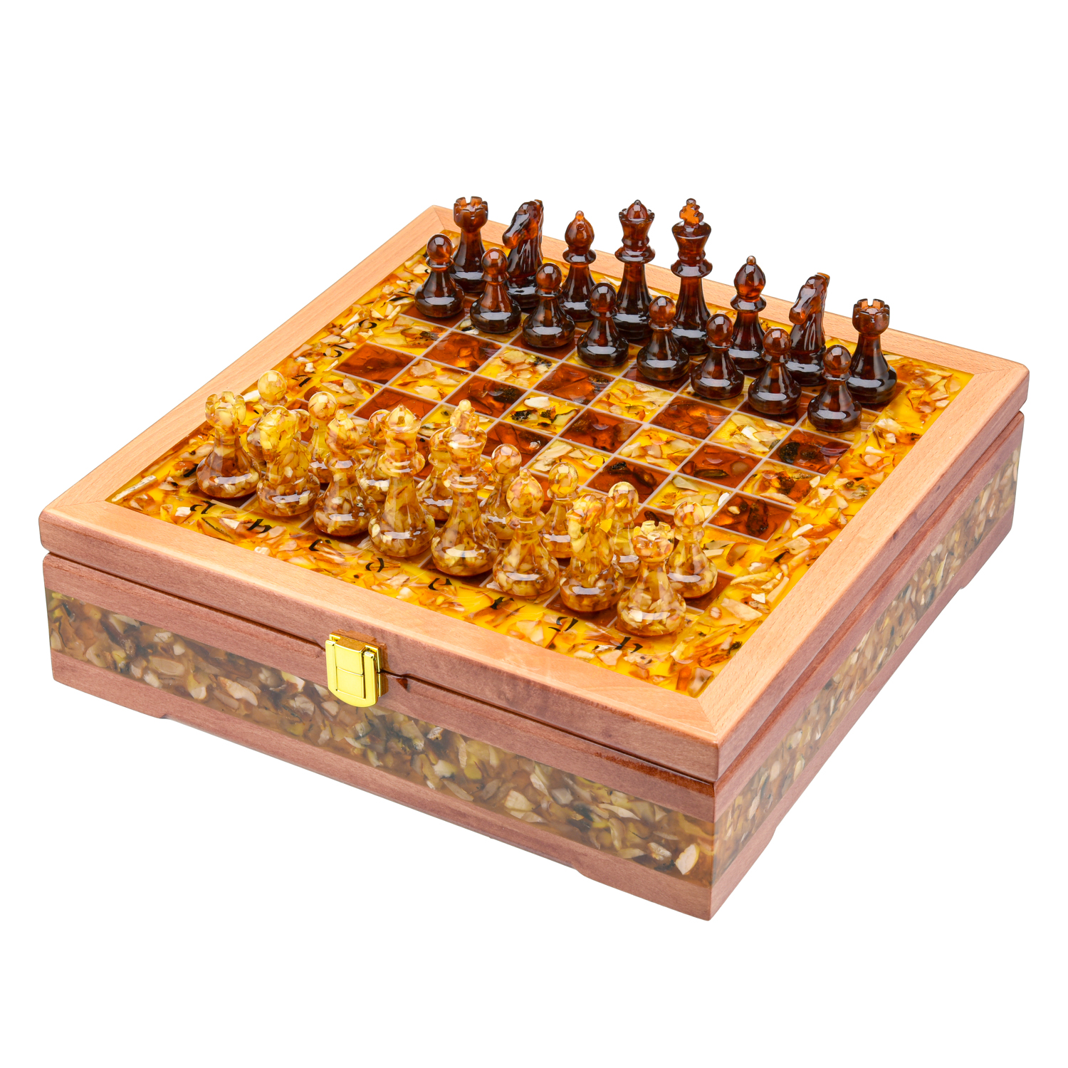 Шахматы с инкрустацией и фигурами из янтаря 28х28 см