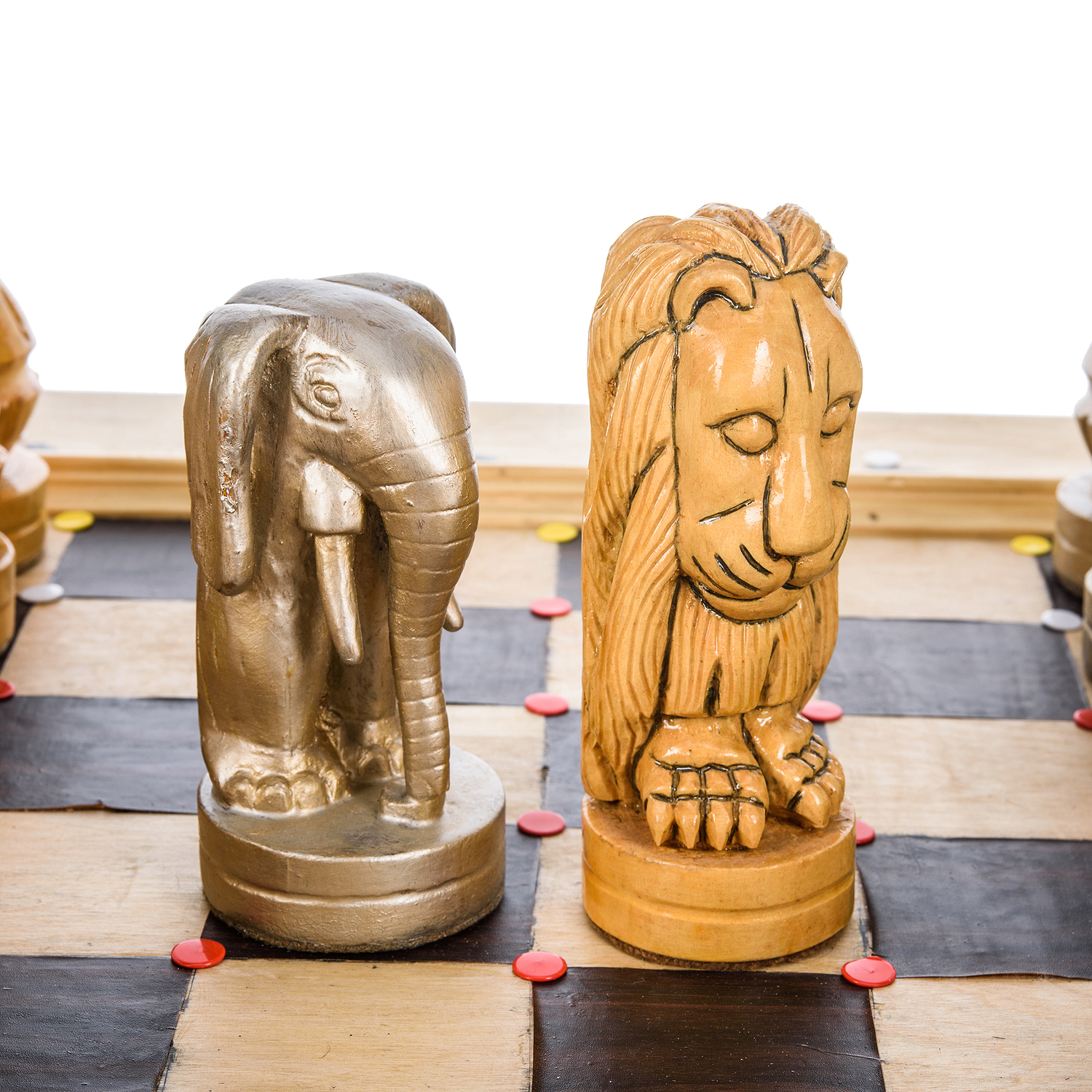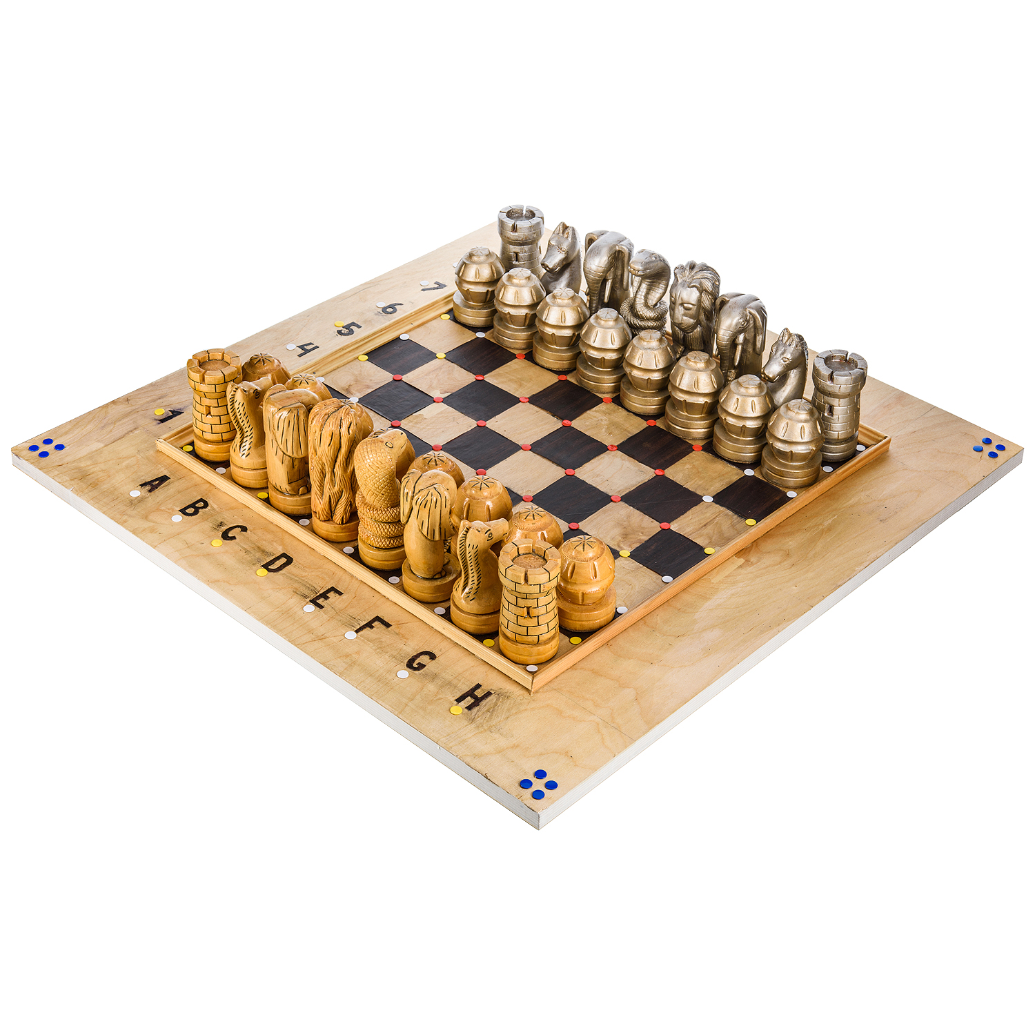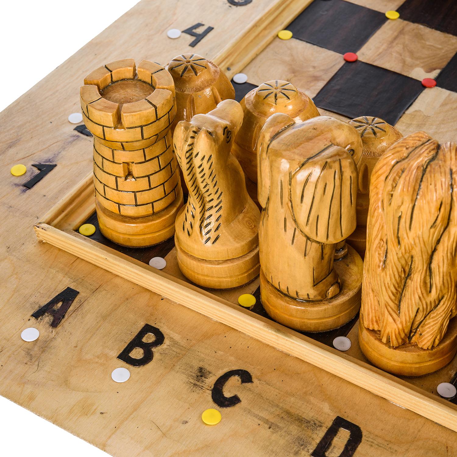 Эксклюзивные большие деревянные шахматы ручной работы "Животный мир" 76х76 см