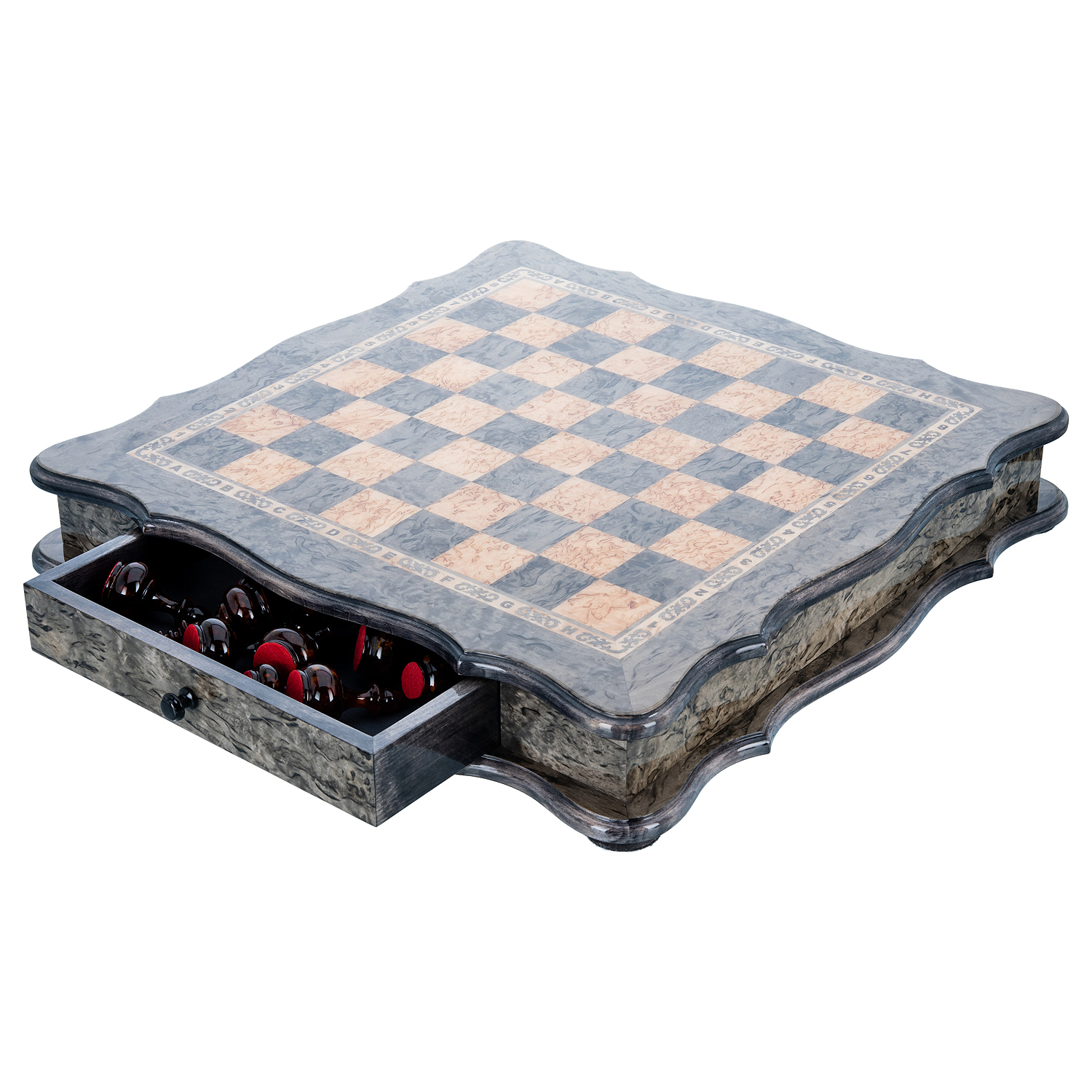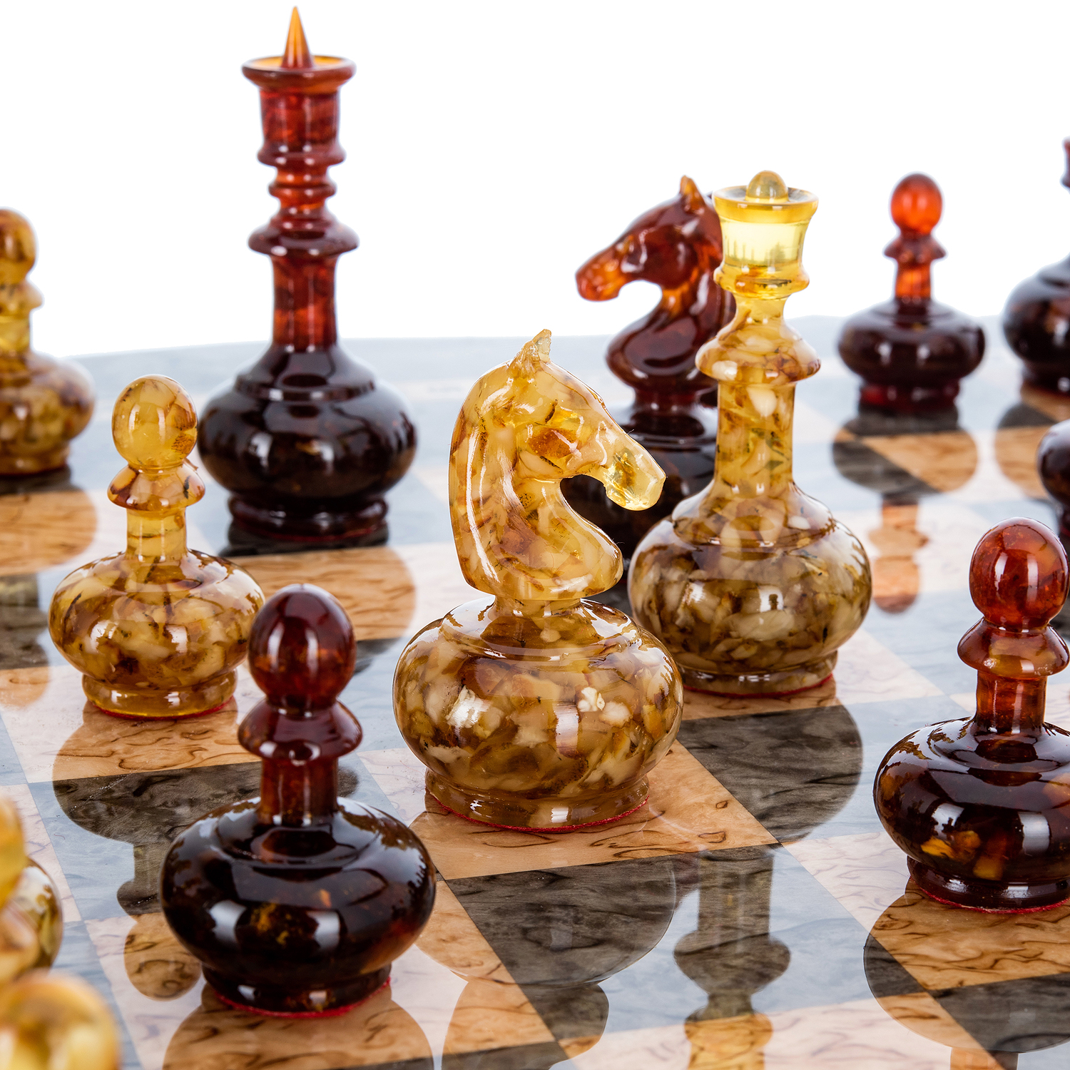 Шахматы из карельской березы с металлическими фигурами 45х45 см