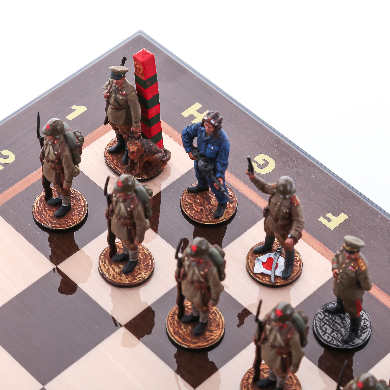 Деревянные шахматы с оловянными фигурами "Великая Отечественная Война".
