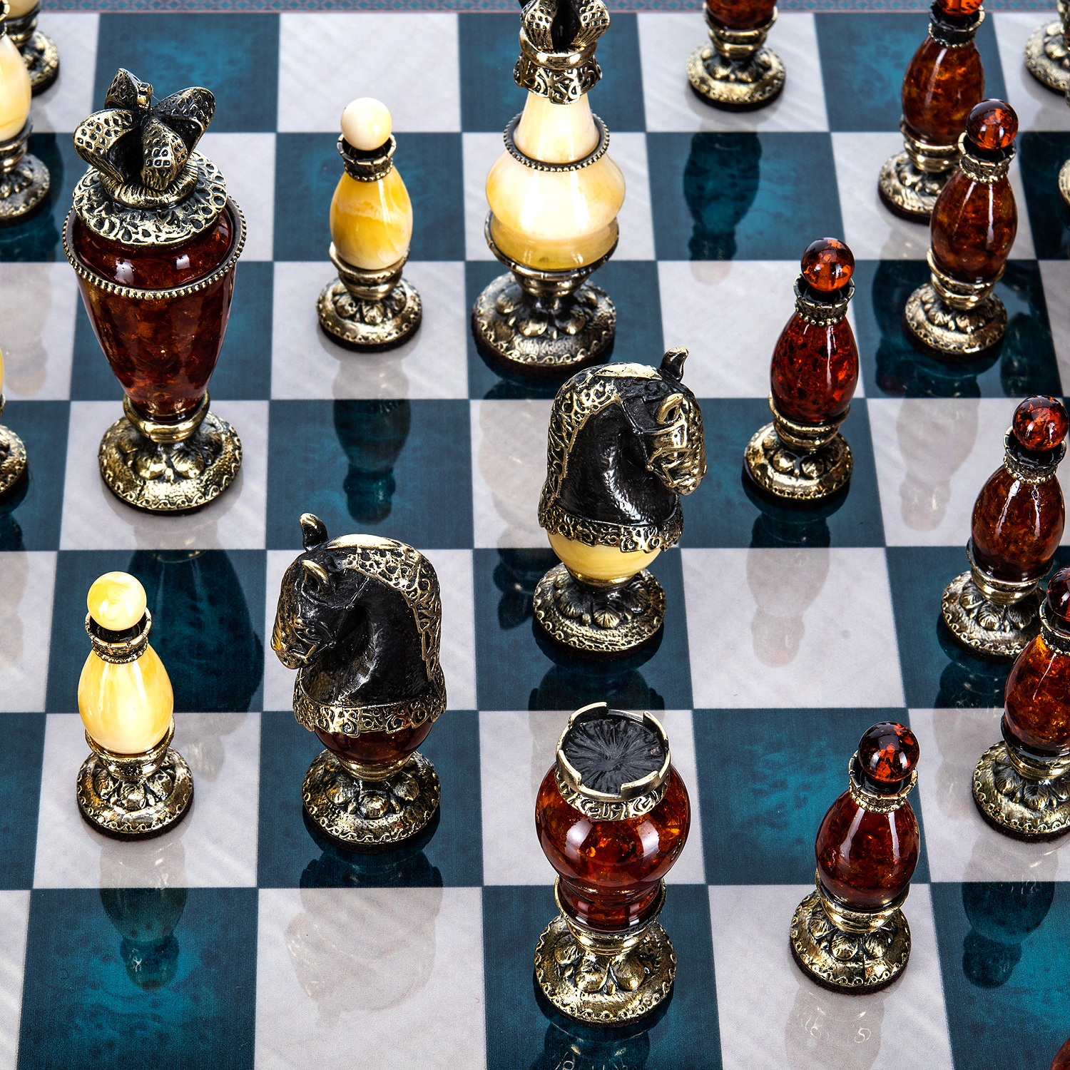 Шахматы с янтарными фигурами "Рыцарский турнир" 48х48 см