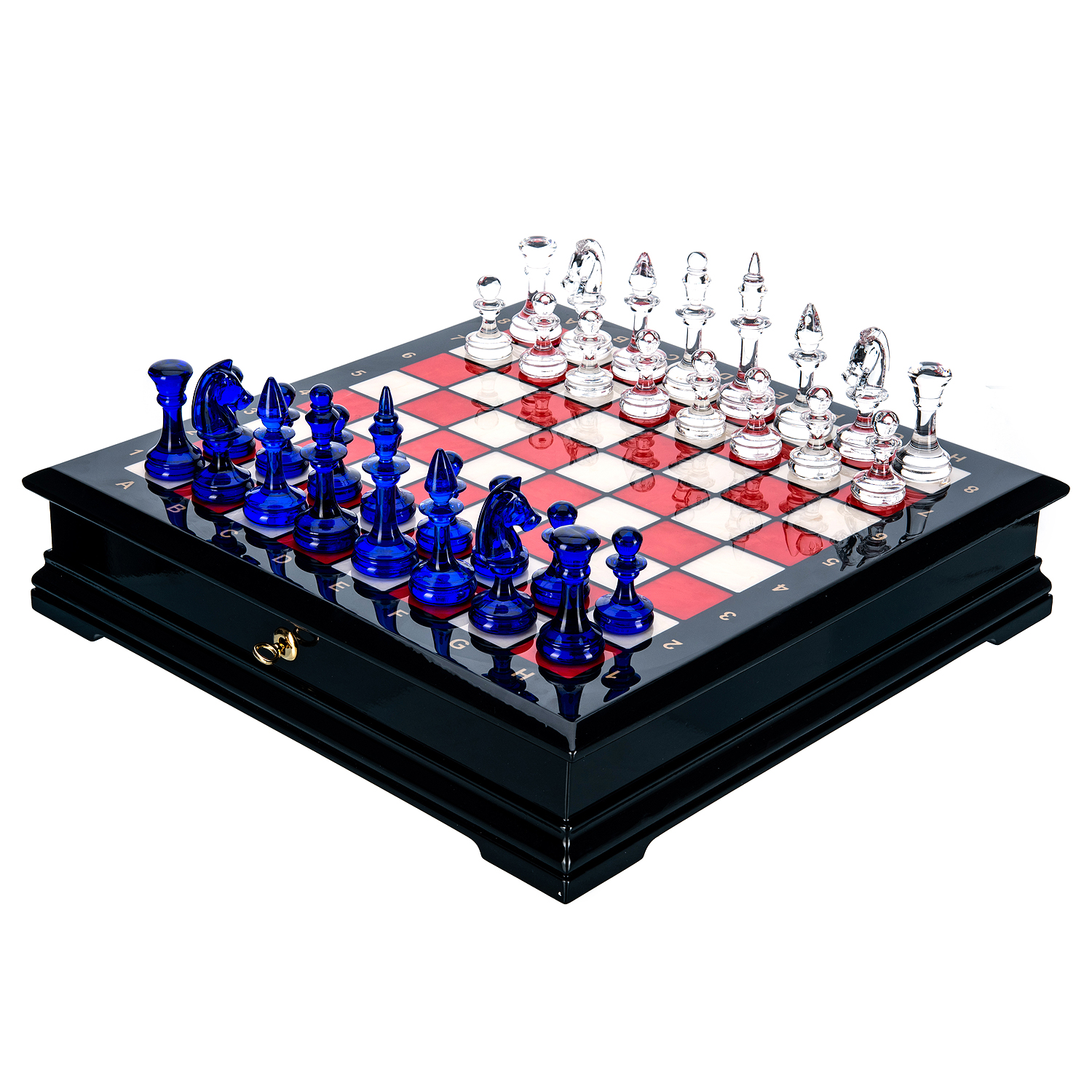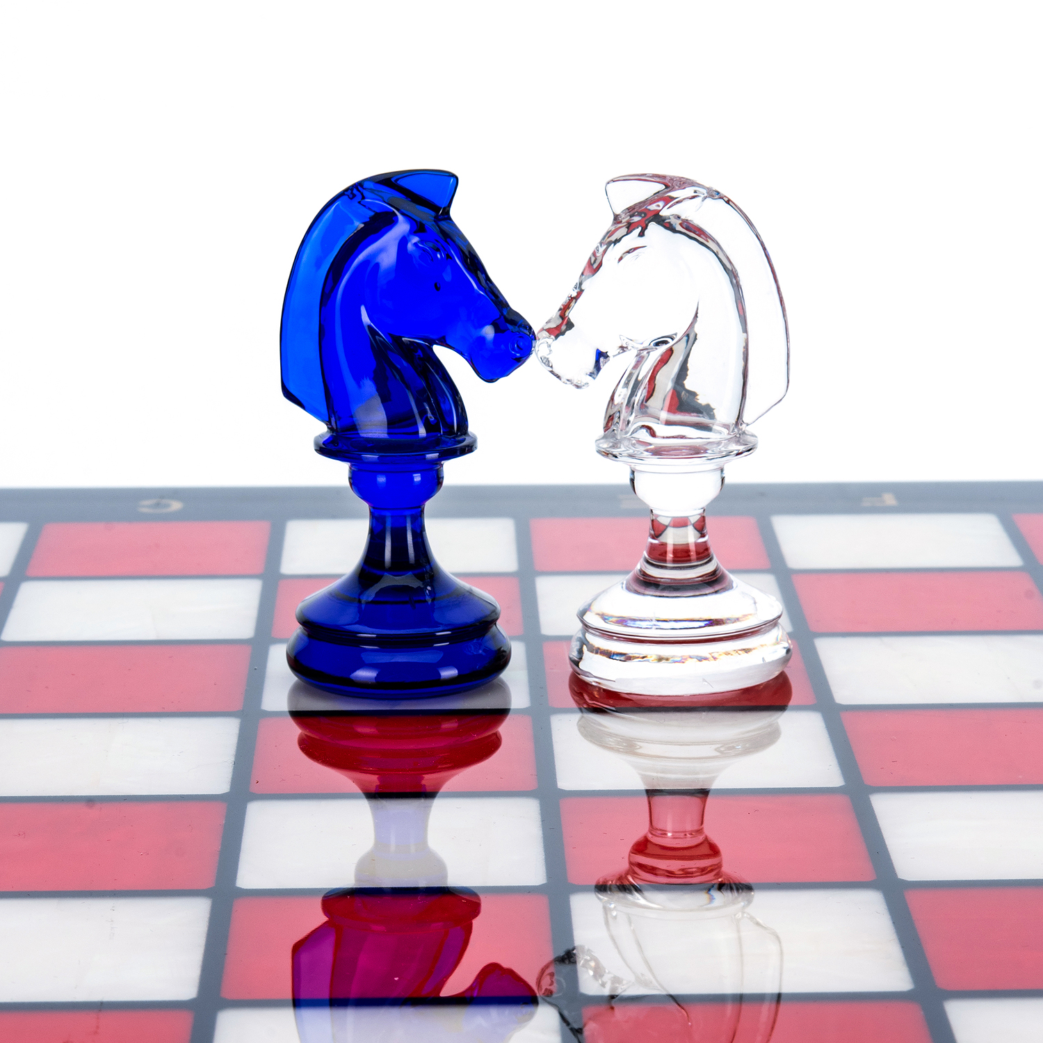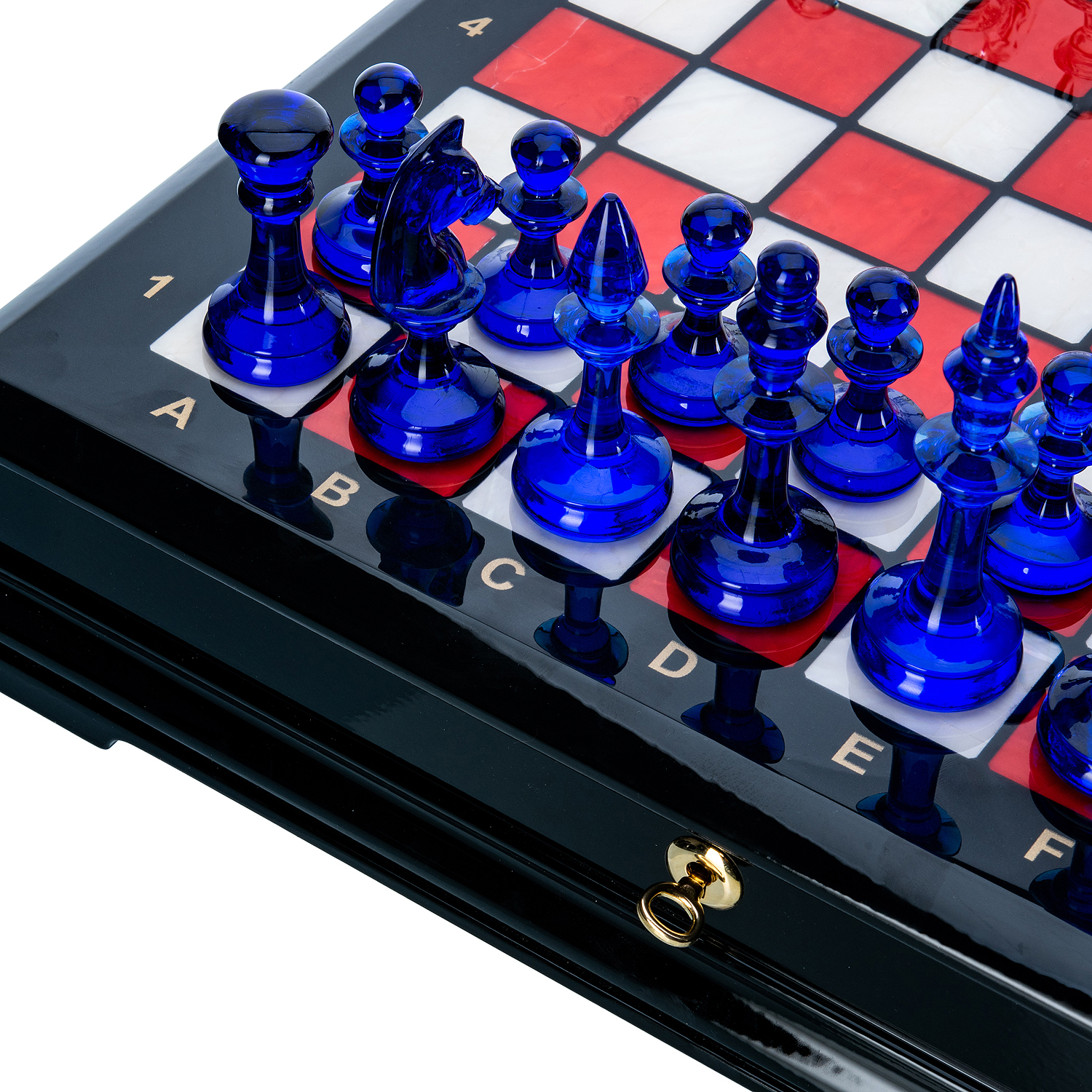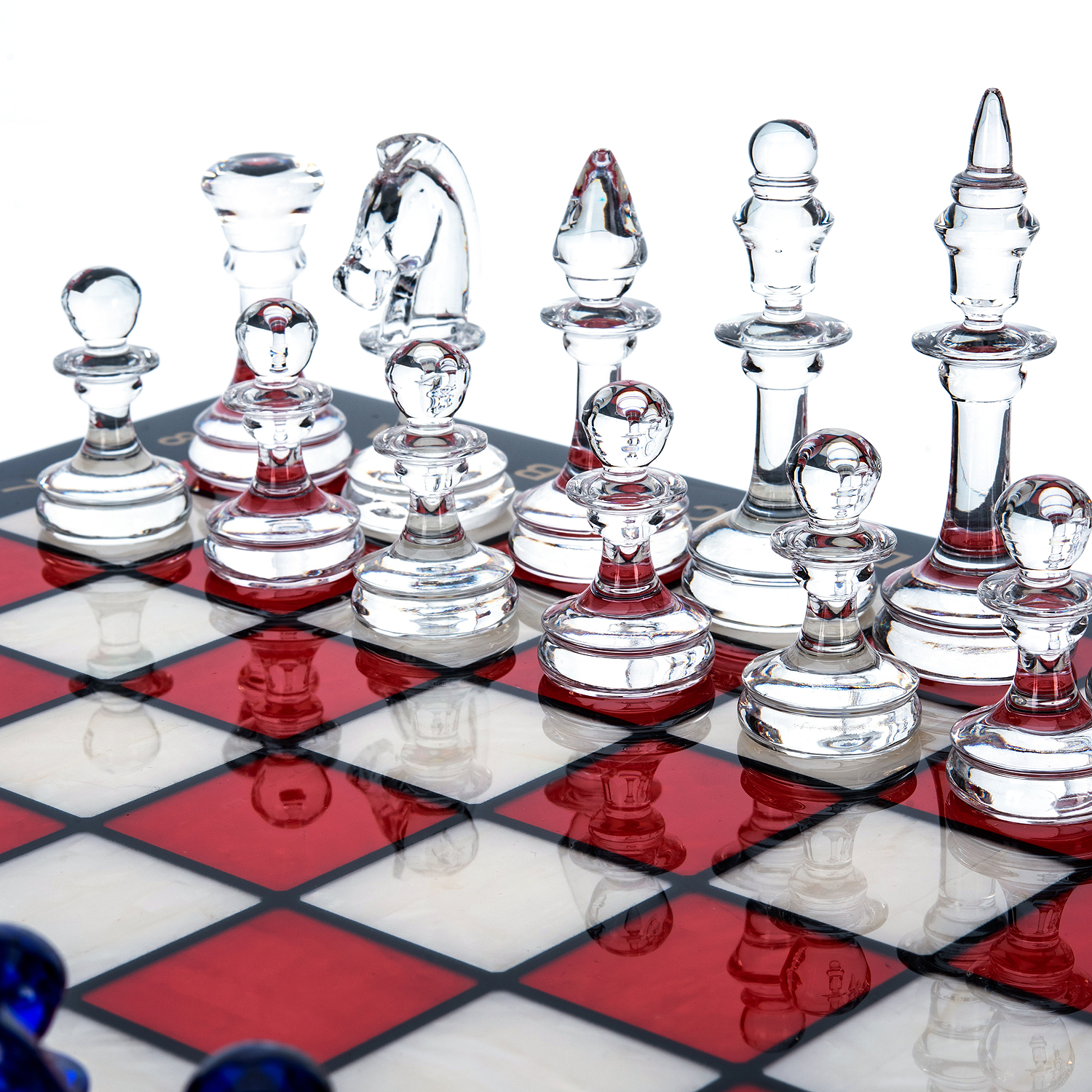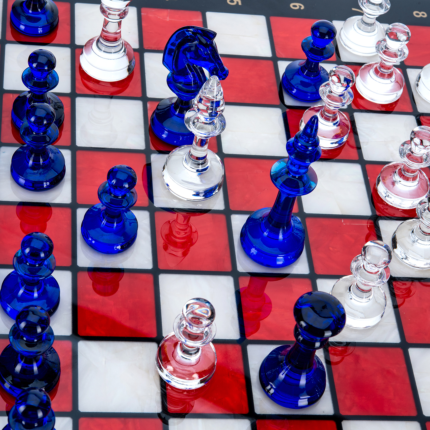 Шахматы с перламутром и стеклянными фигурами 45х45 см