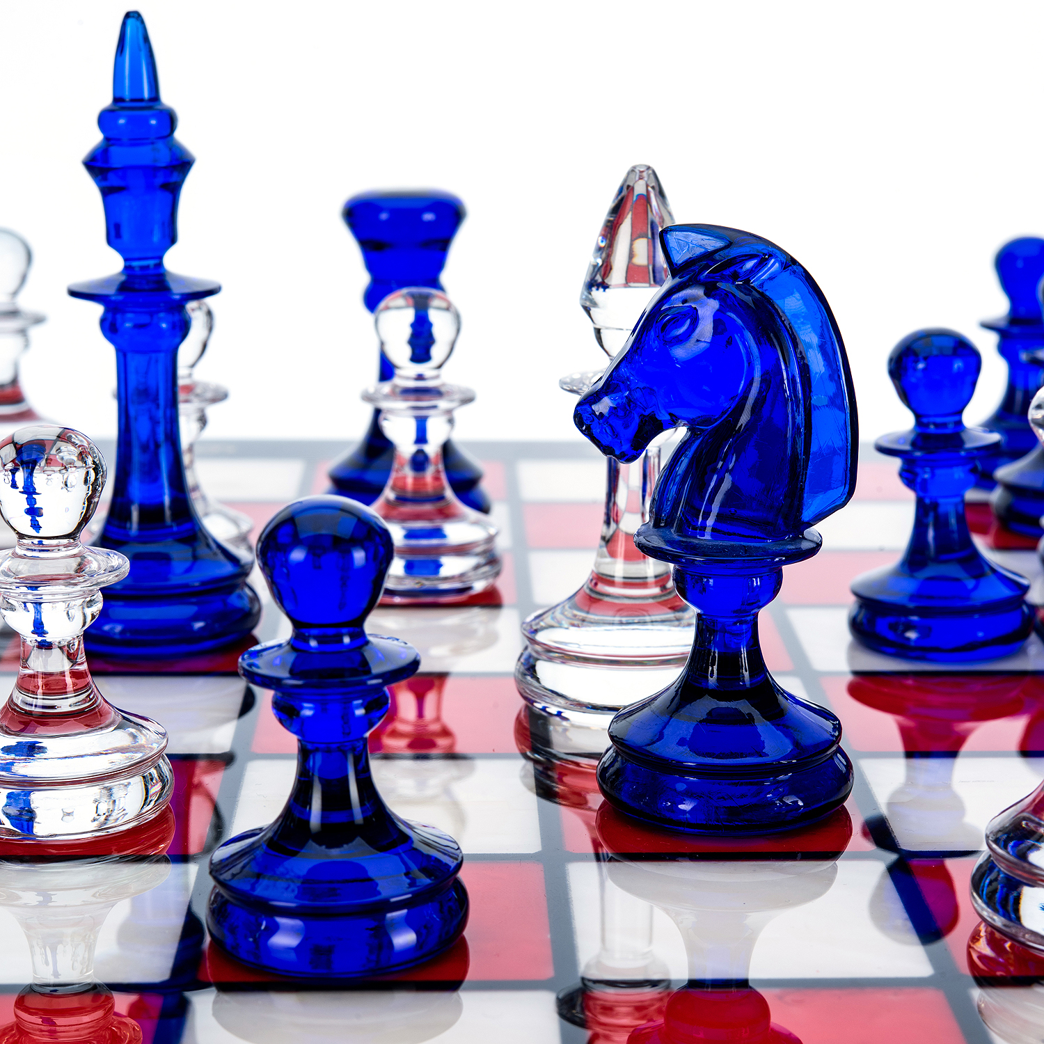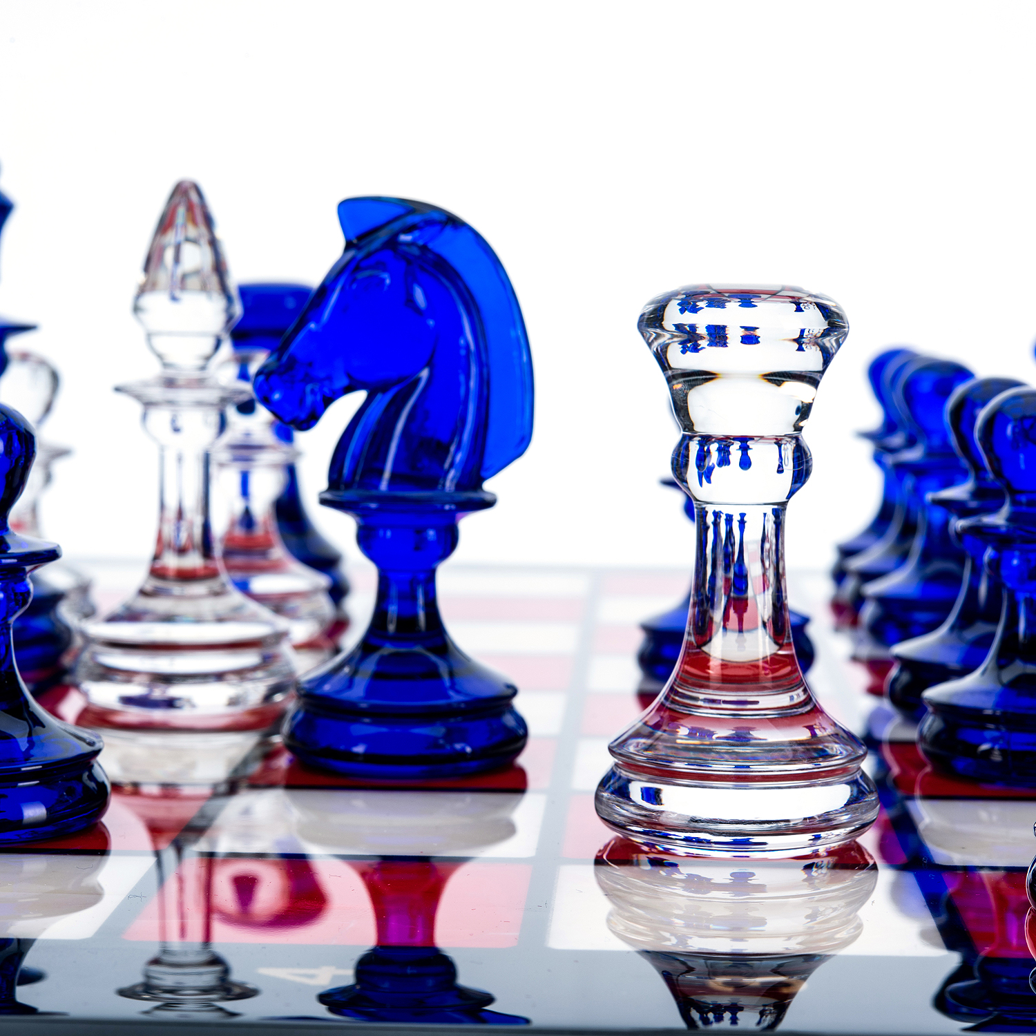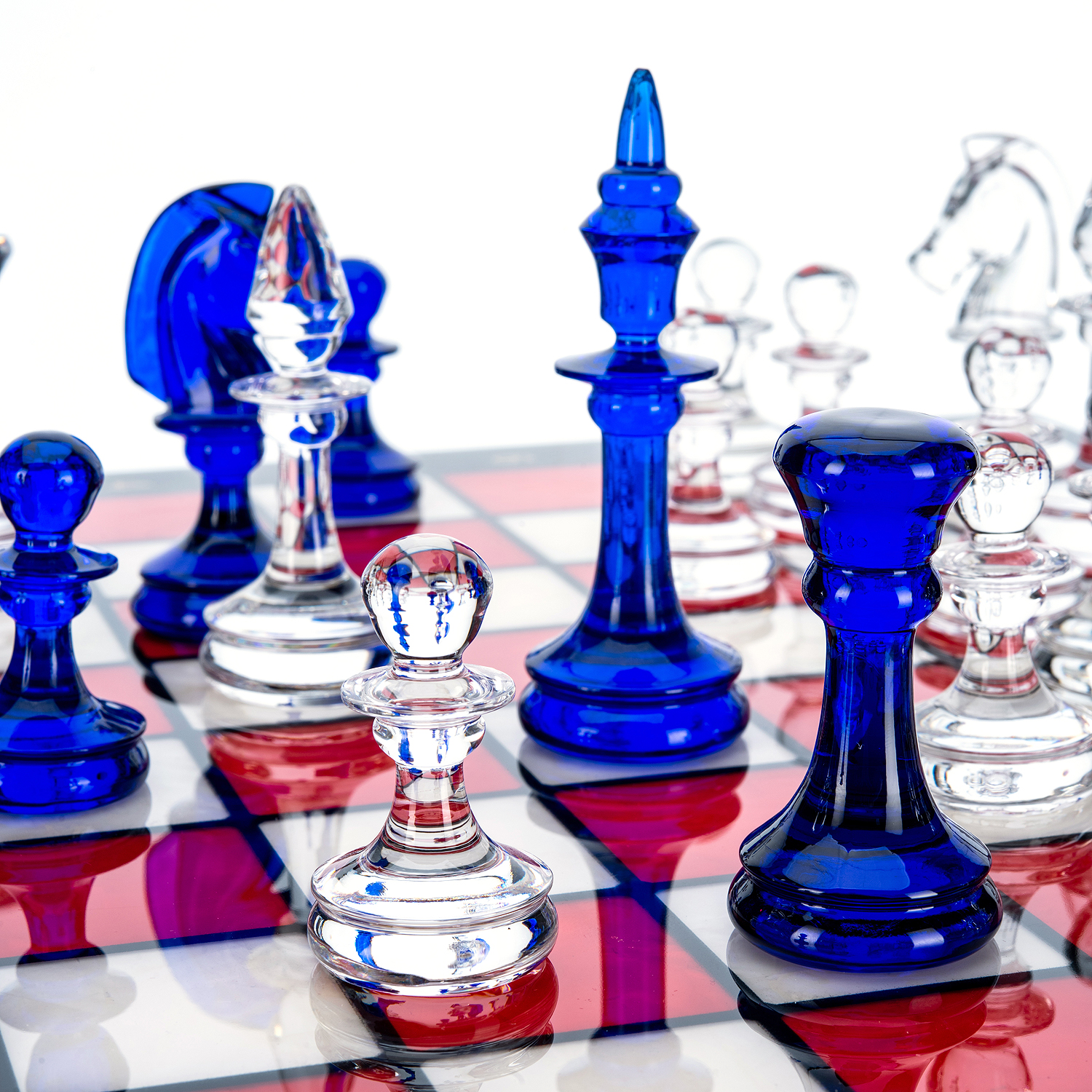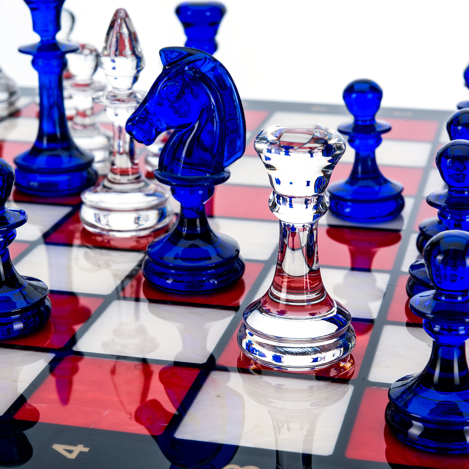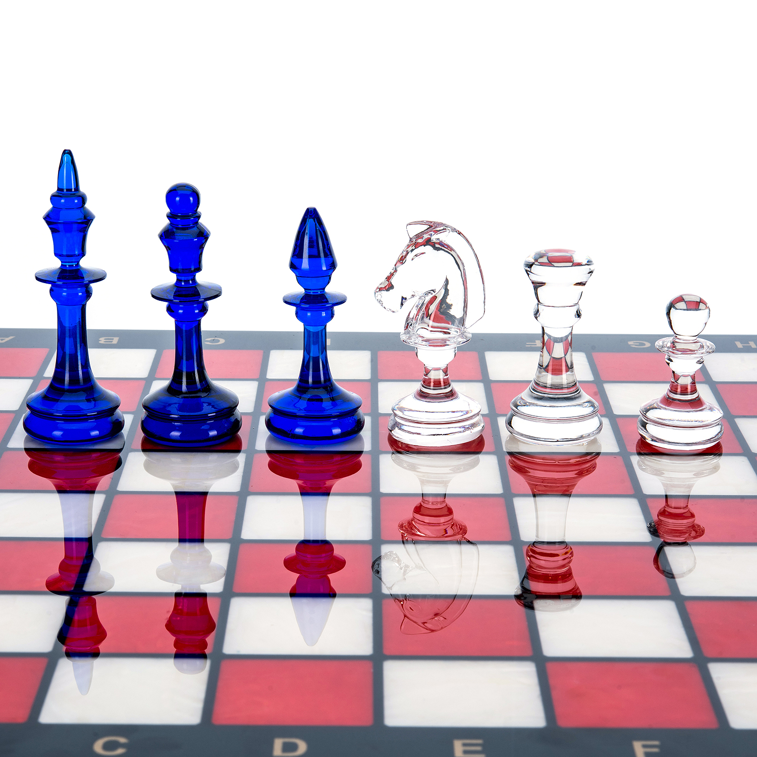 Шахматы с перламутром и стеклянными фигурами 45х45 см