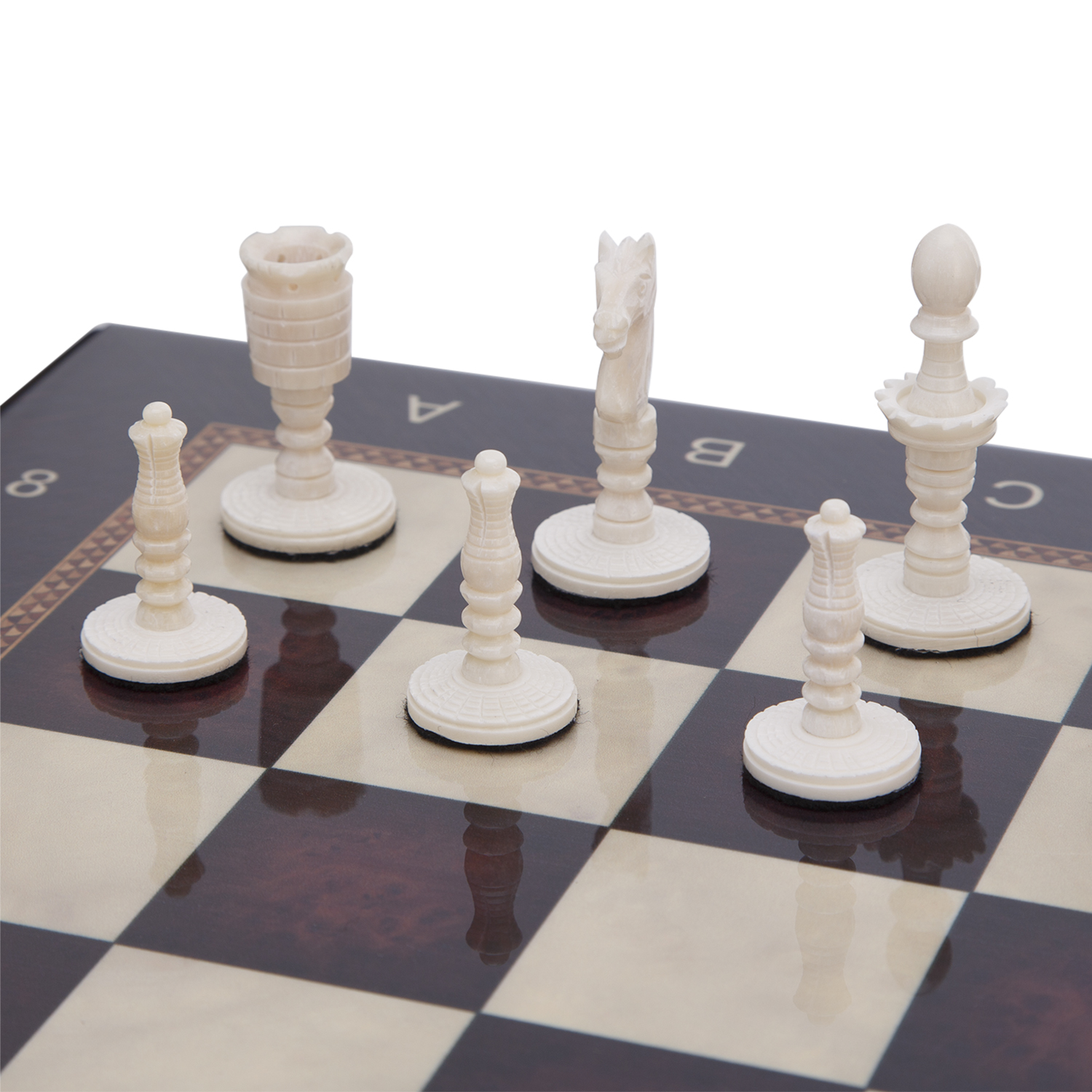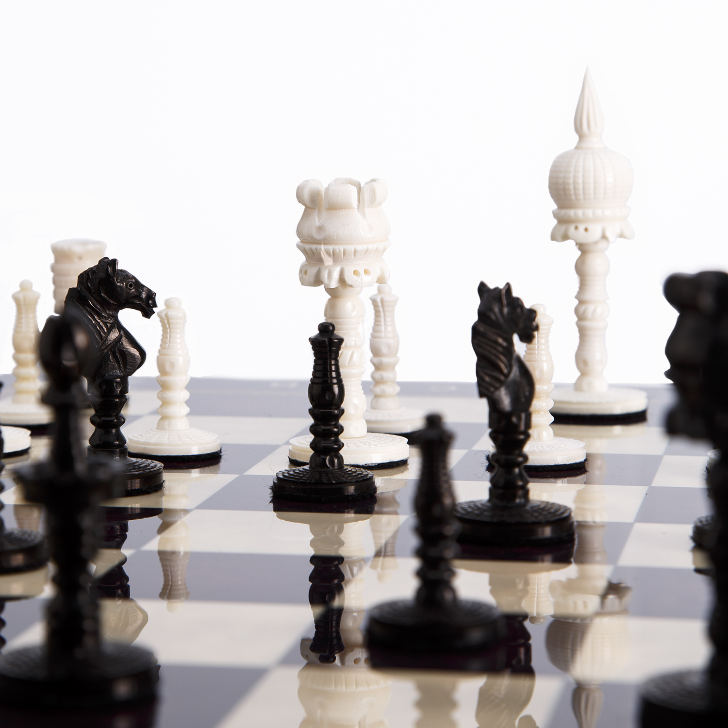 Шахматы с фигурами из кости.Материалы: дерево, кость.