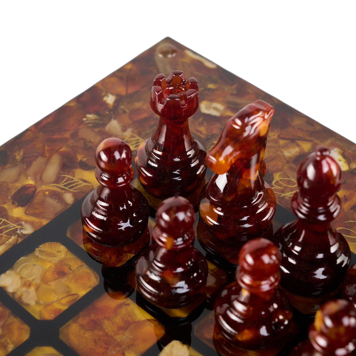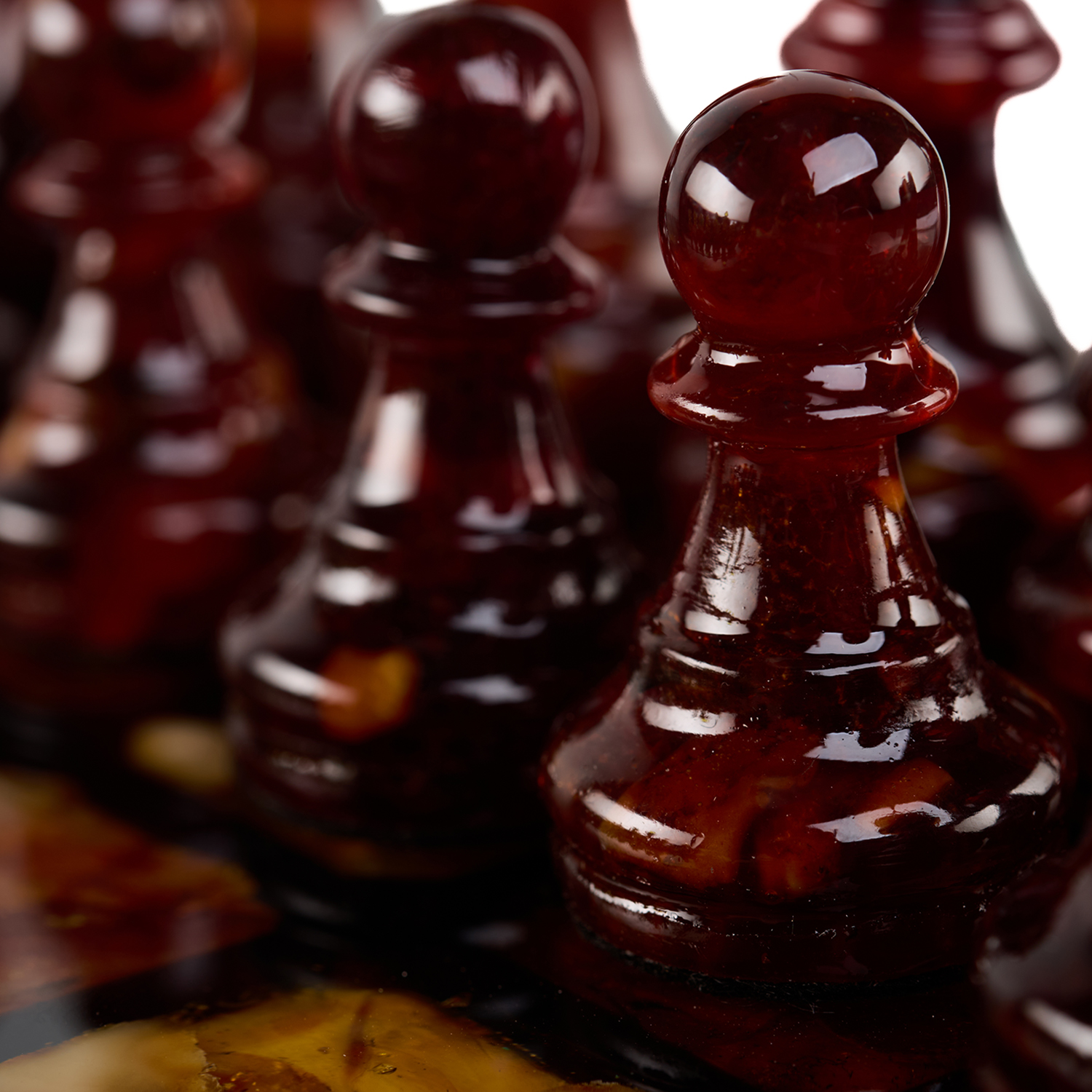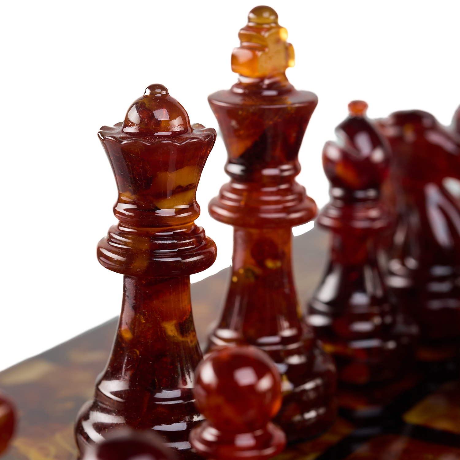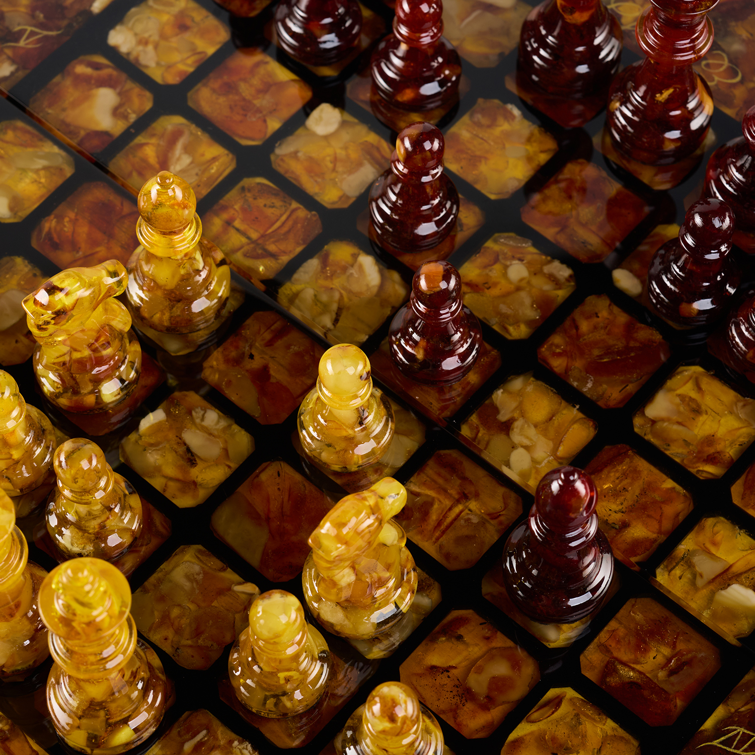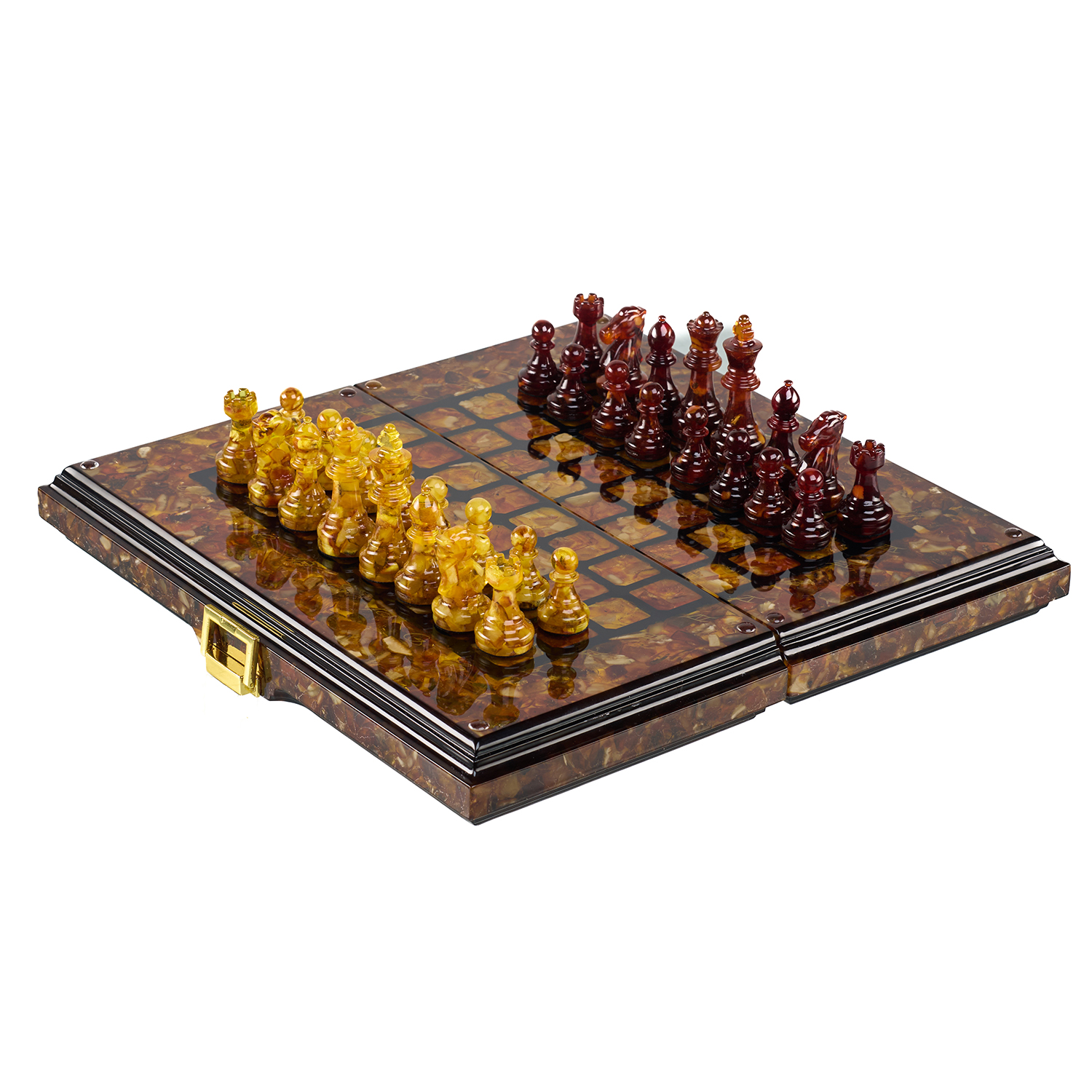 Шахматы складные с янтарными фигурами.Материалы: дерево, янтарь.