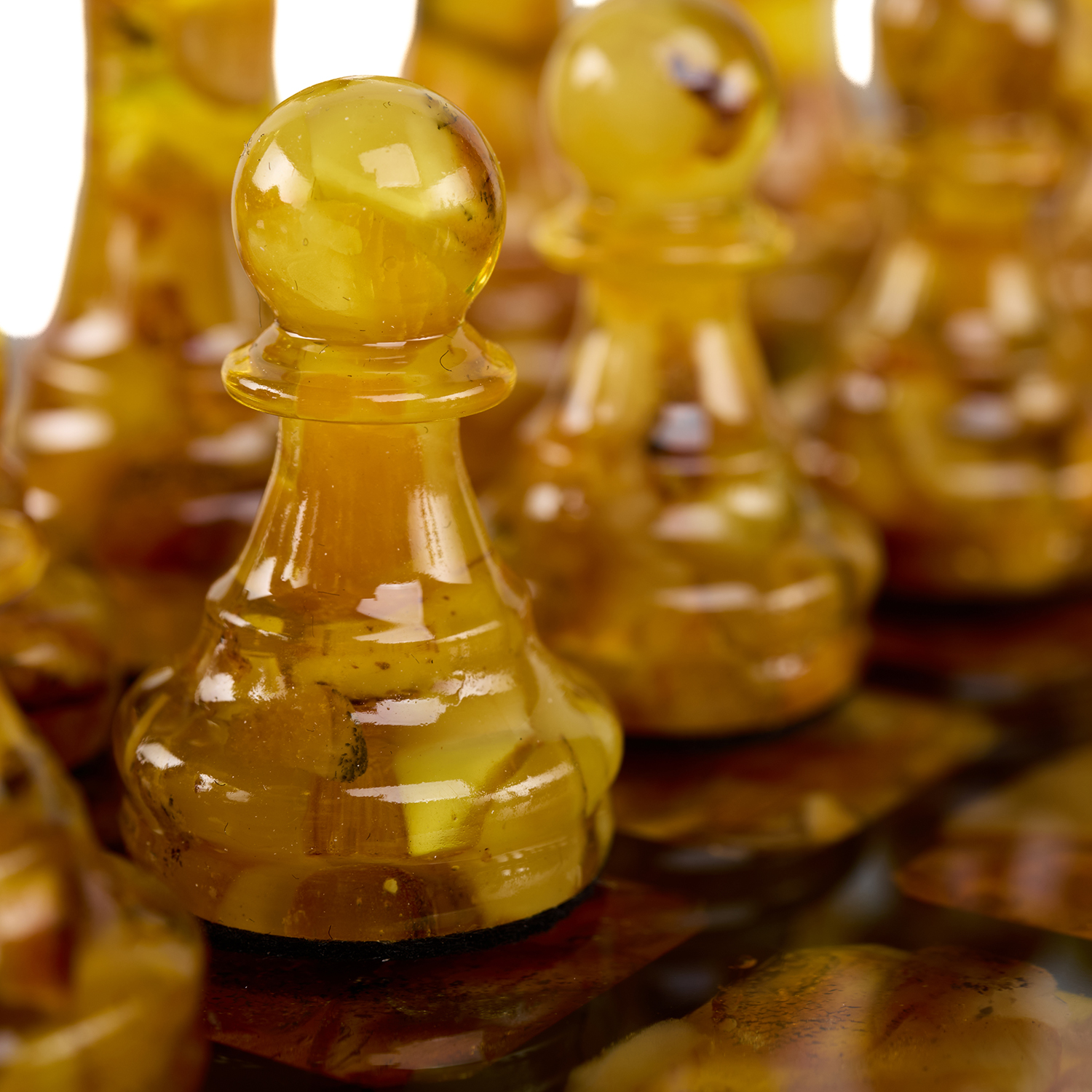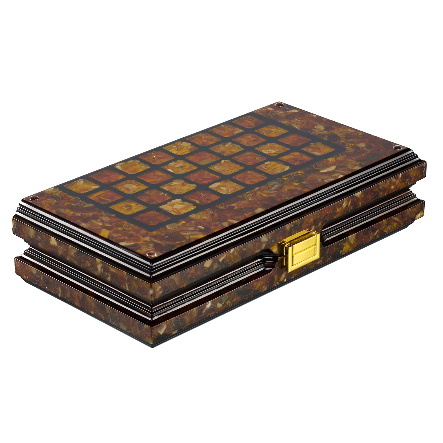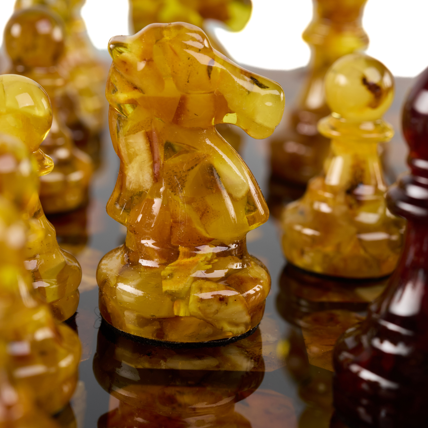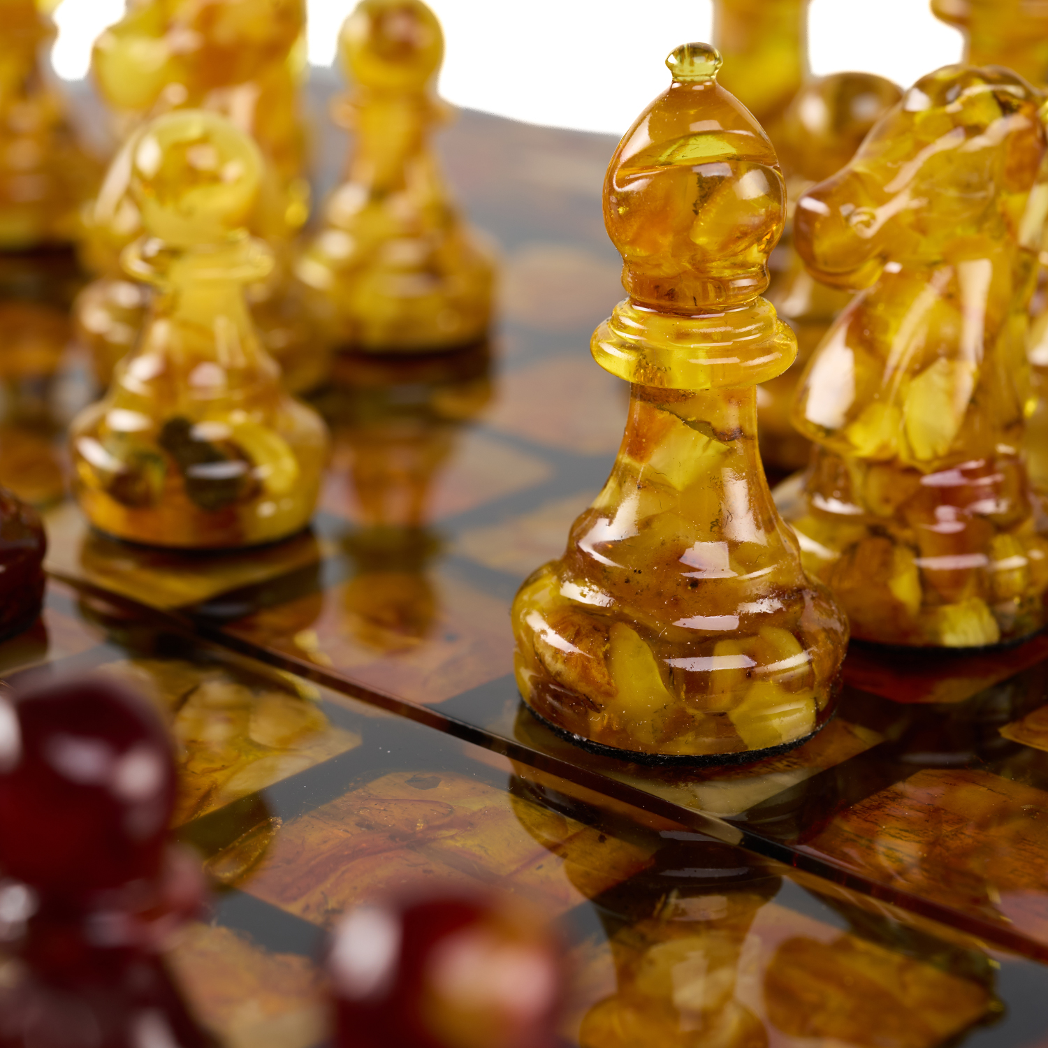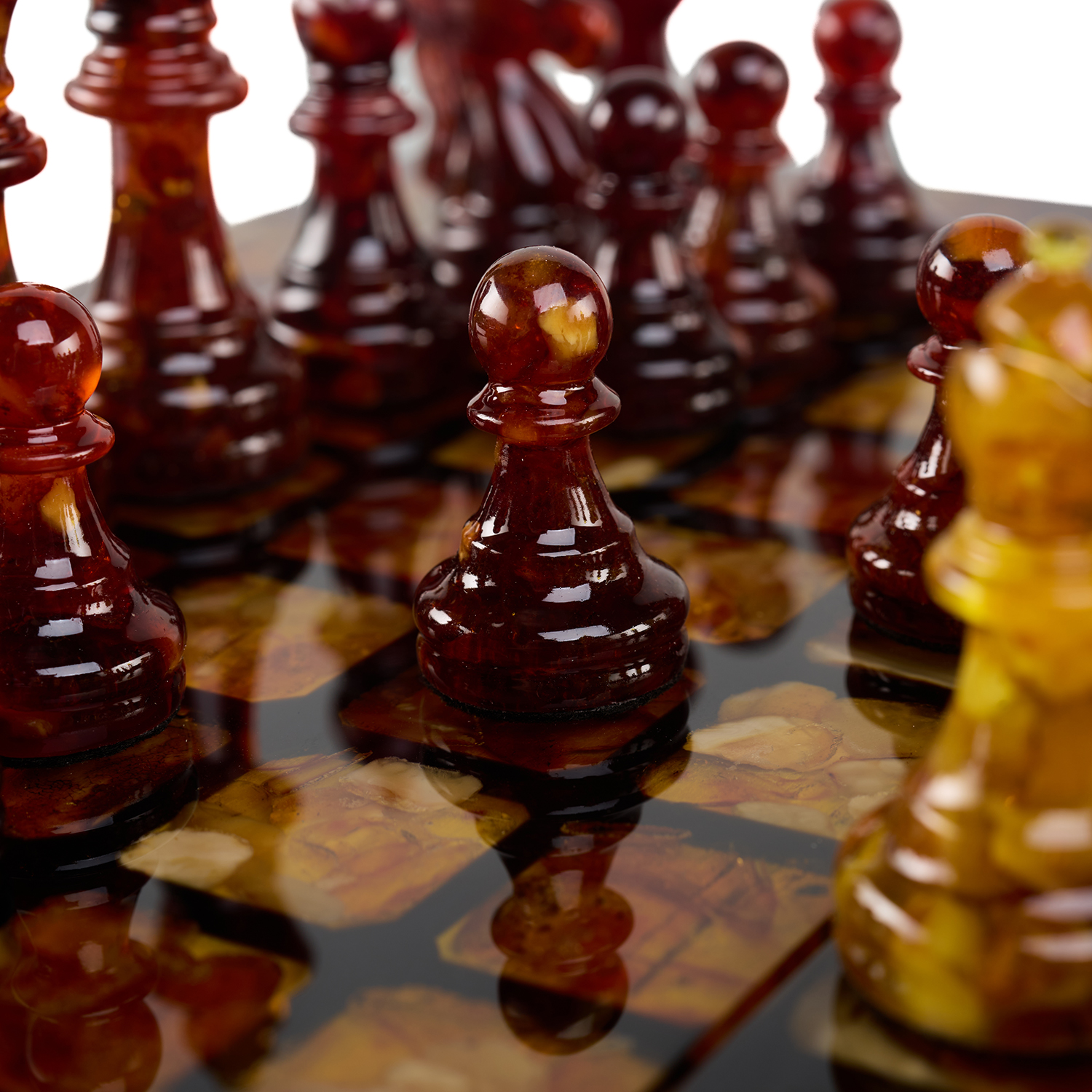 Шахматы складные с янтарными фигурами.Материалы: дерево, янтарь.