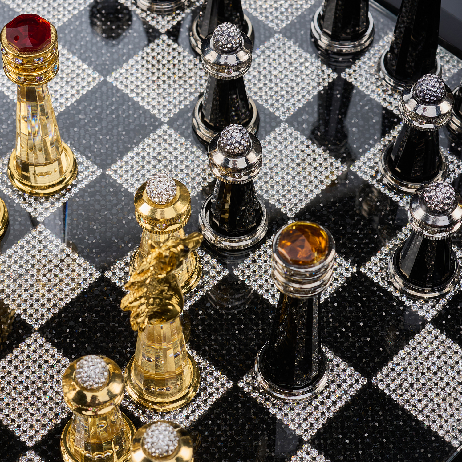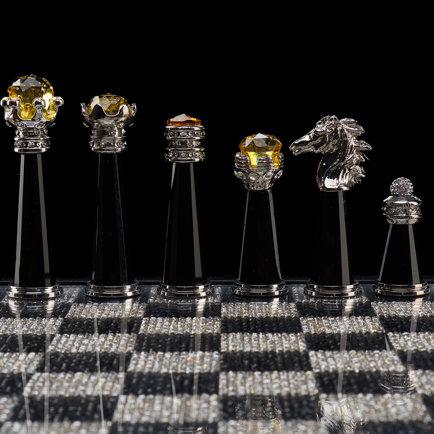 Шахматы со стразами и хрустальными фигурами 29х29 см