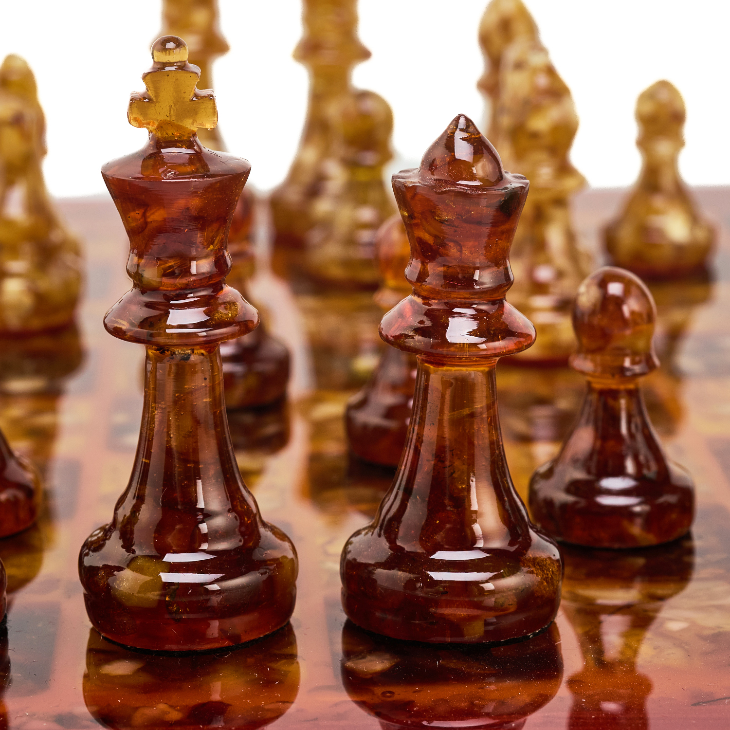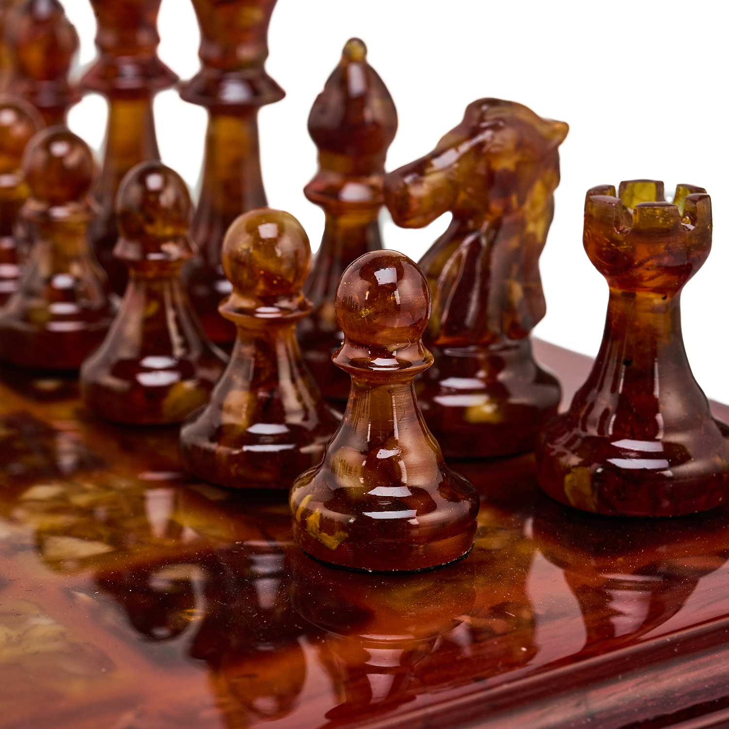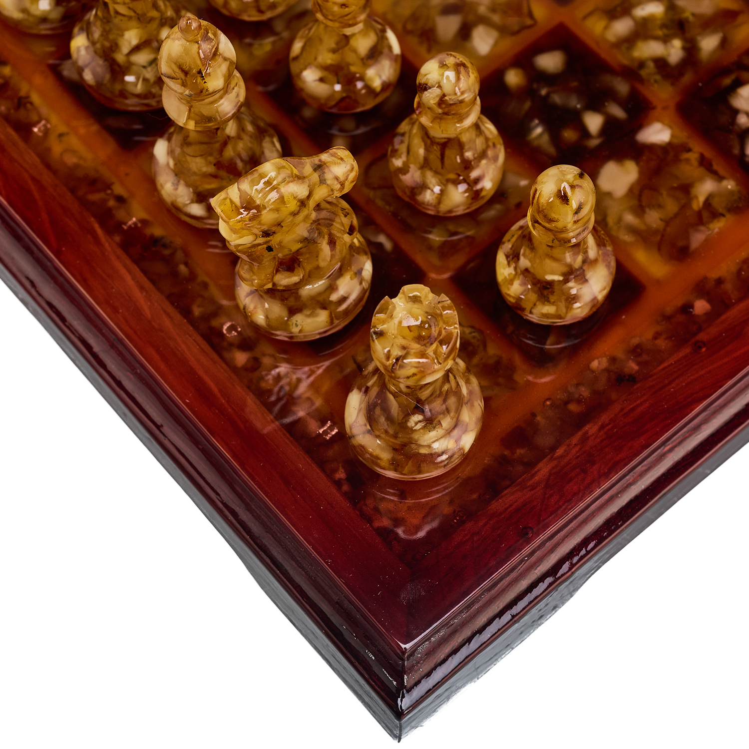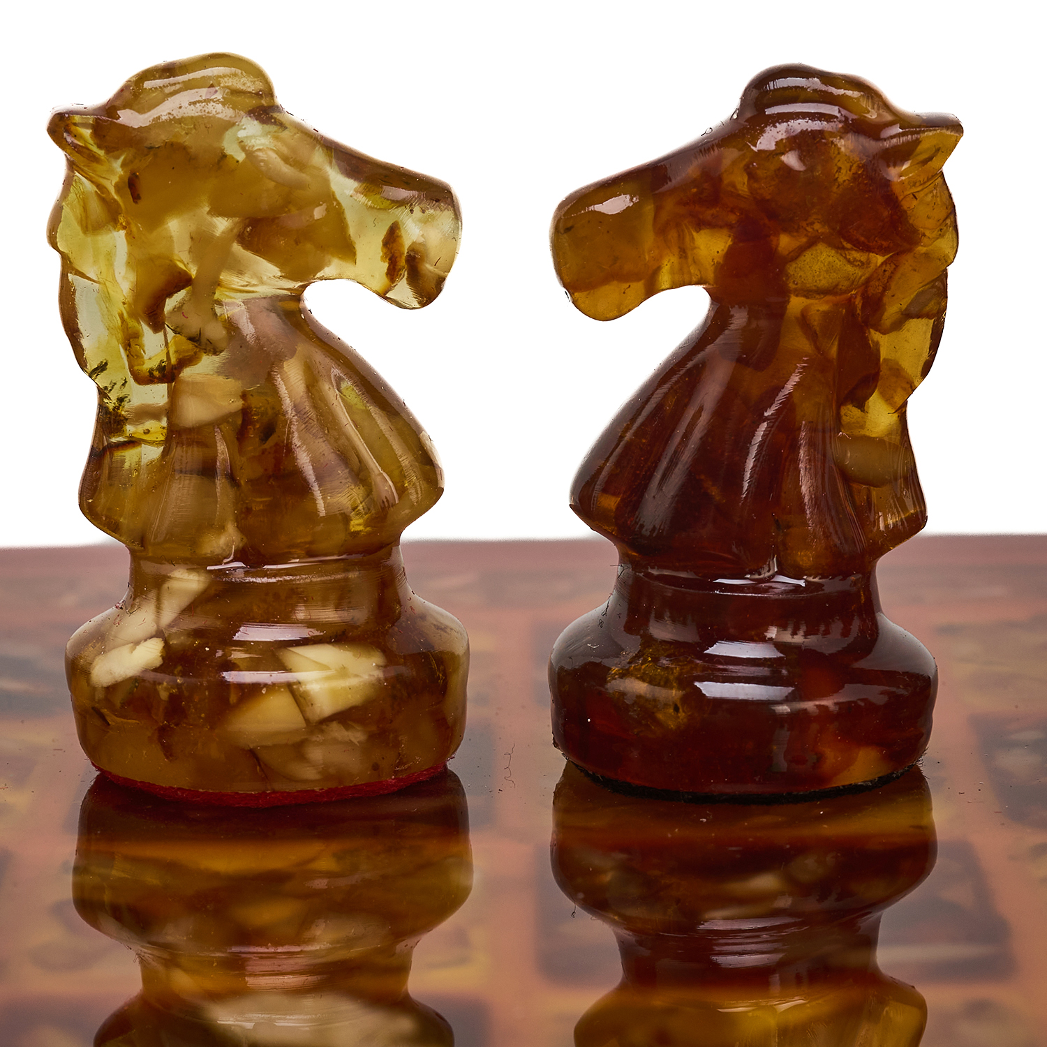 Шахматы с янтарными фигурами.Материалы: янтарь, полиэфирная смола.
