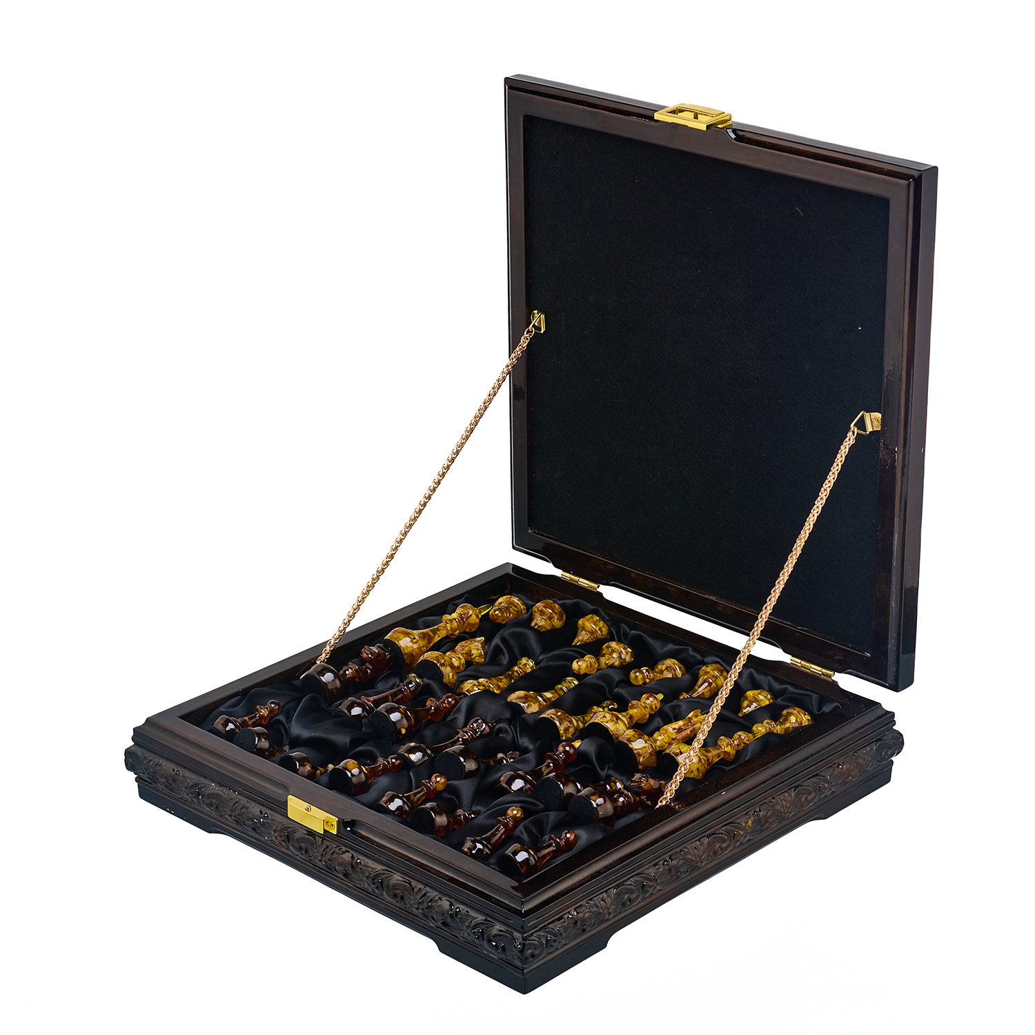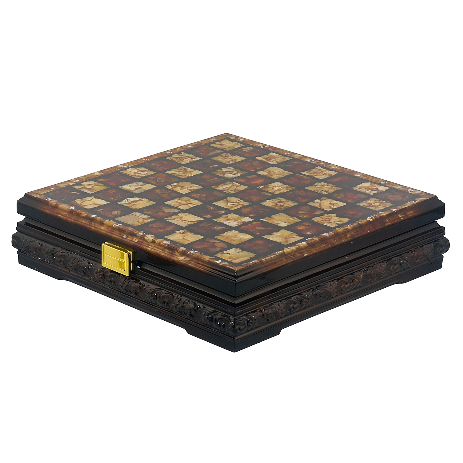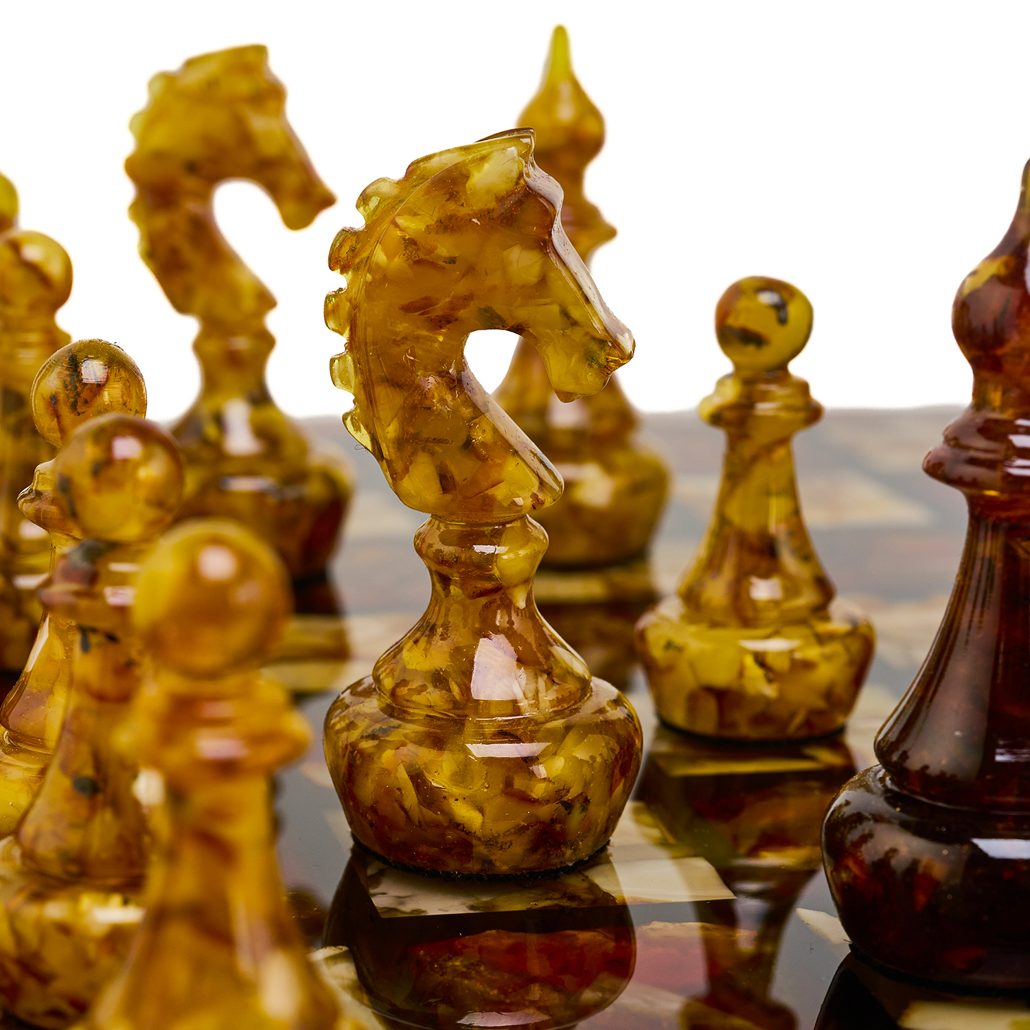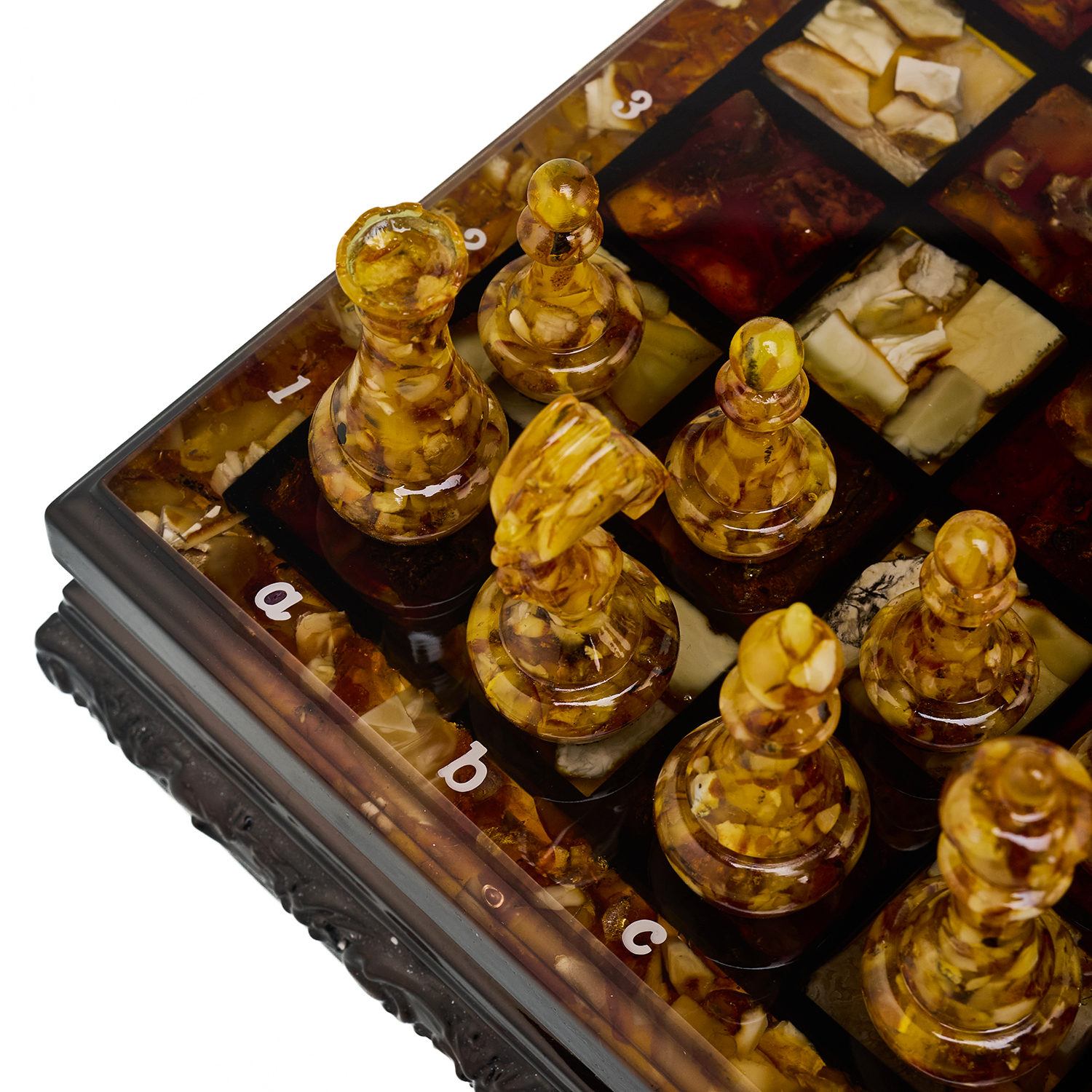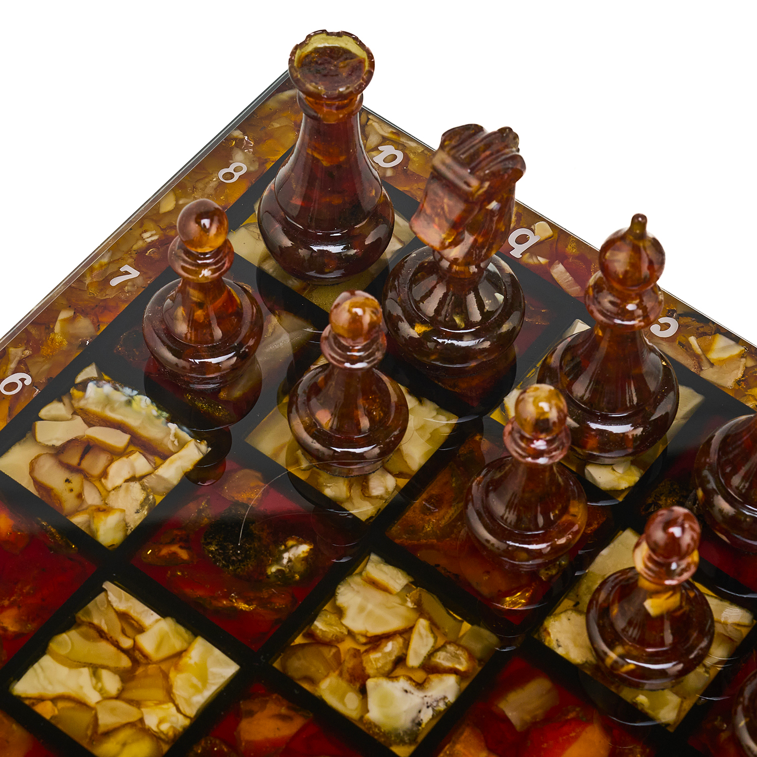 Шахматы с инкрустацией и фигурами из янтаря 30х30 см