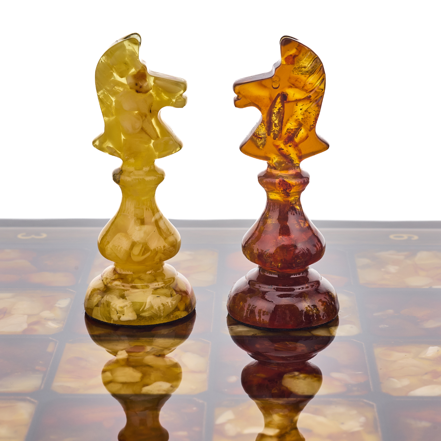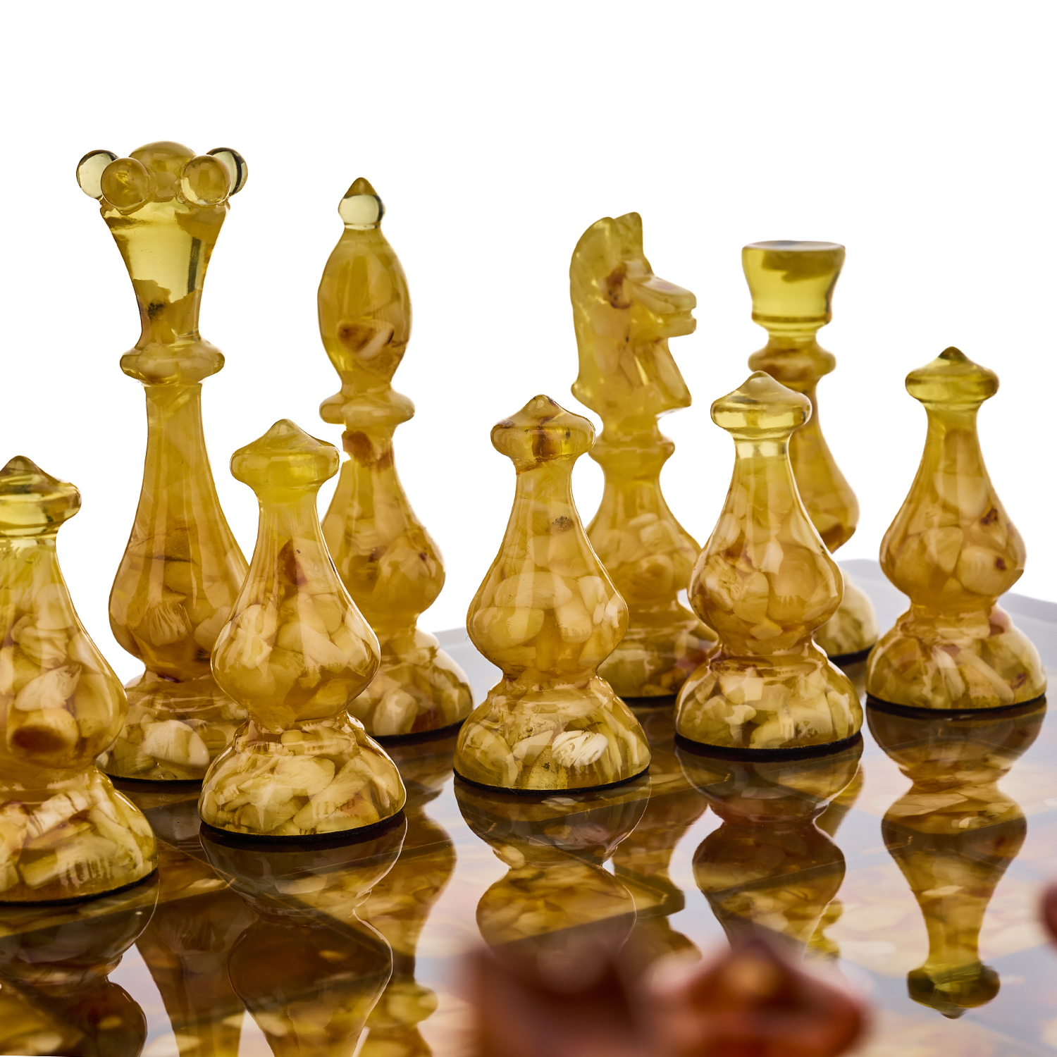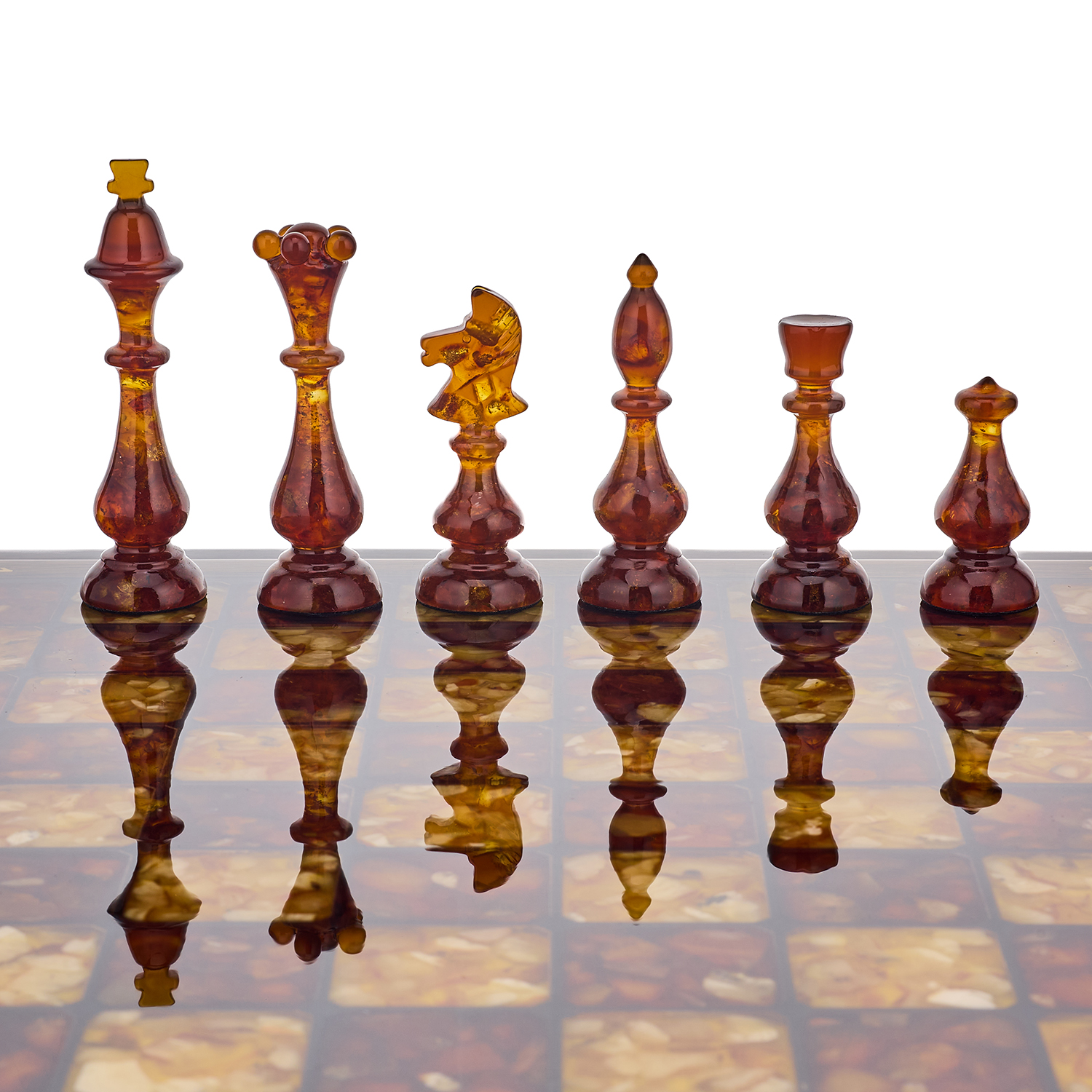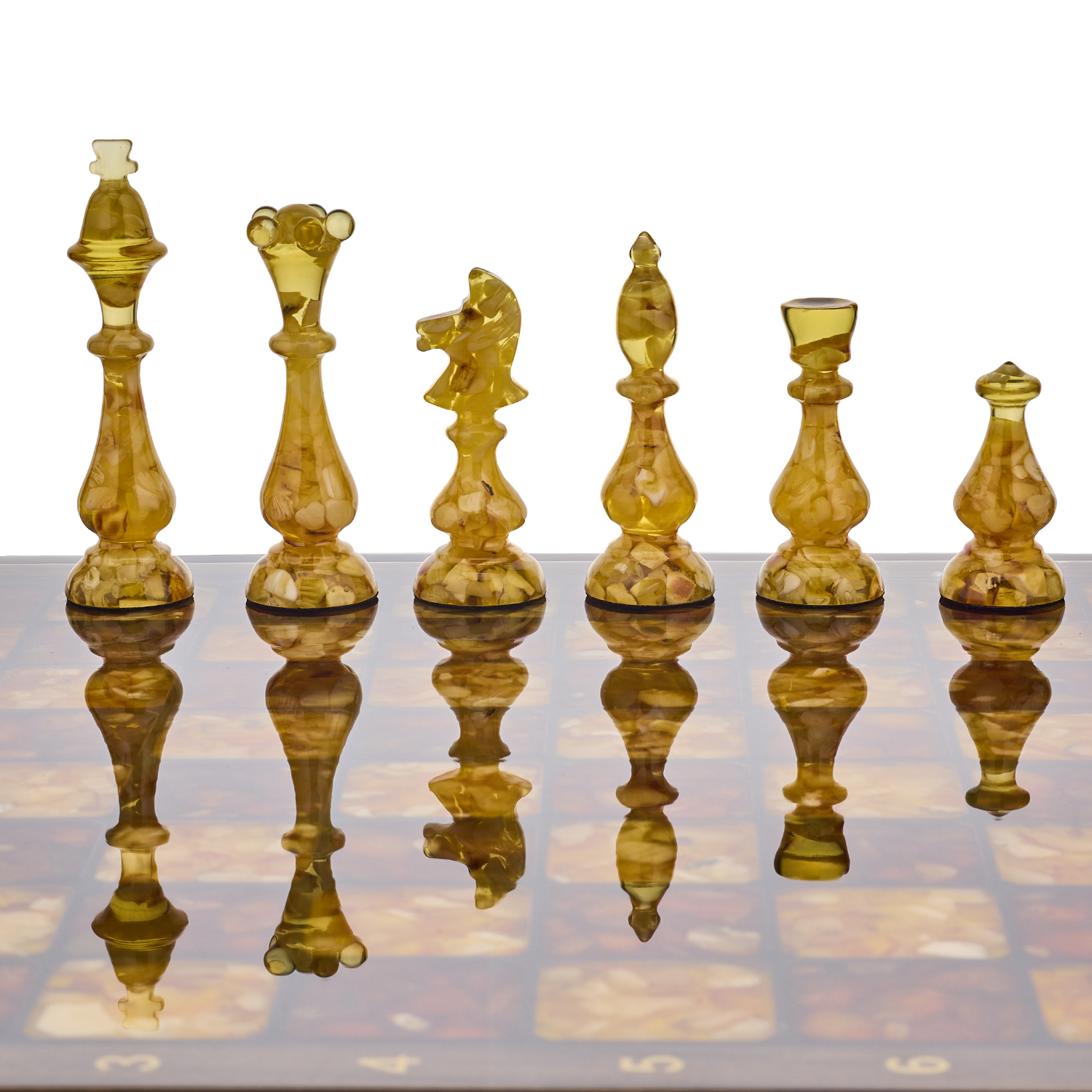 Шахматы из мореного дуба с янтарными фигурами 45х45 см